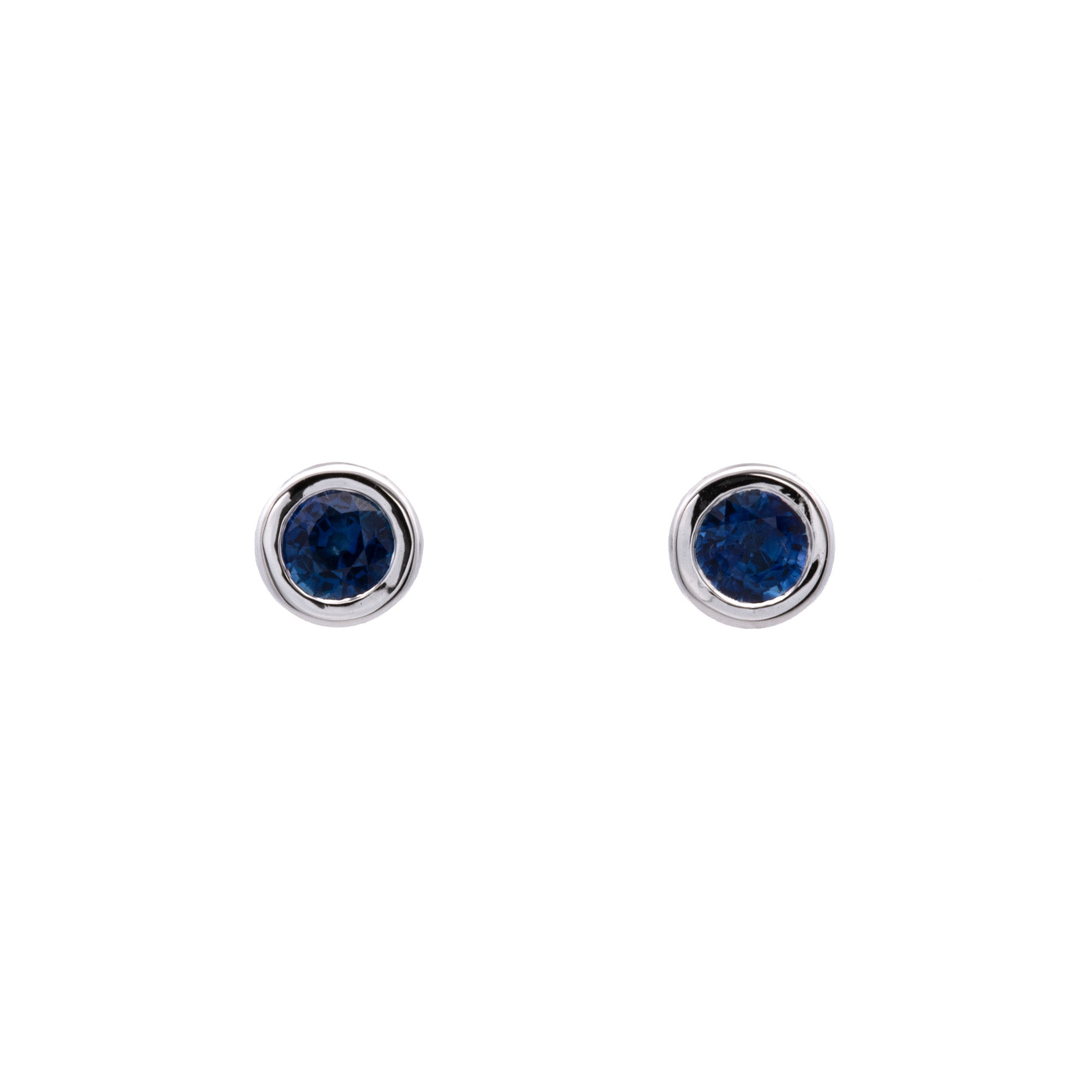 14K White Gold Bezel Set Ceylon Sapphire Stud Earrings