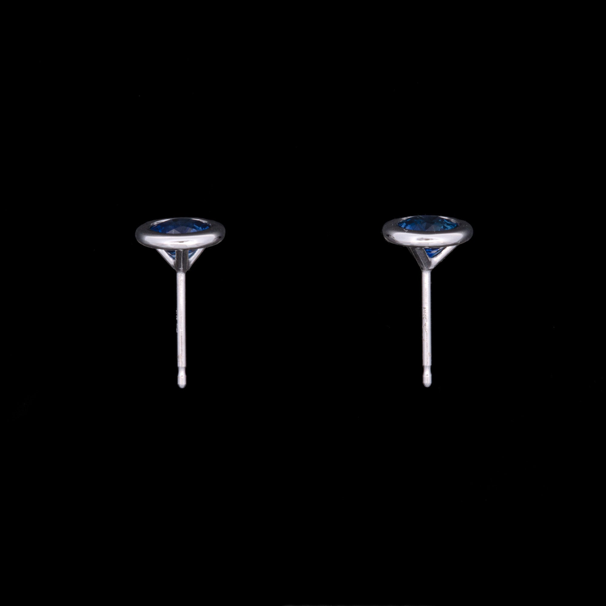 14K White Gold Bezel Set Ceylon Sapphire Stud Earrings. Sapphires Weigh a Total Of 1.09 Carats.