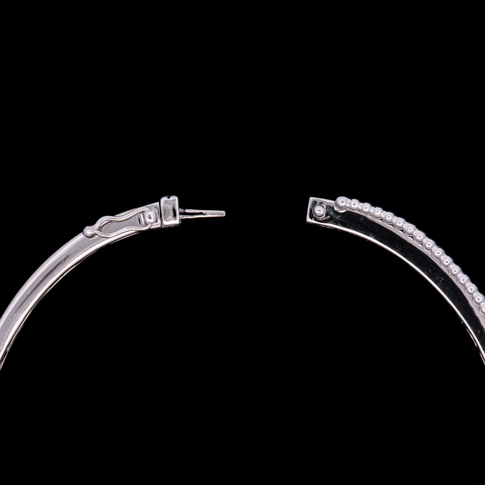 14K White Gold Diamond Bangle Bracelet With Beaded Edge