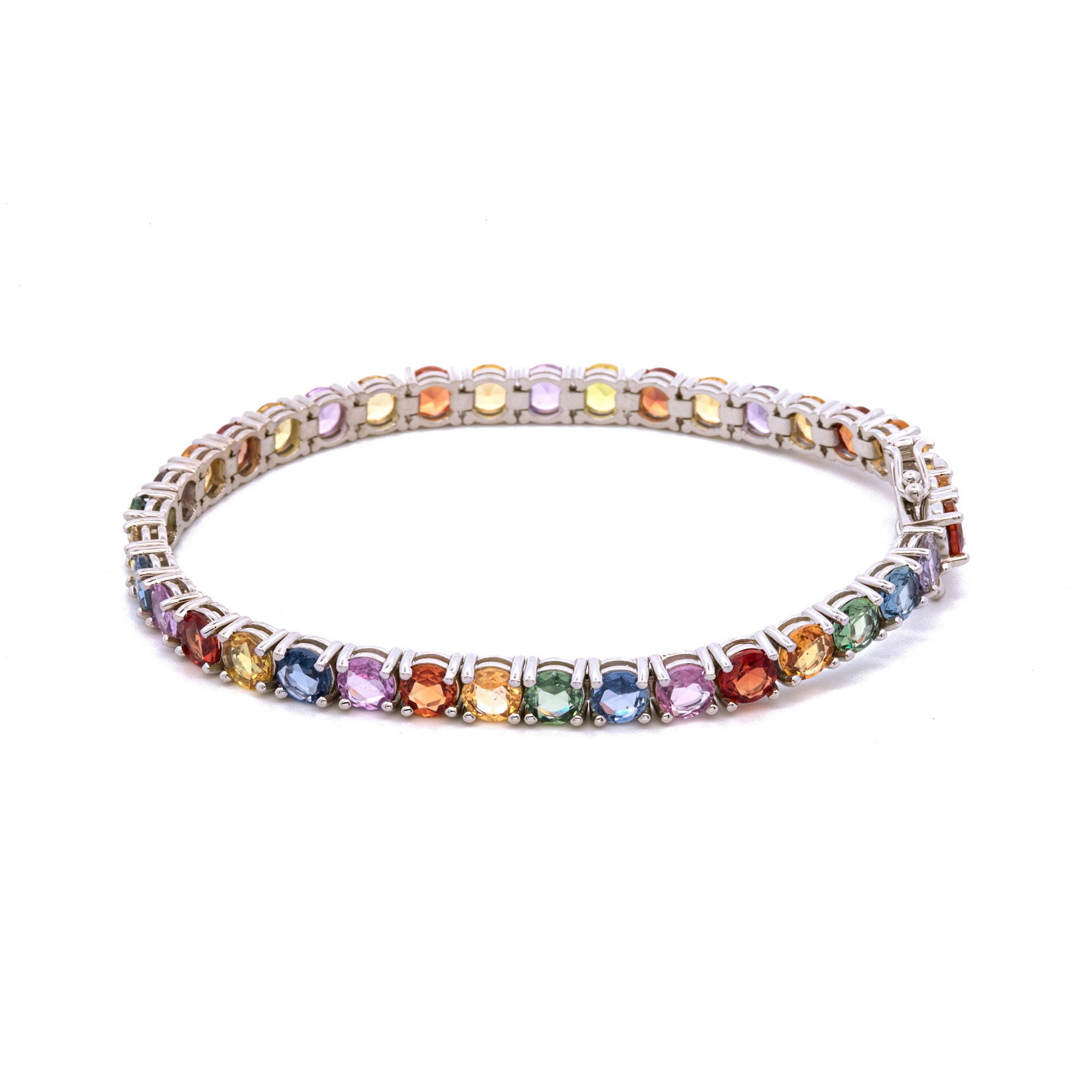 14K White Gold Multi Colored Sapphire Bracelet, 7 Inches