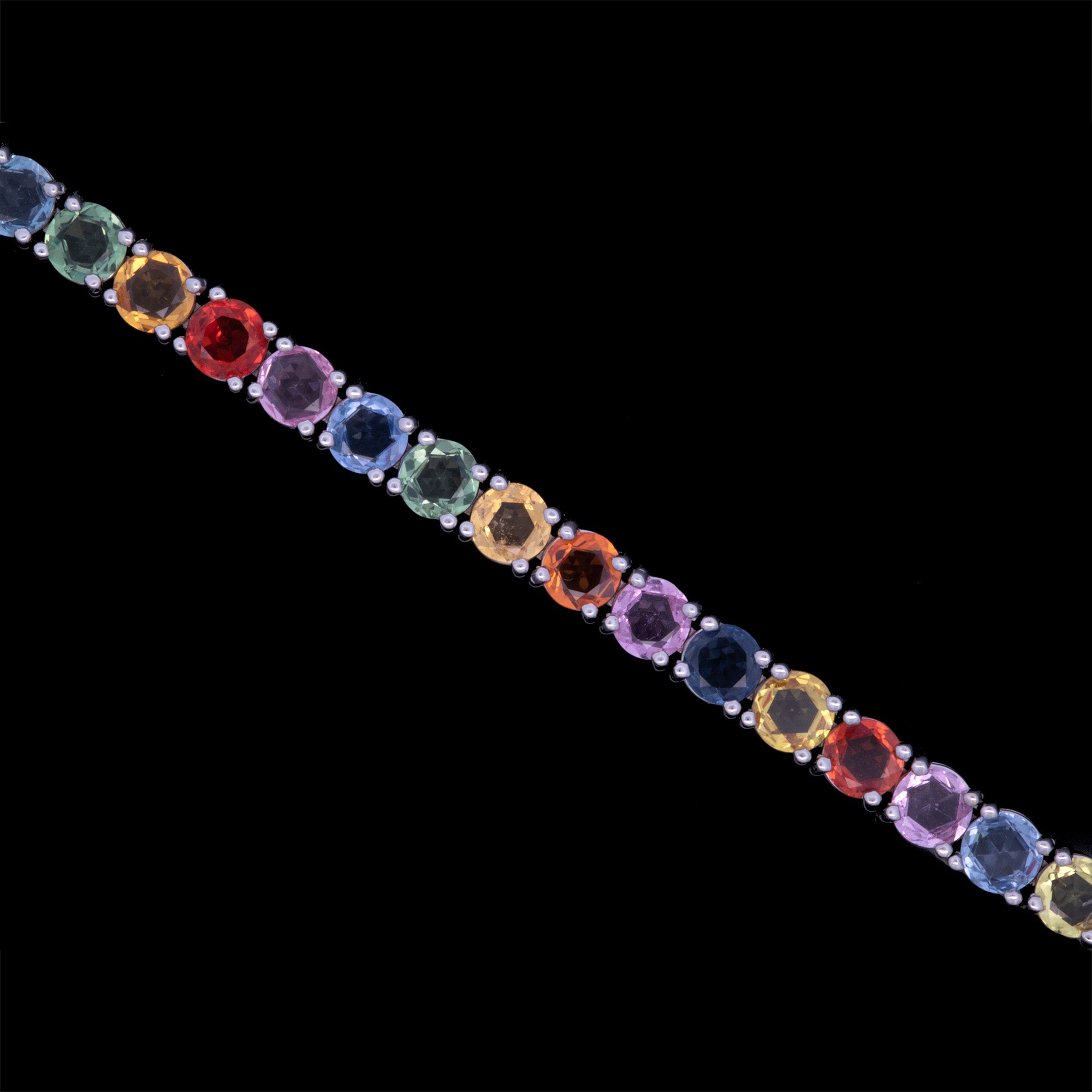 14K White Gold Multi Colored Sapphire Bracelet, 7 Inches. Thirty-Seven Sapphires Weigh A Total Of 14.38 Carats.