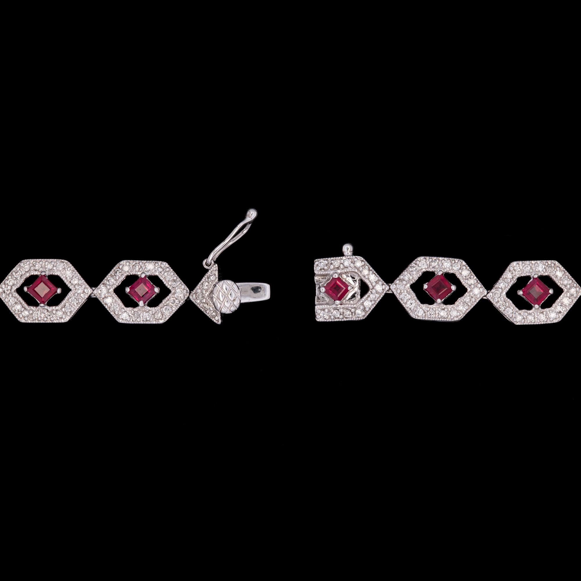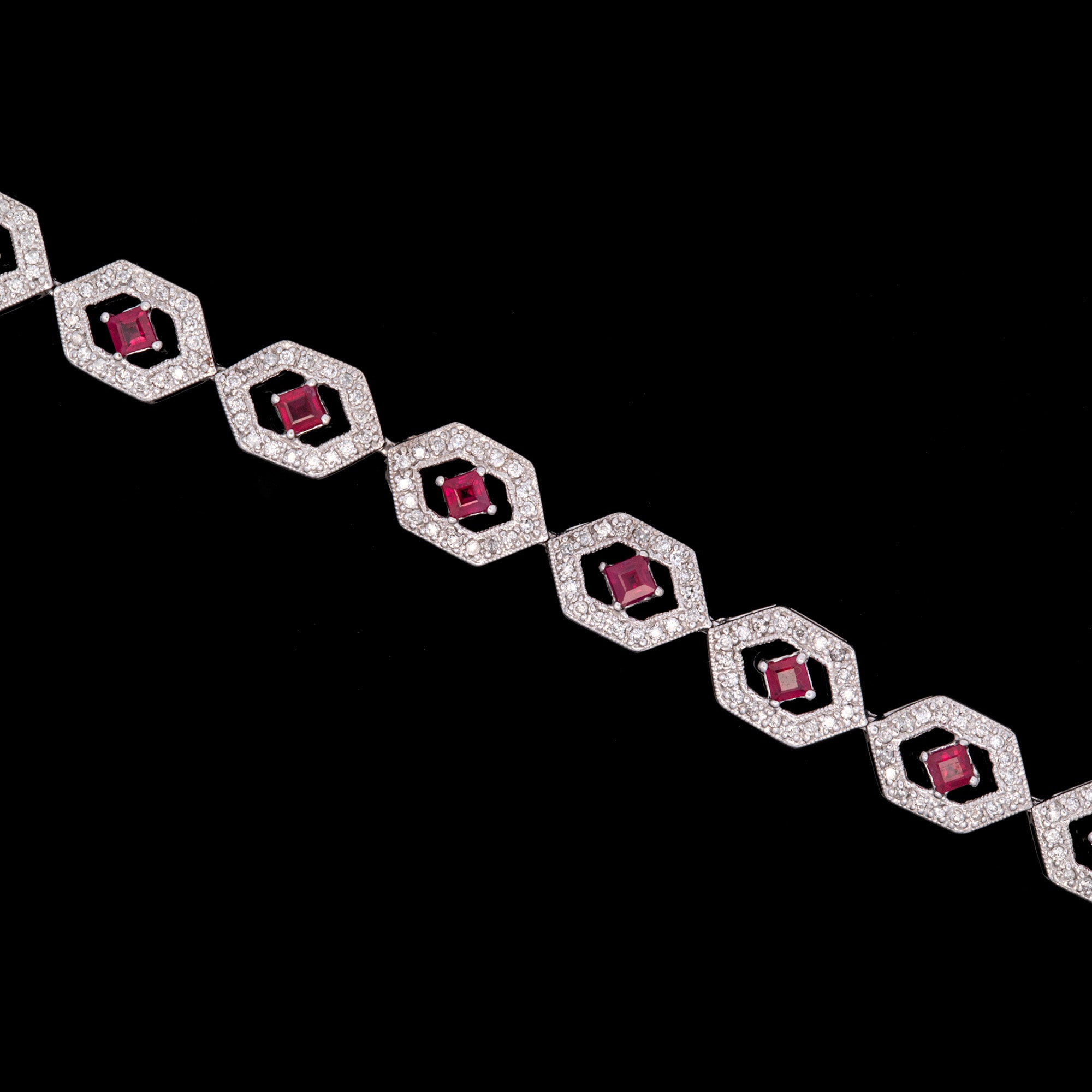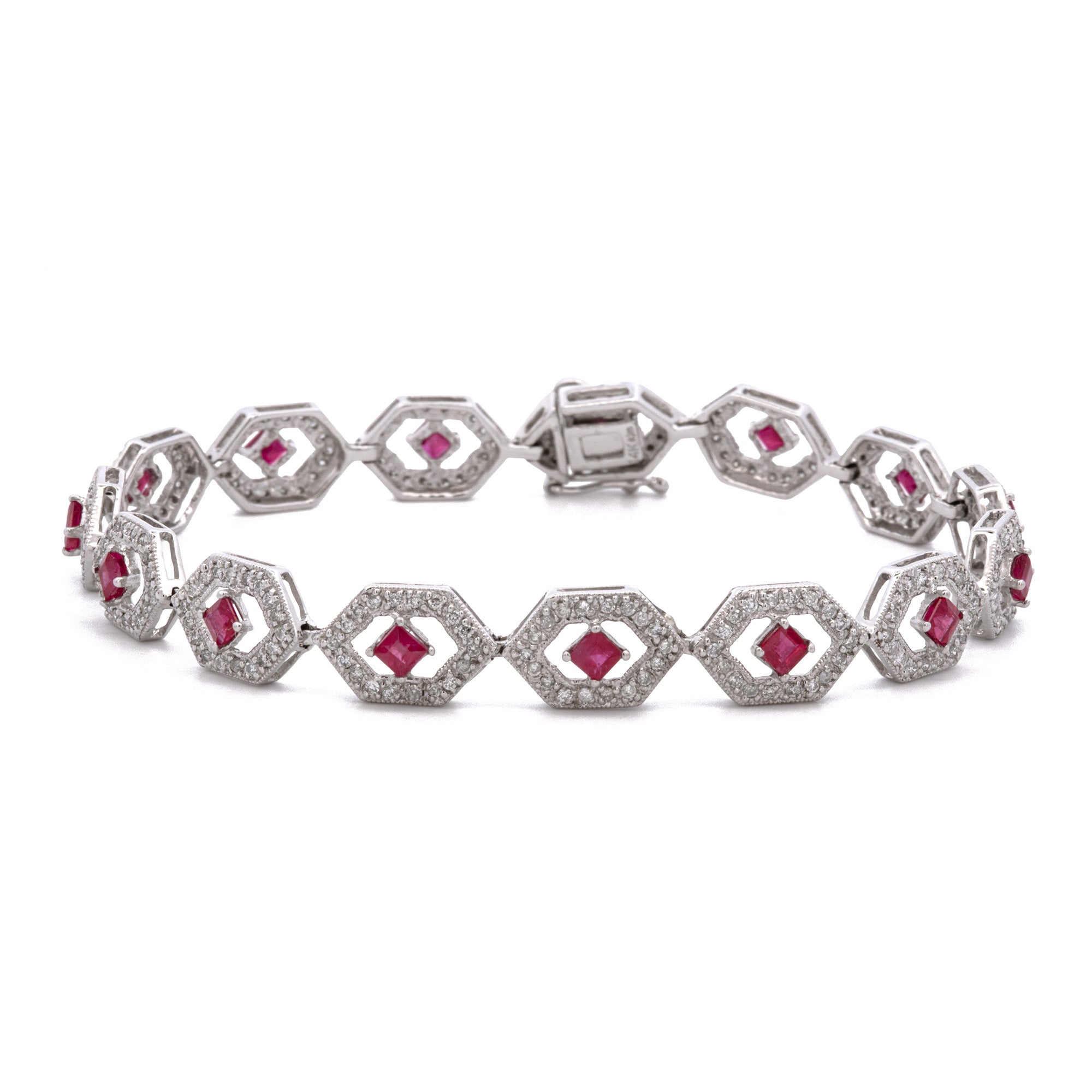14K White Gold Ruby And Diamond Bracelet. Rubies Weigh A Total Of 2.15 Carats. Diamonds Weigh A Total Of 1.15 Carats.
