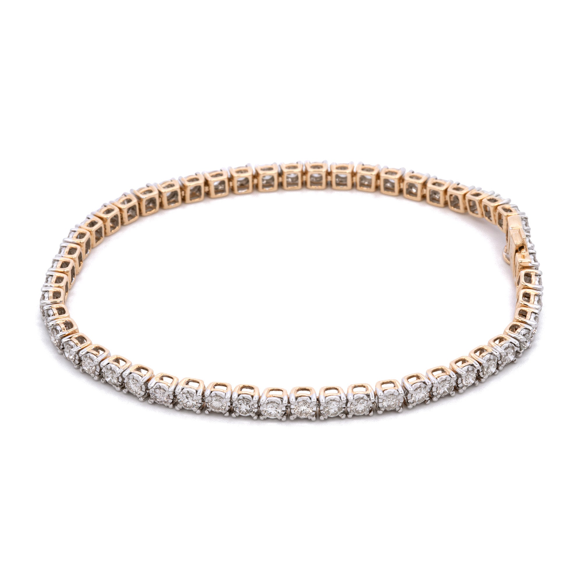 14K Yellow And White Gold 3.00ctw Round Brilliant Cut Diamond Line Bracelet