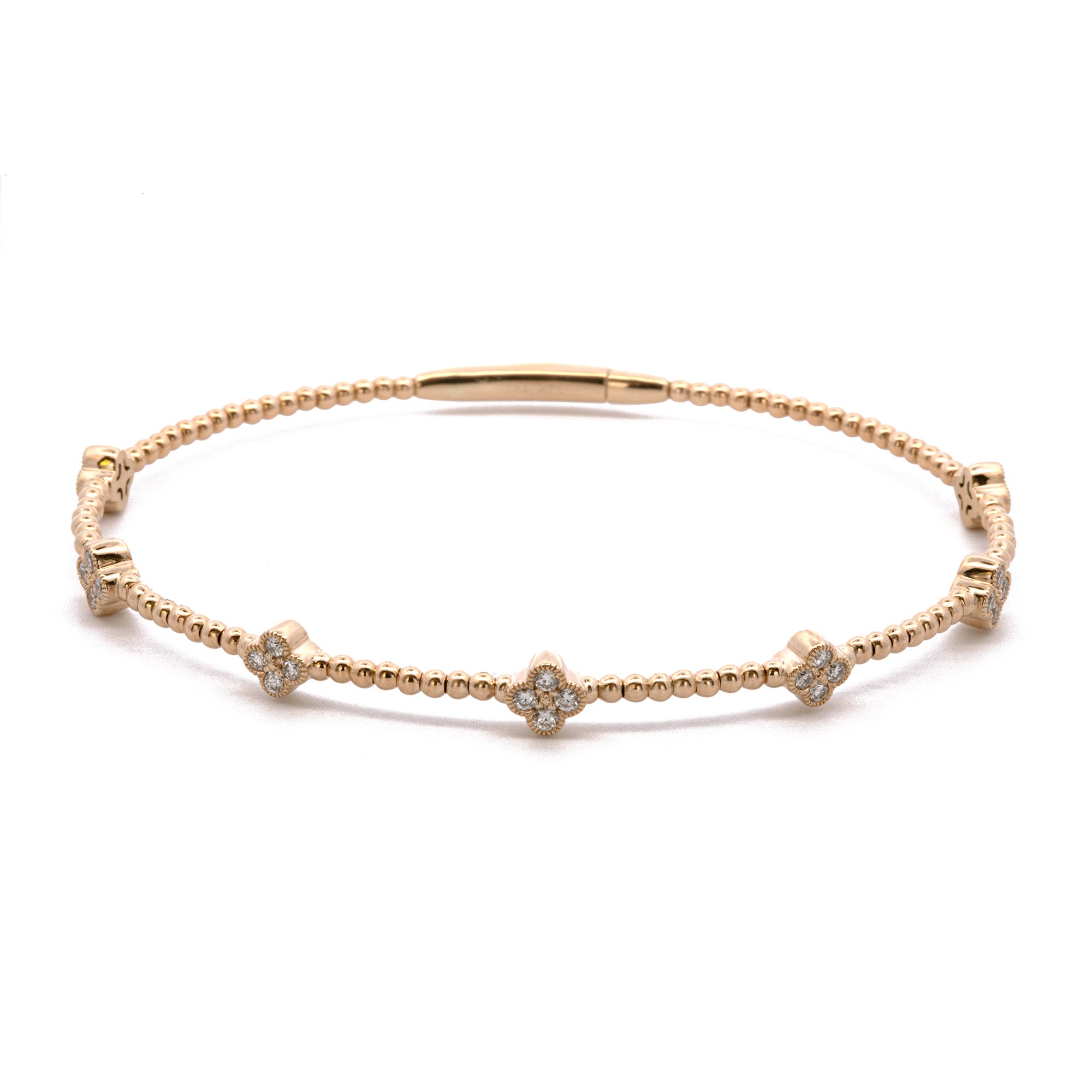 14K Yellow Gold Bangle Bracelet With Diamond Stations