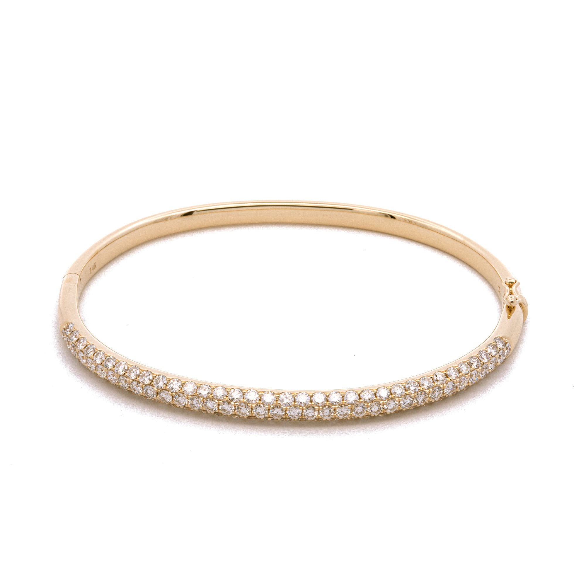 14K Yellow Gold Three Row 3.01ctw Pave Diamond Bangle Bracelet