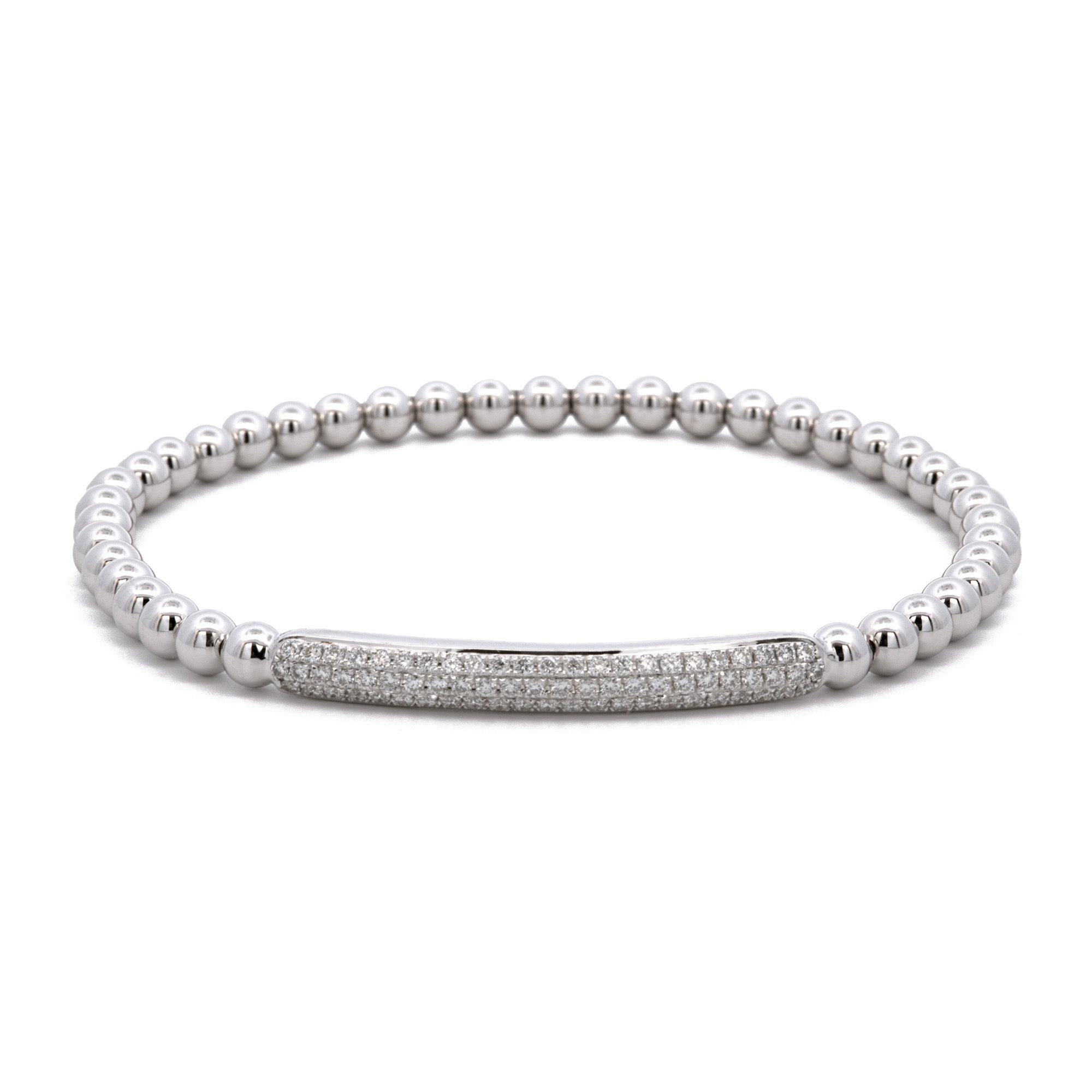 18K White Gold Gold Diamond Flexible Bead Bracelet