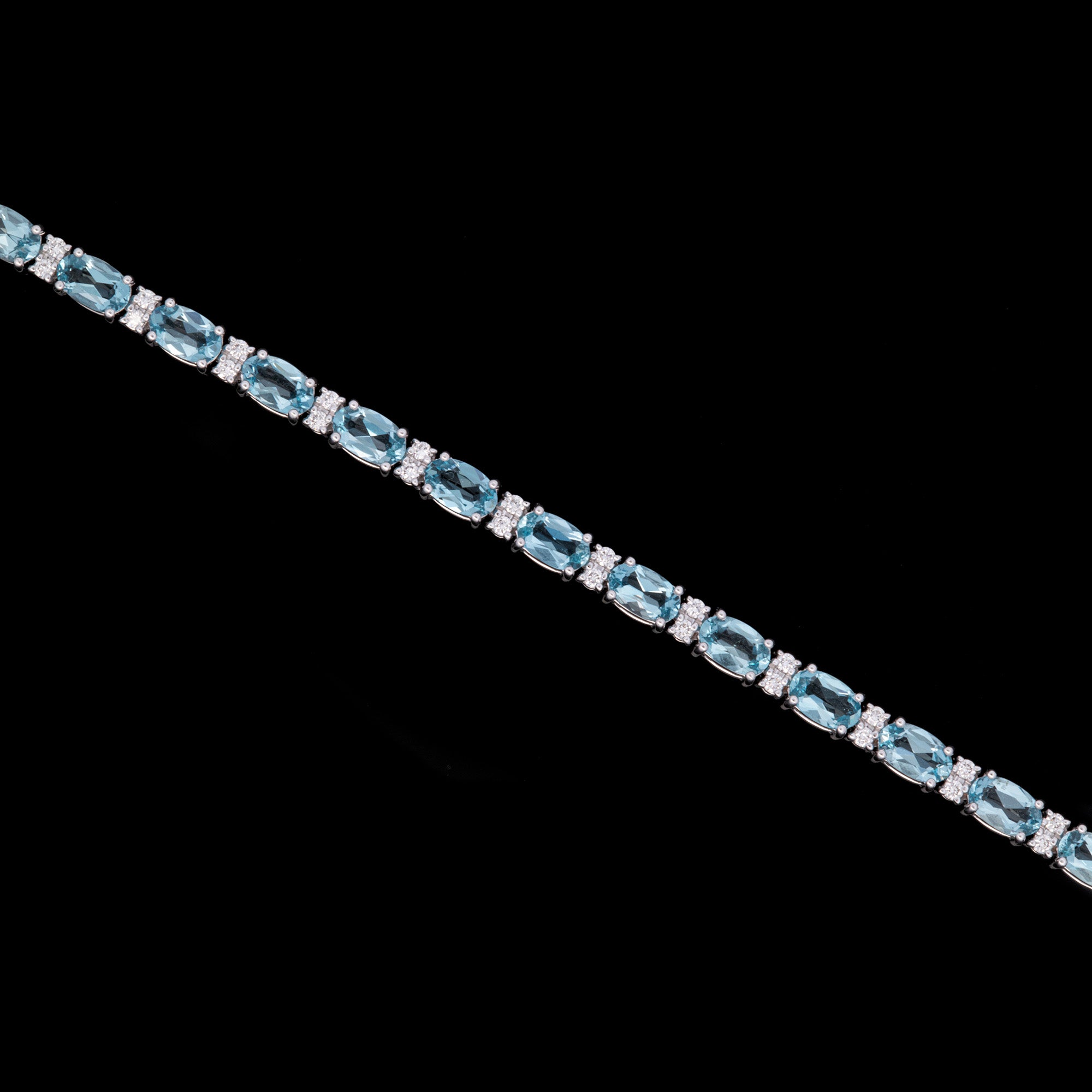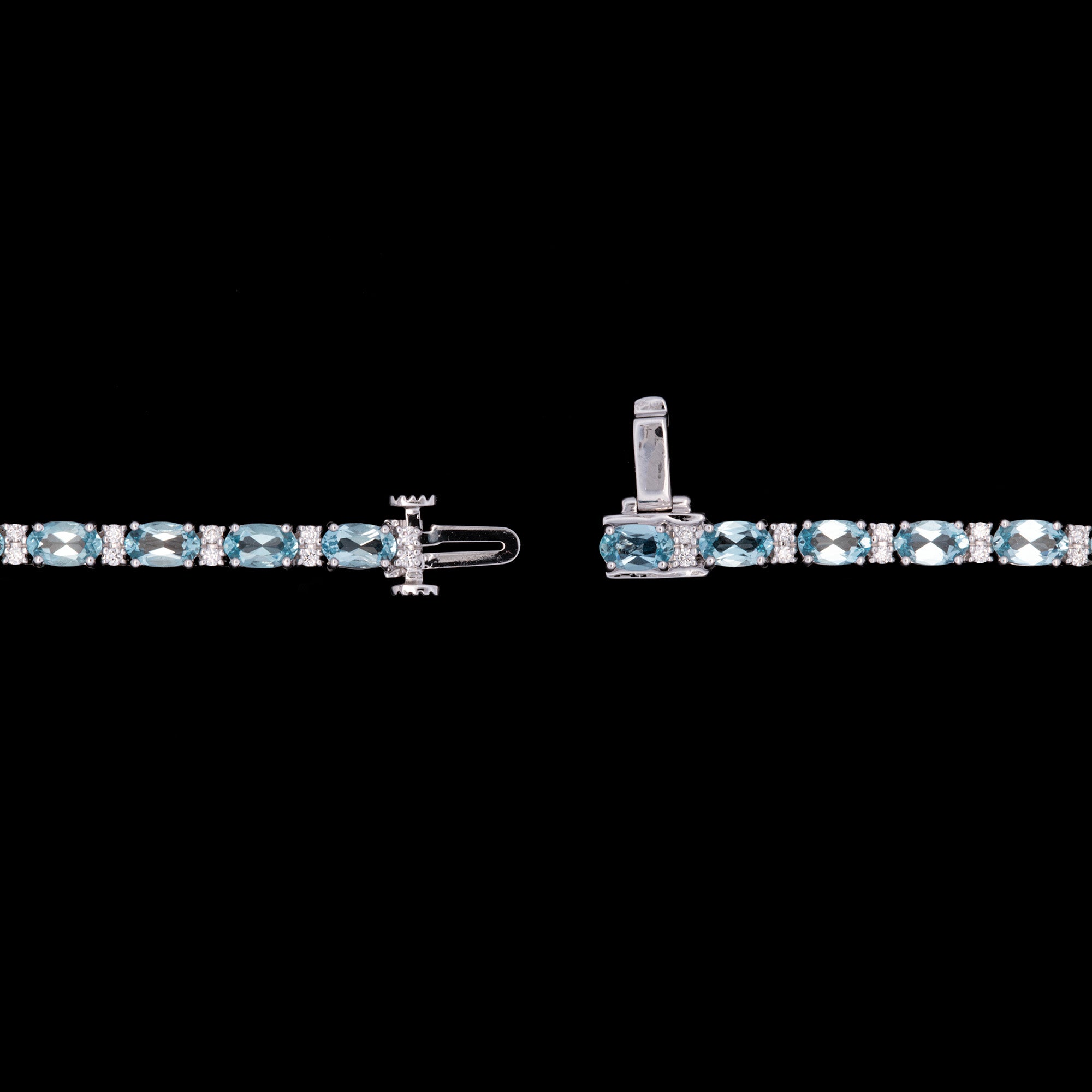 18K White Gold Oval Aquamarine And Diamond Bracelet