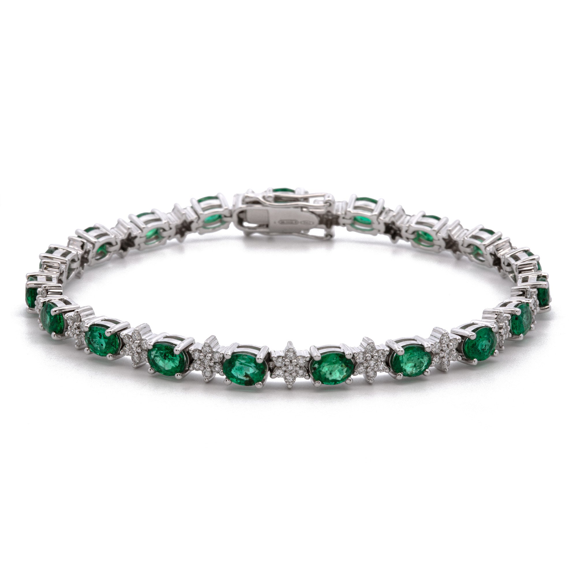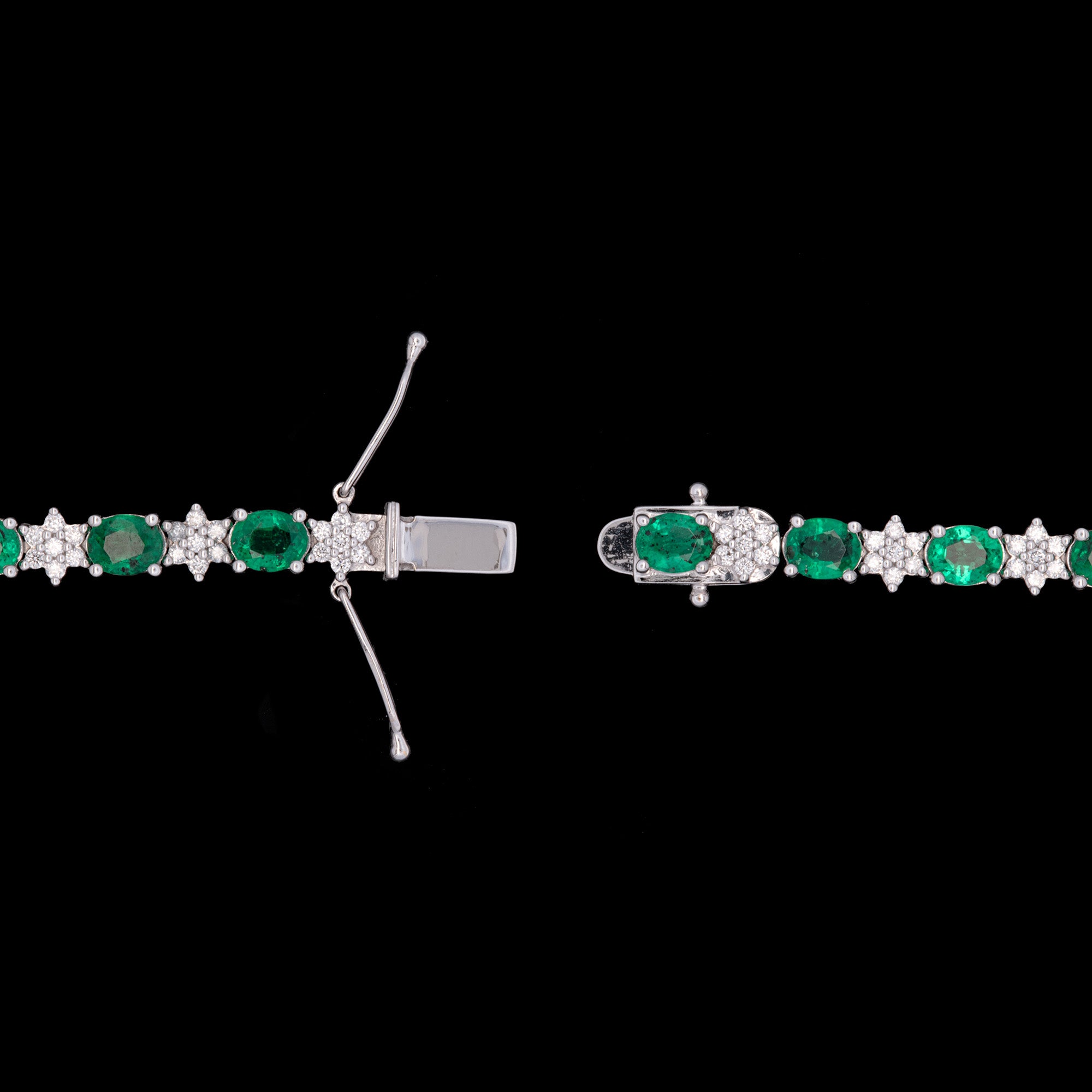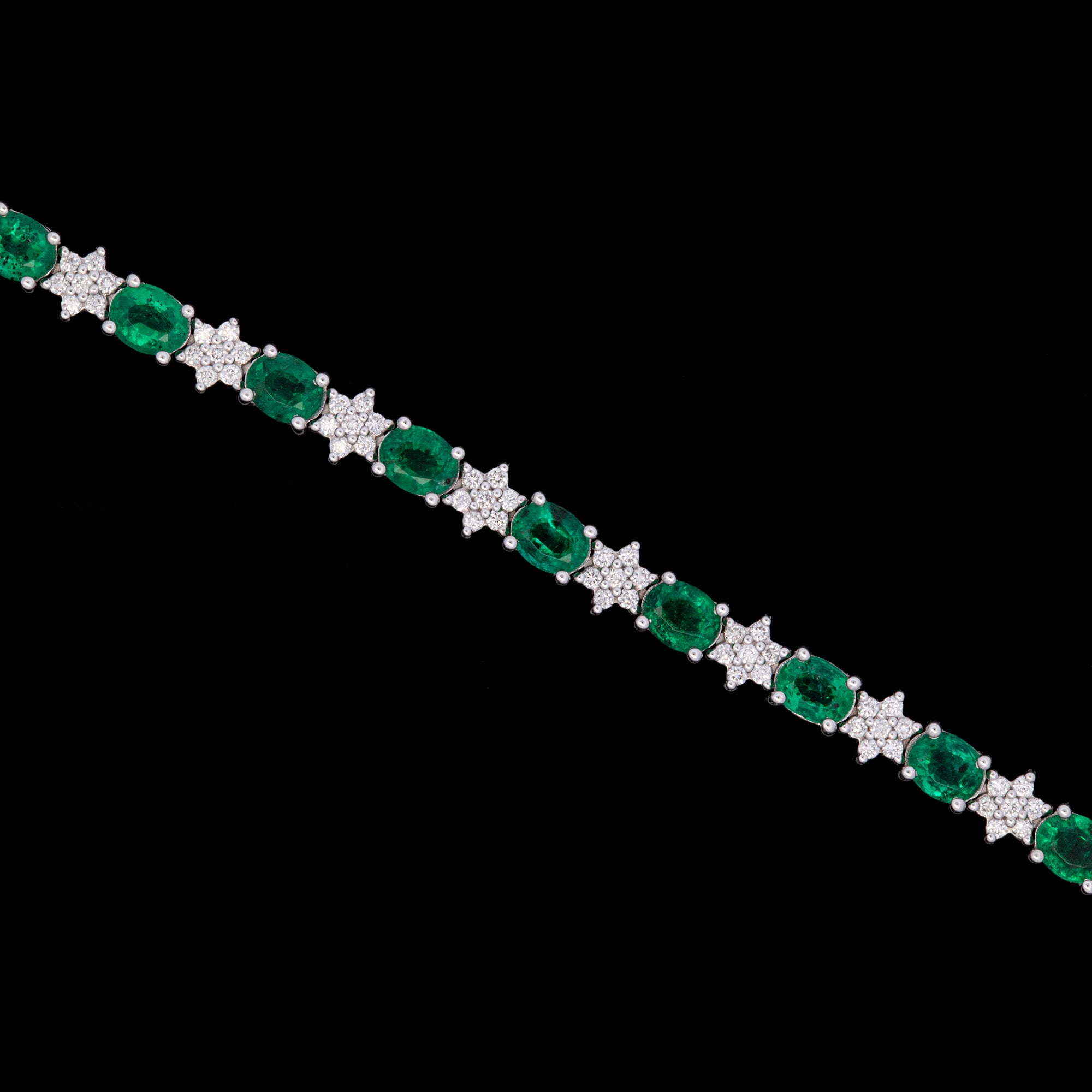 18K White Gold Oval Emerald And Diamond Star Bracelet