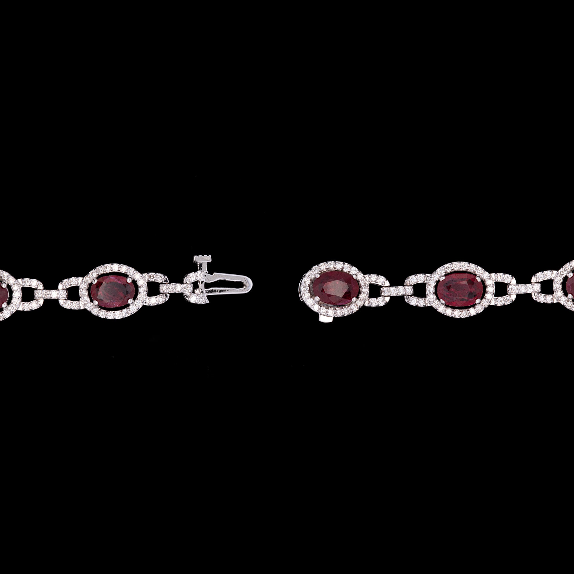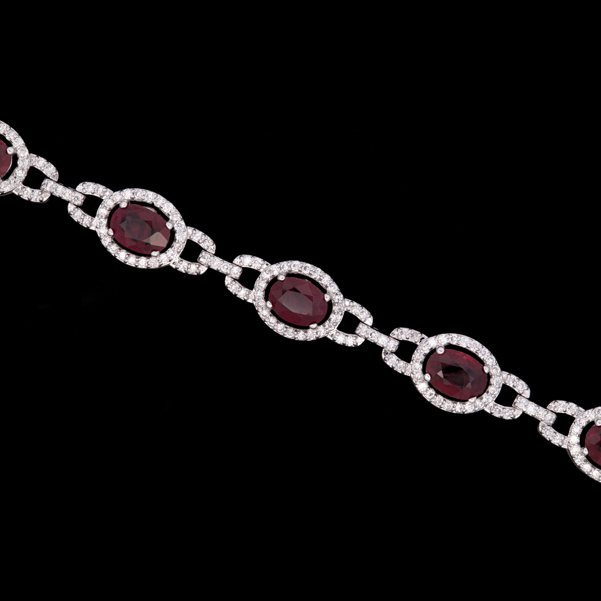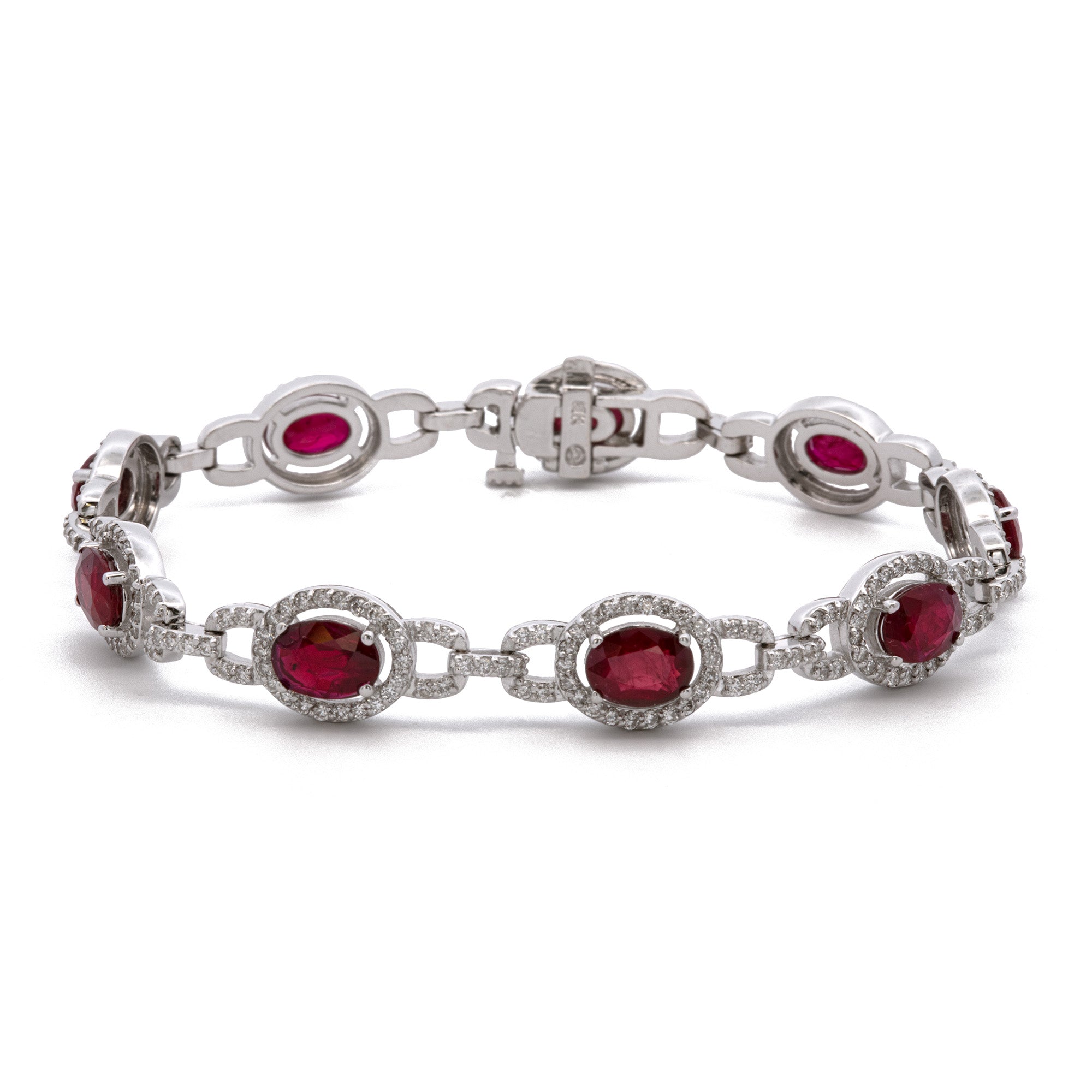 18K White Gold Oval Ruby And Diamond Bracelet. Rubies Weigh A Total Of 10.52 Carats. Diamonds Weigh A Total Of 2.52 Carats.