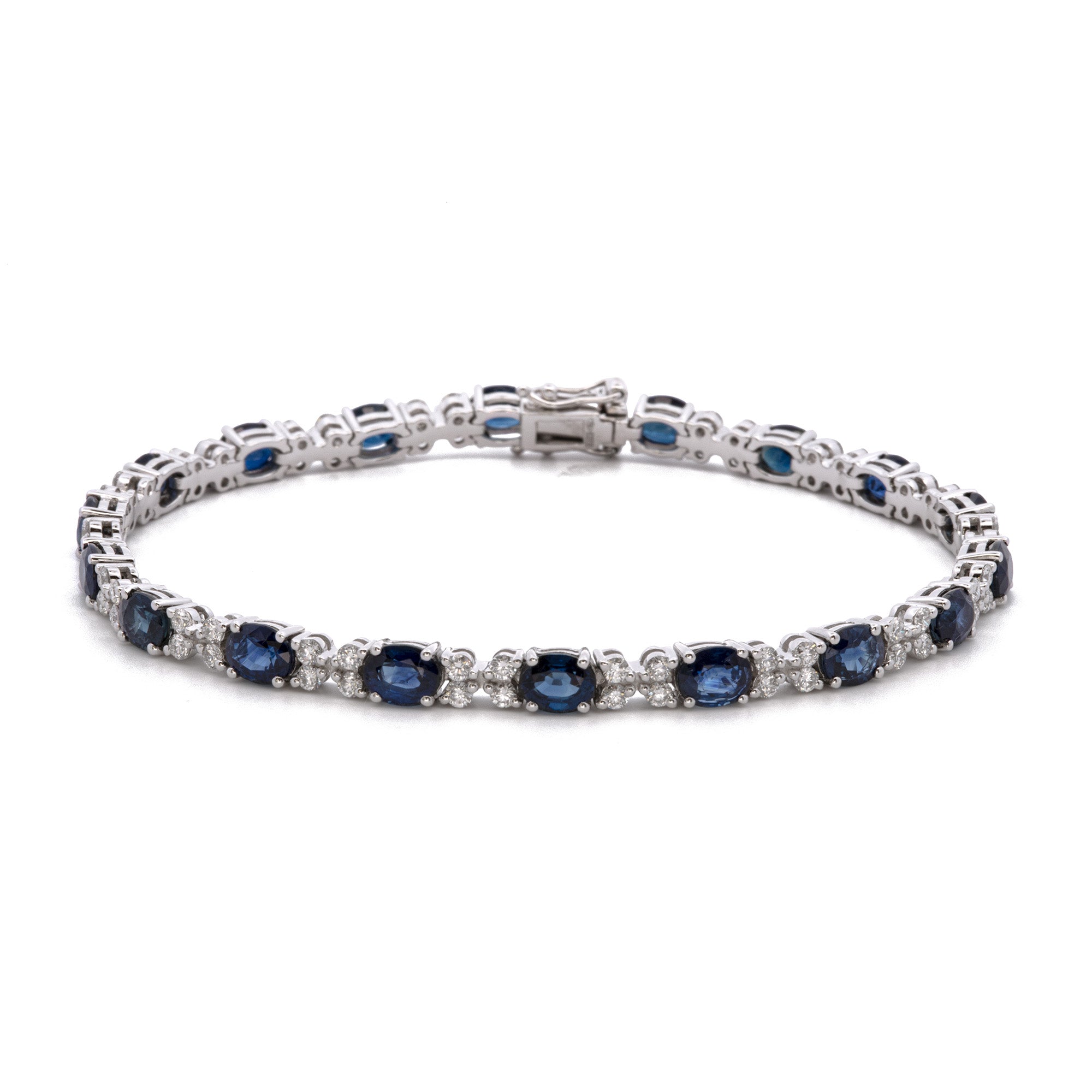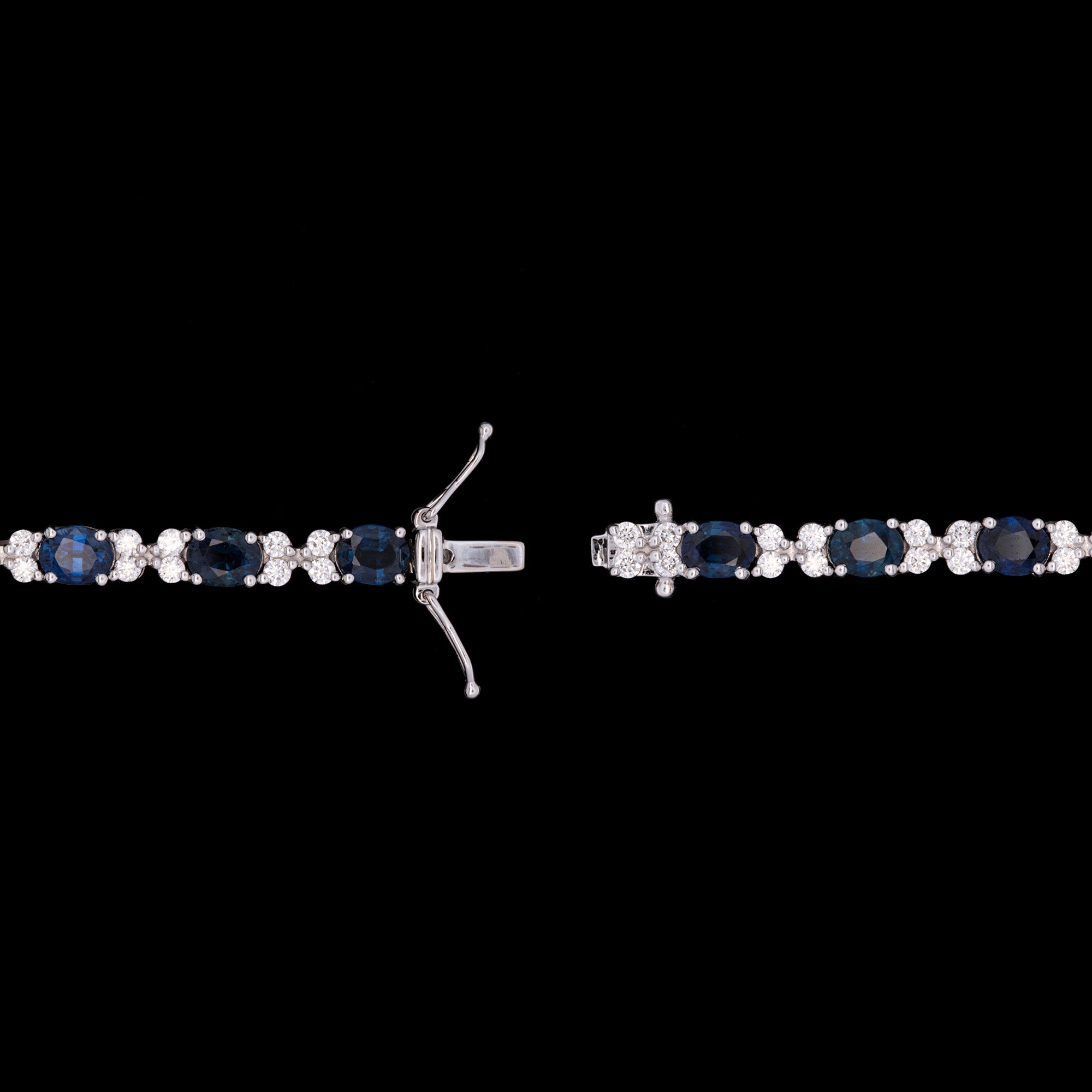 18K White Gold Oval Sapphire and Diamond Bracelet