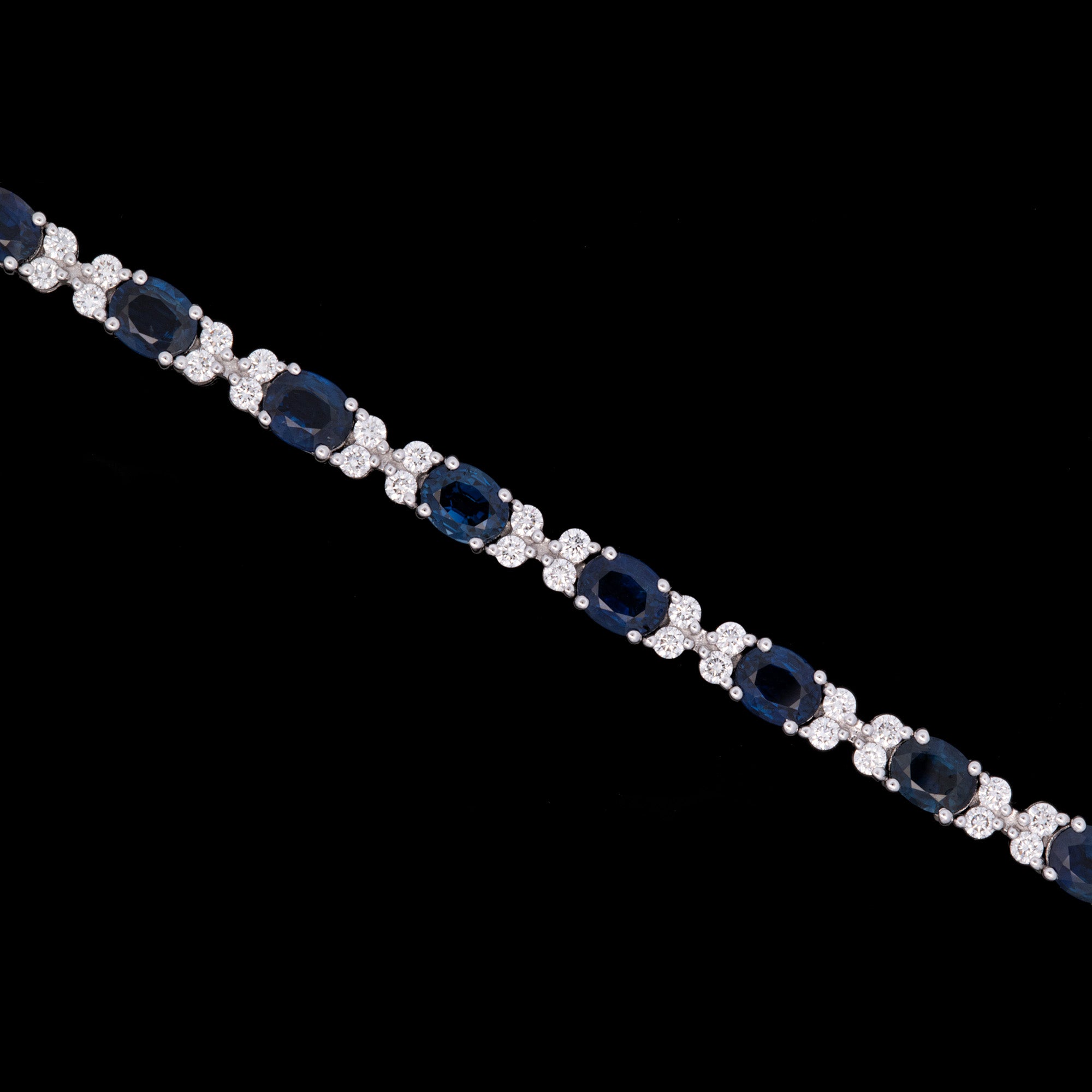 18K White Gold Oval Sapphire and Diamond Bracelet. Eighteen Sapphires Weigh A Total Of 9.30 Carts. Seventy-Two Diamonds Weigh A total Of 1.62 Carats And Have G-H Color, VS2-SI1 Clarity.