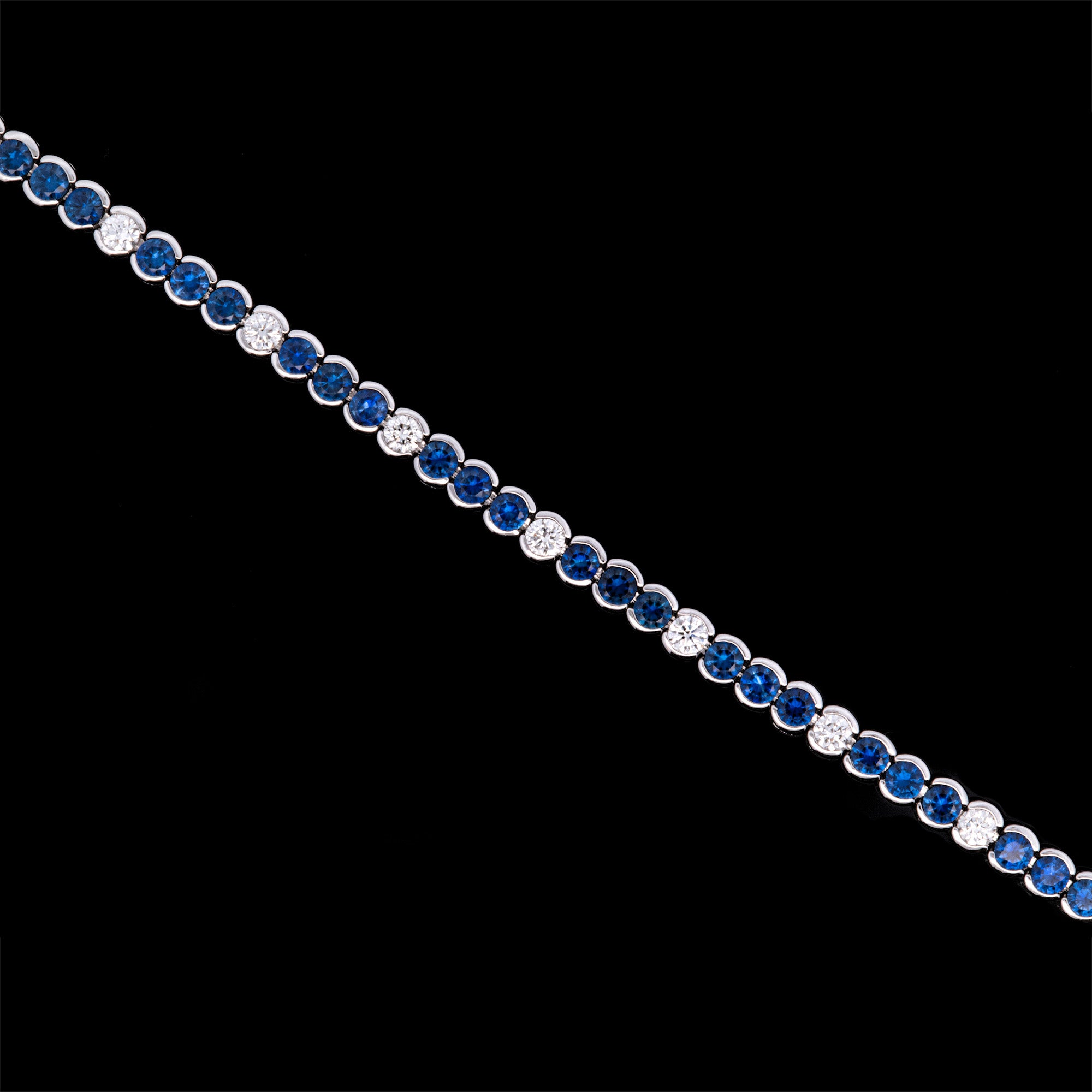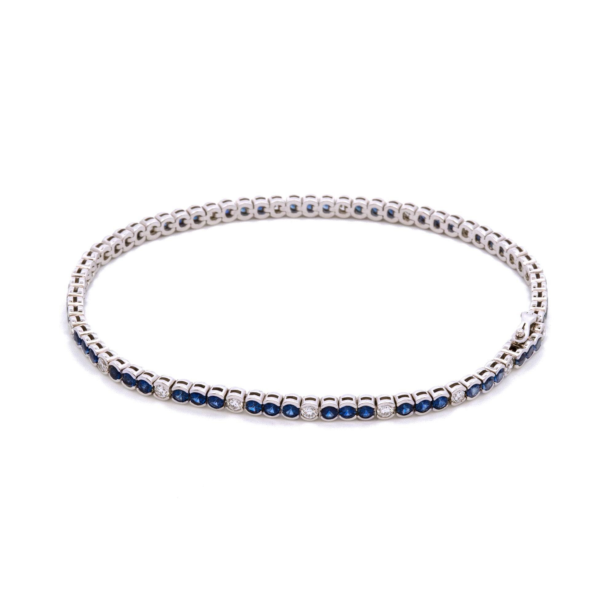 18K White Gold Sapphire And Diamond Bezel Line Bracelet, 7.1 Inches