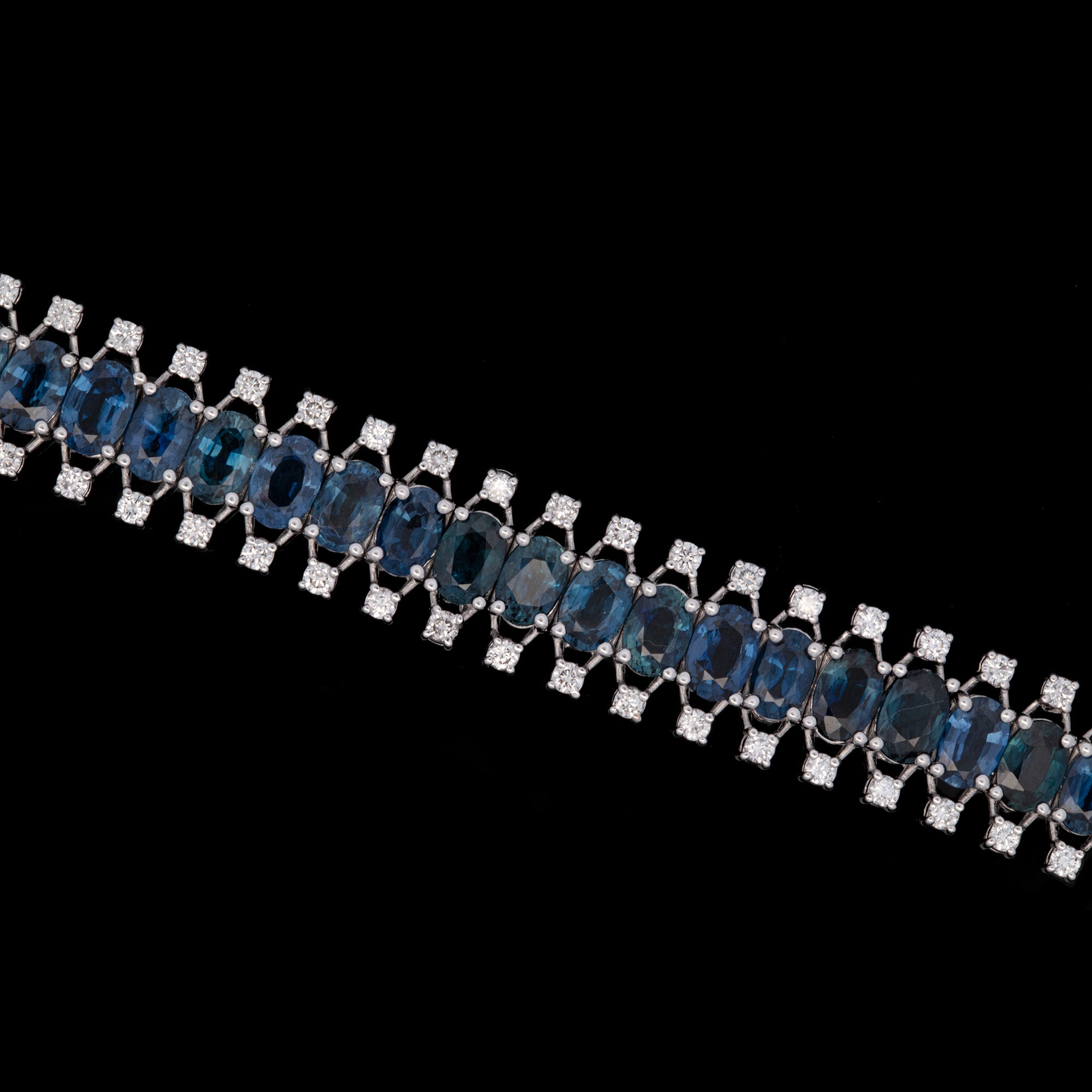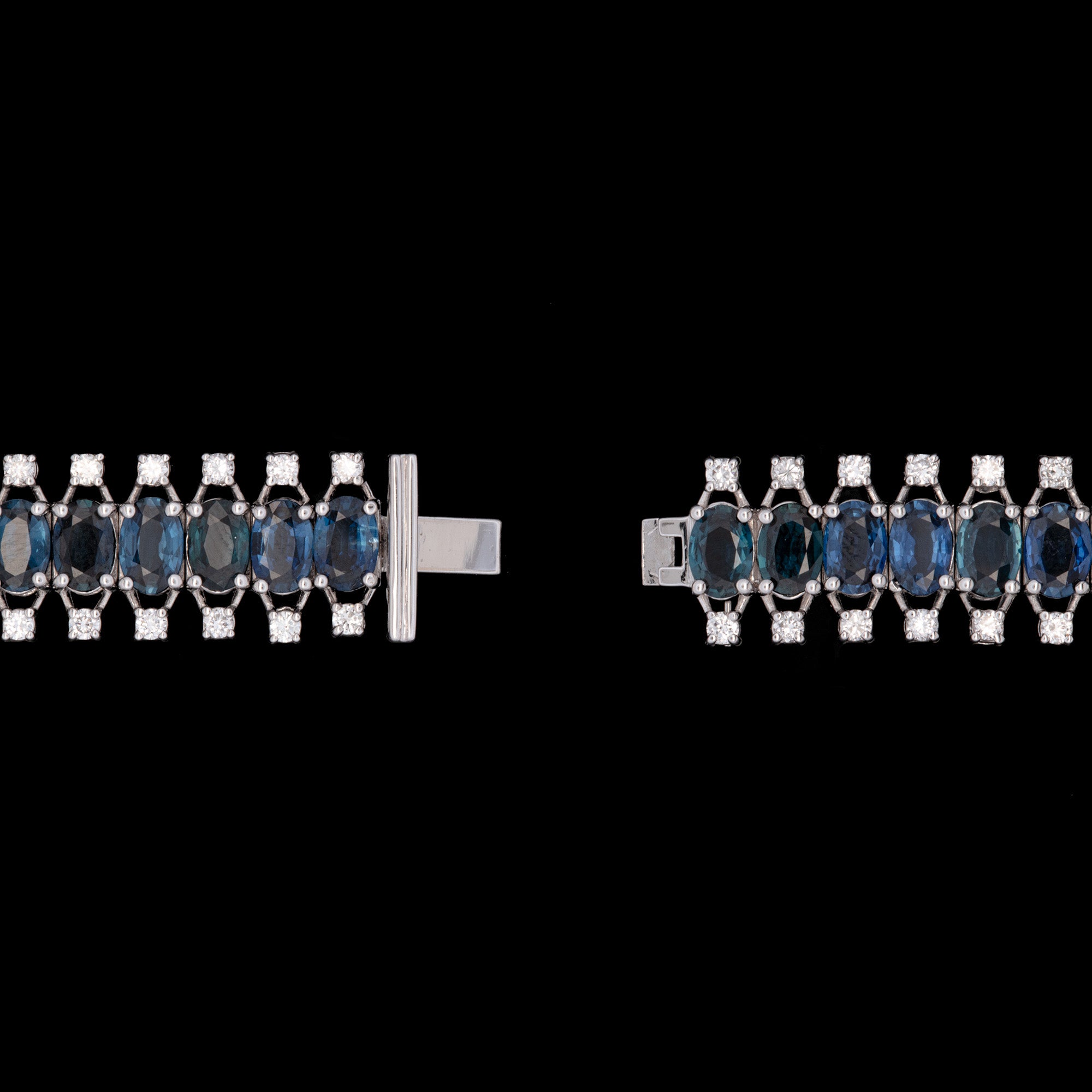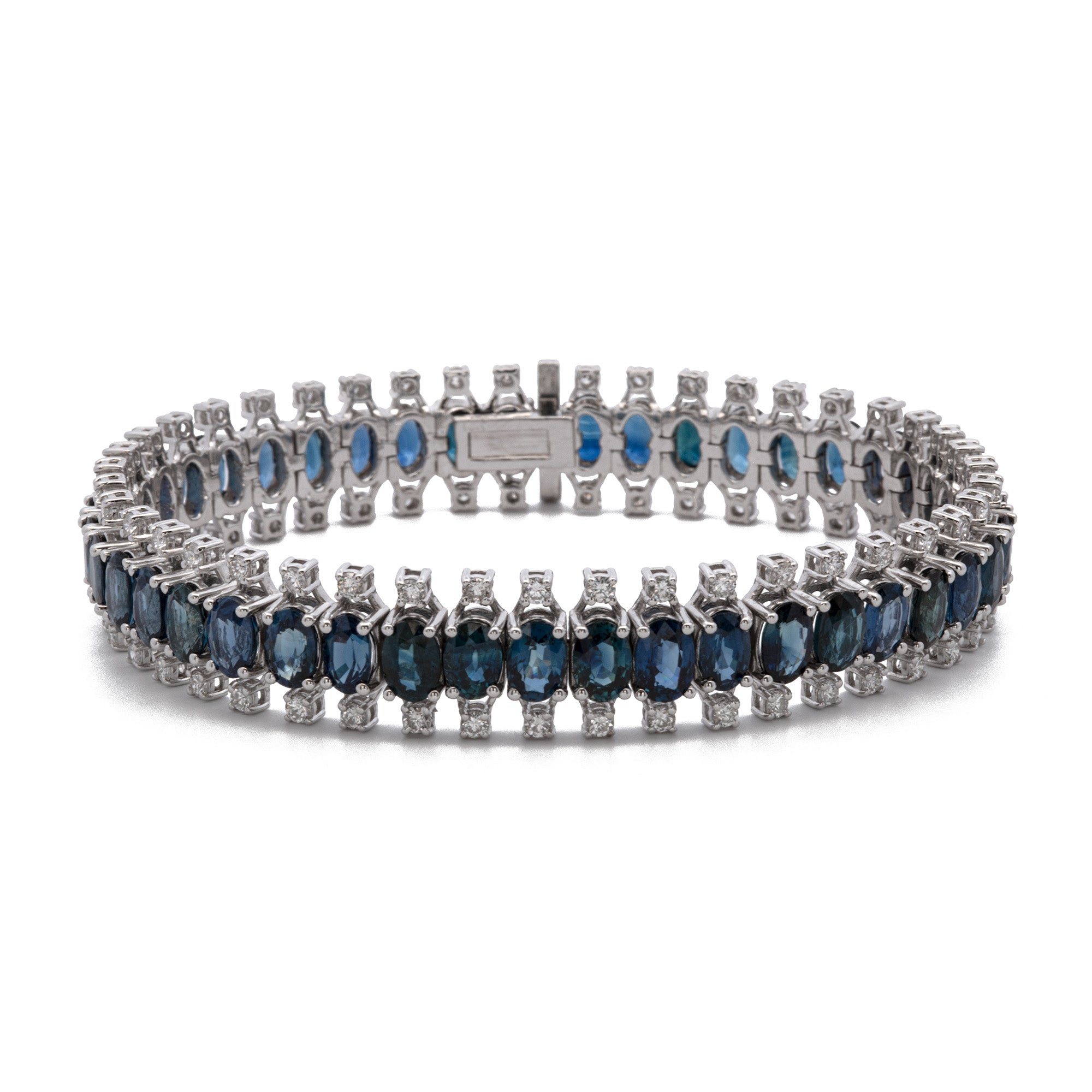 18K White Gold Sapphire And Diamond Bracelet. Forty-Three Oval Sapphires Weigh A Total Of 24.60 Carats. Eighty-Six Round Diamonds Weigh A Total Of 2.63 Carats.