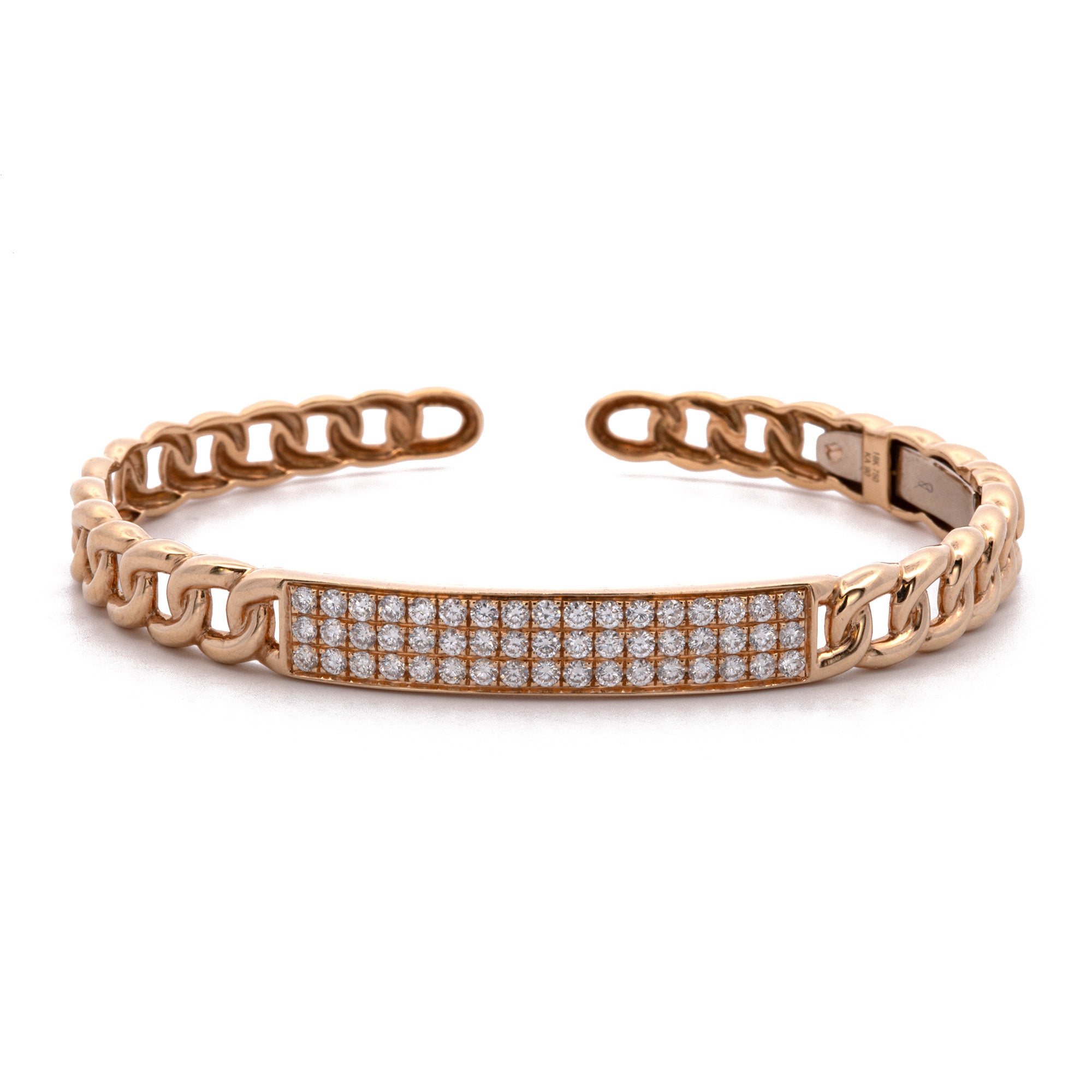 18K Yellow Gold Chain Link Bangle Bracelet With Diamonds. Fifty-One Round Diamonds Weigh A Total Of 0.93 Carats And Have G-H Color, VS1-SI1 Clarity.