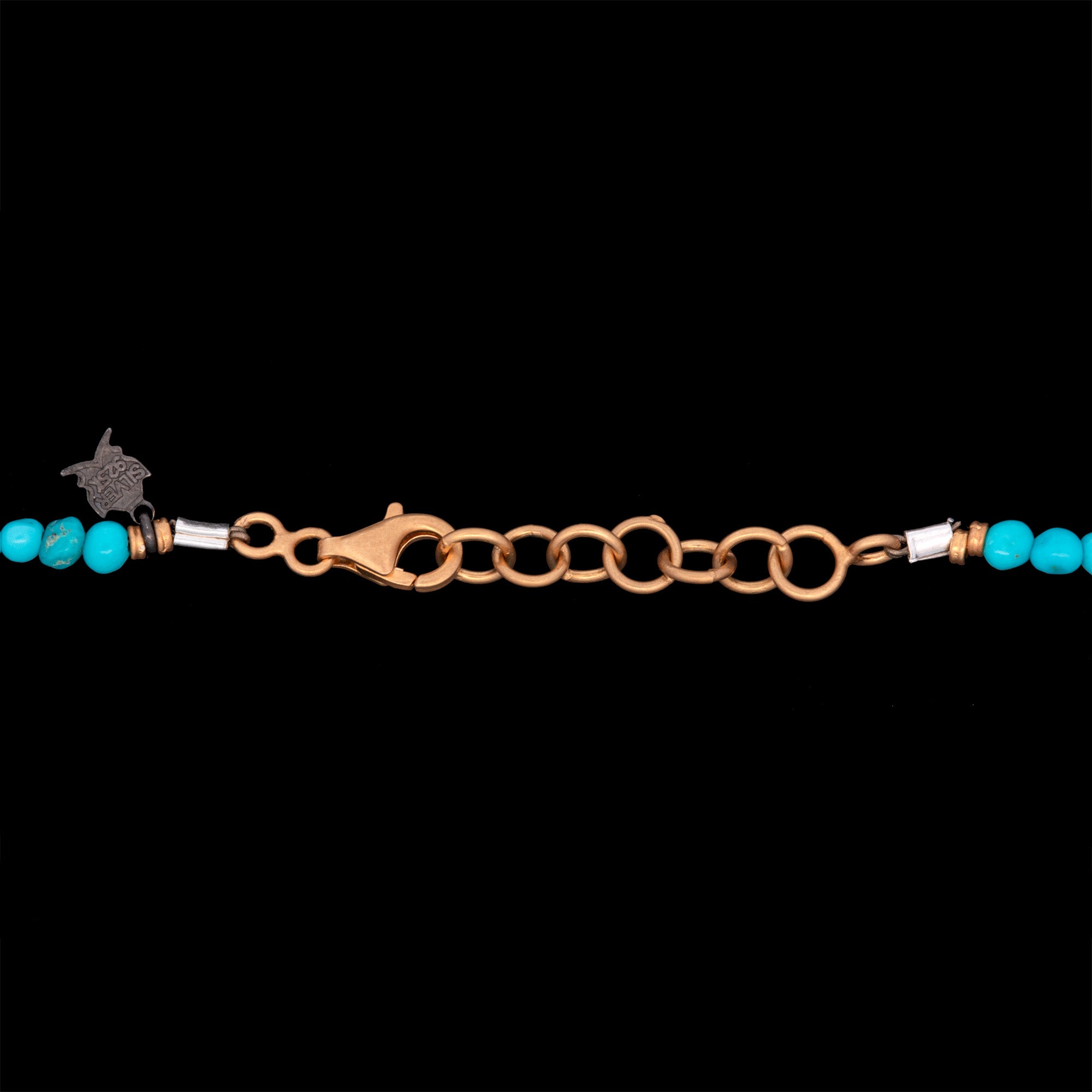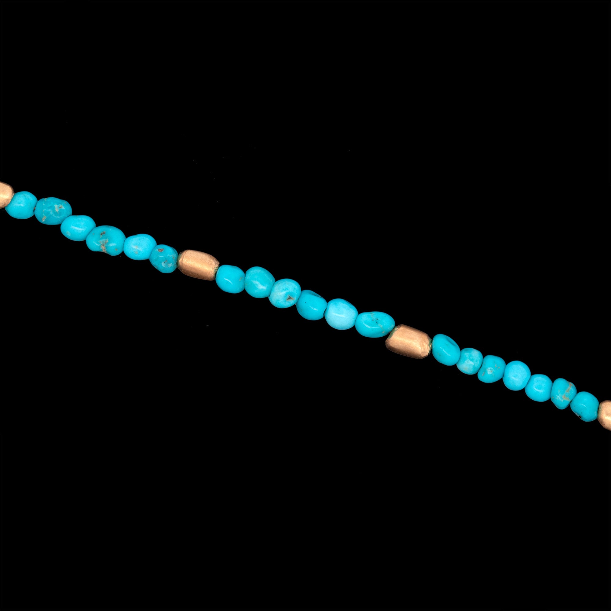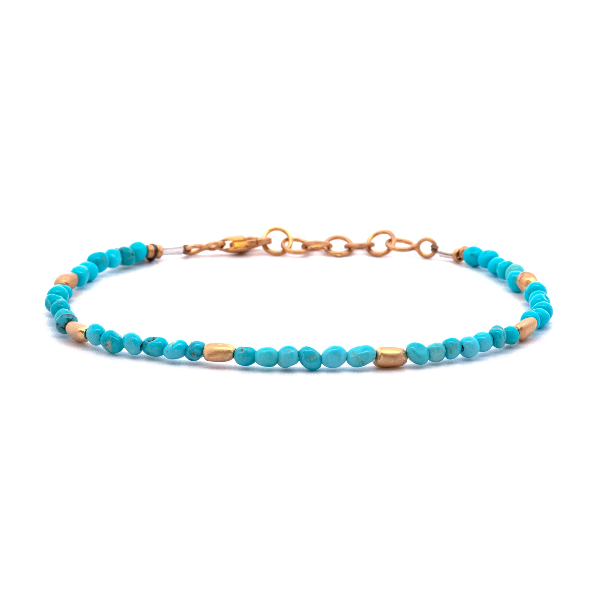 24K Yellow Gold And Sterling Silver Turquoise And Gold Bead Bracelet. Hand Made In Turkey.
