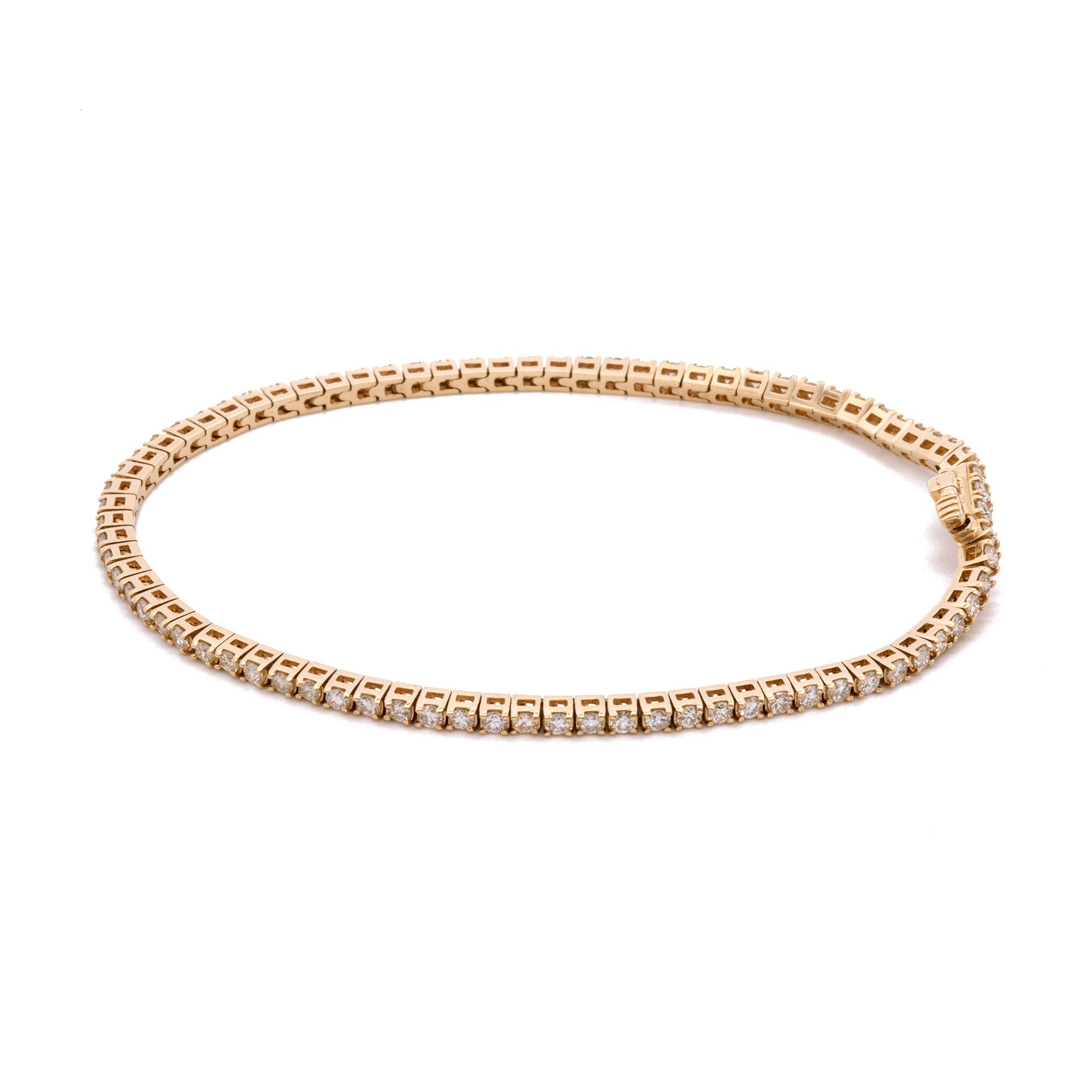 14K Yellow Gold Round Diamond Tennis Bracelet, 7 Inches. Seventy-Nine Diamonds Weigh A Total Of 2.00 Carats.