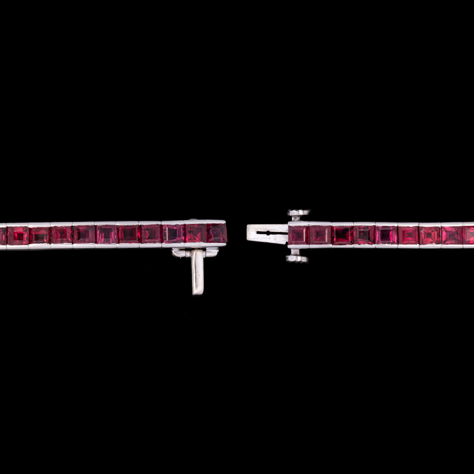 Platinum Square Cut Ruby Line Bracelet
