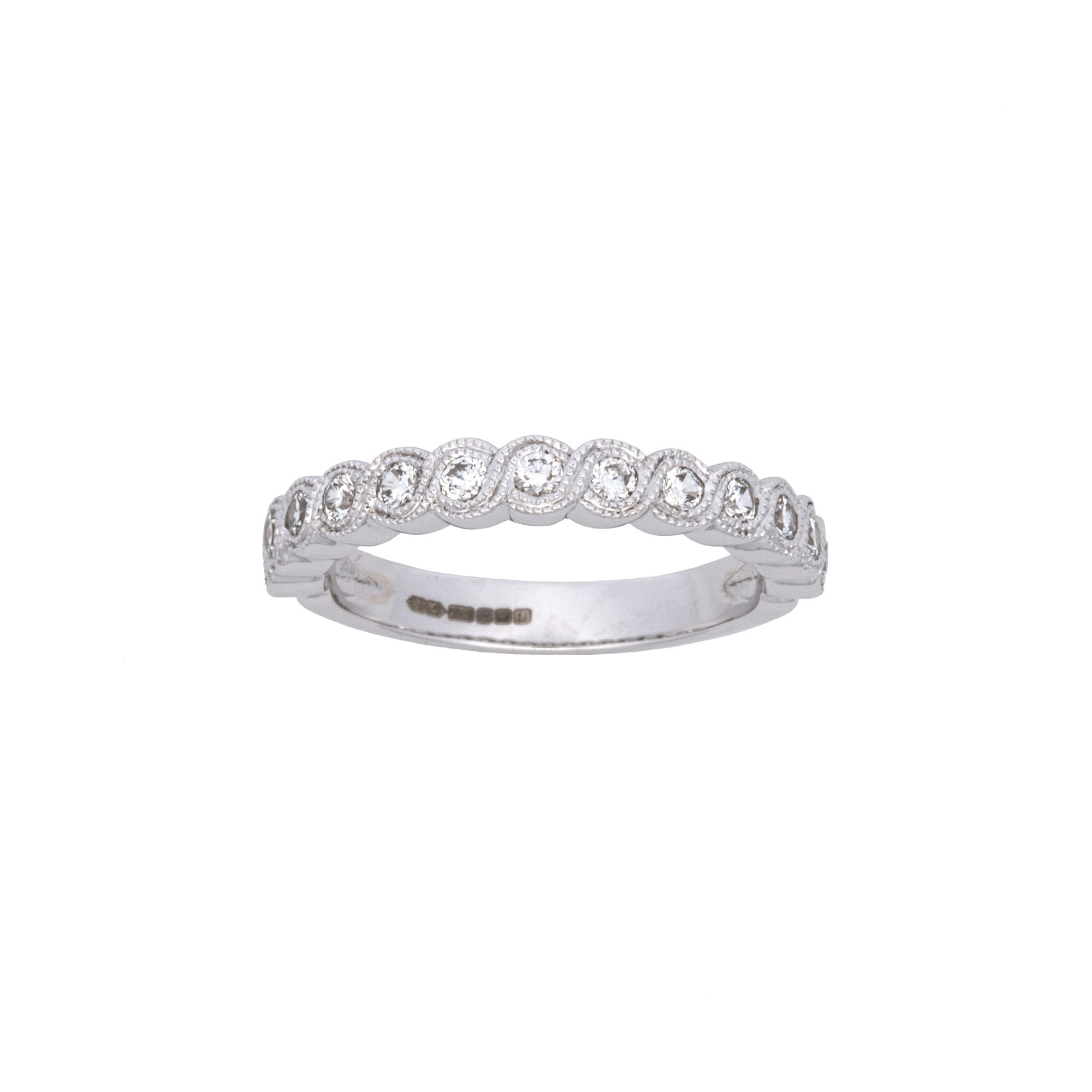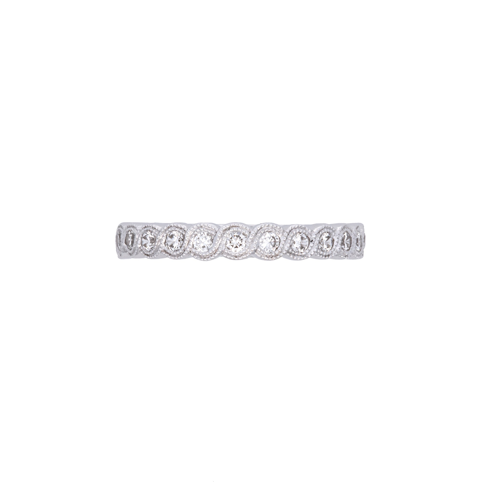 18K White Gold Bezel Set Diamond Half Eternity Band With Double Milgrain Edge