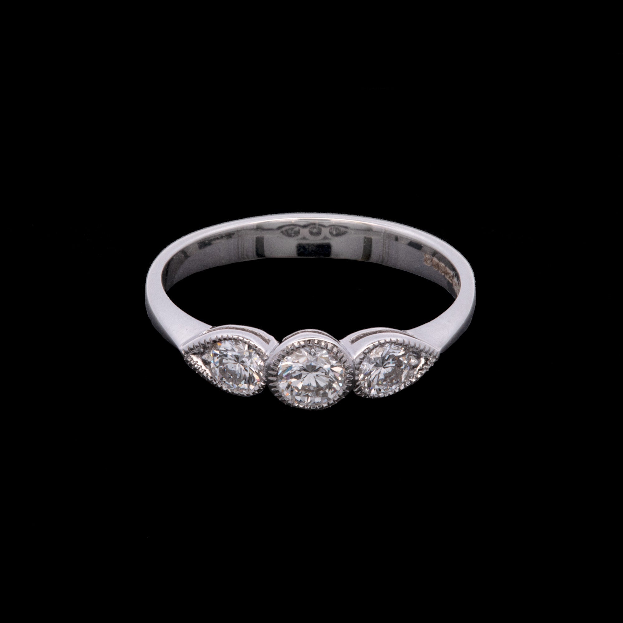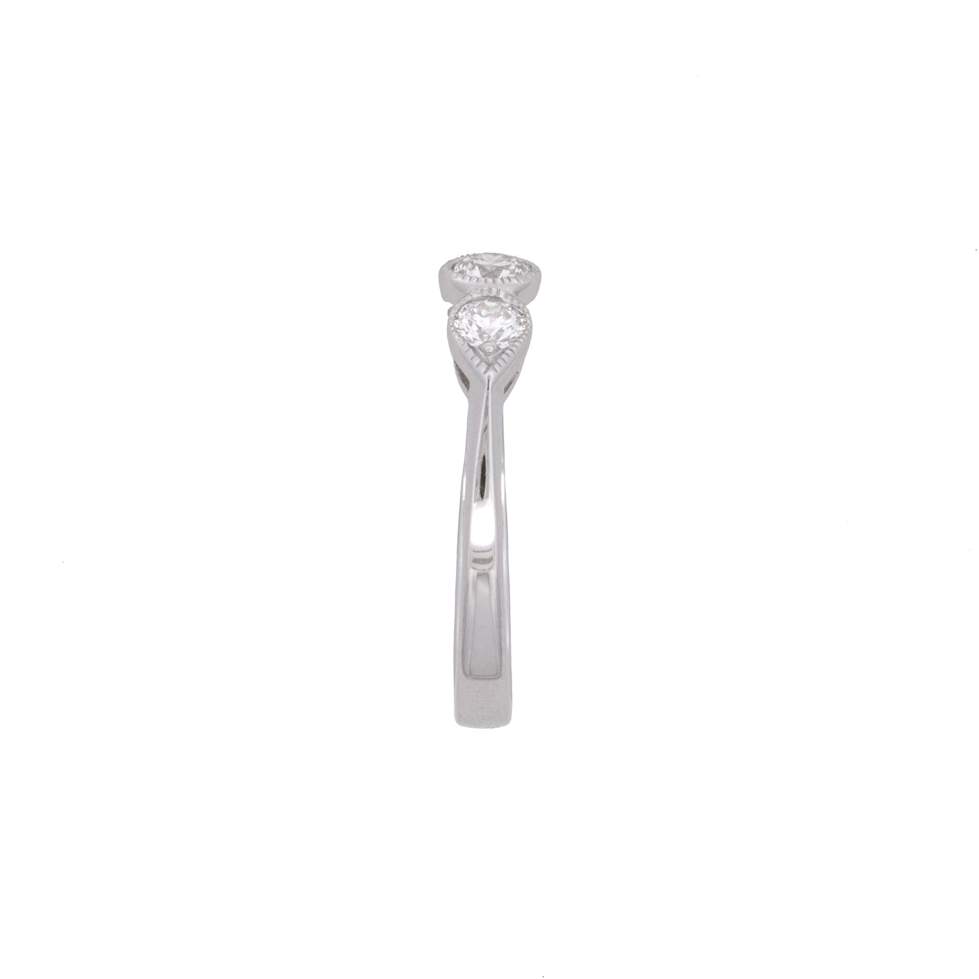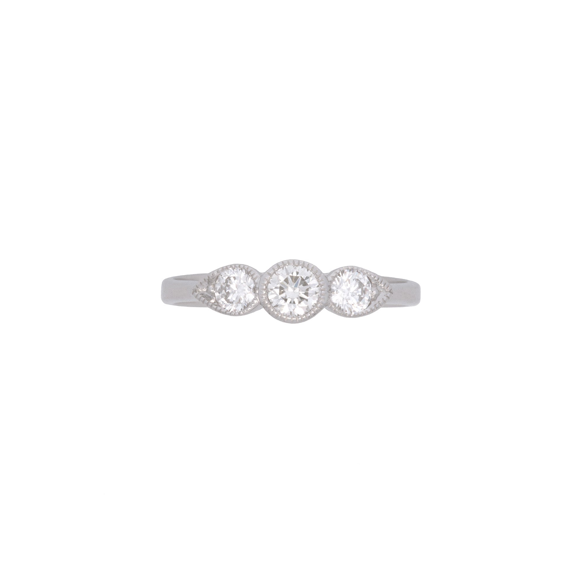 18K White Gold Bezel Set Three Stone 0.55ctw Diamond Milgrain Ring