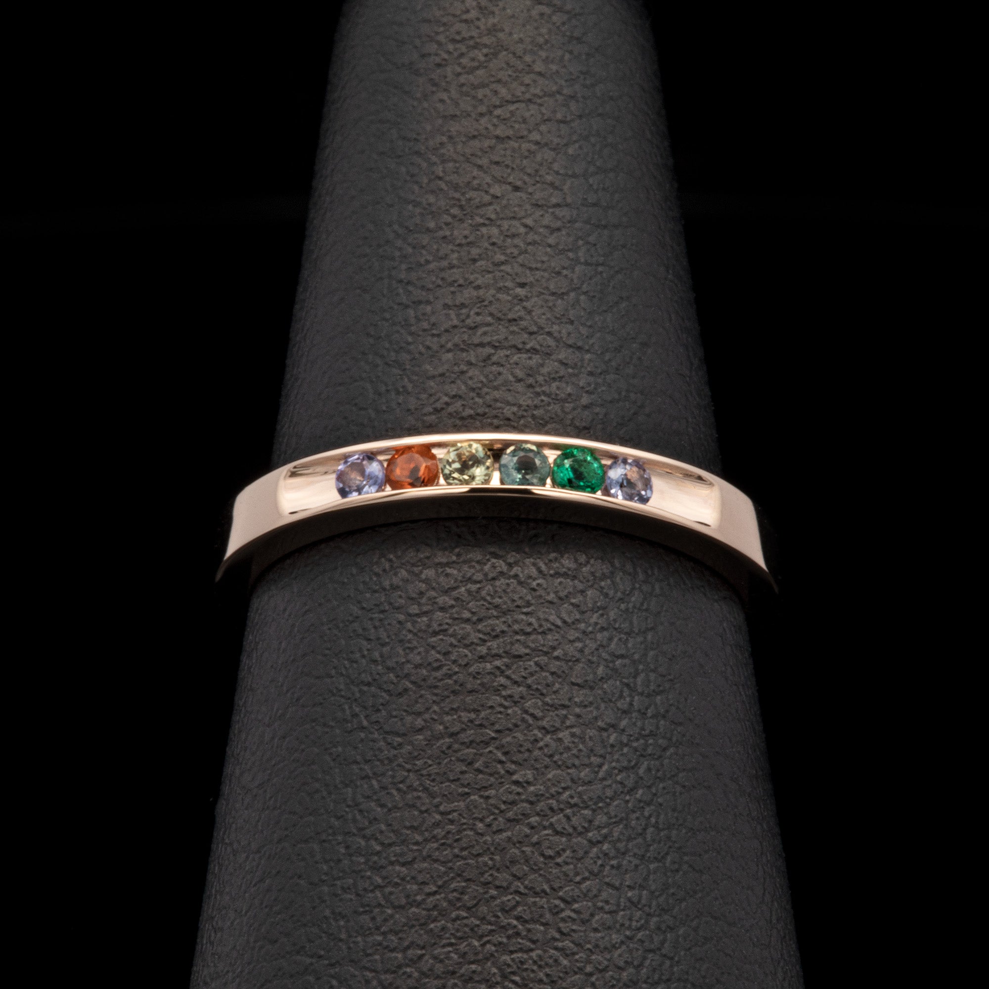 Custom 14K Yellow Gold Six Stone Channel Set Mothers Ring