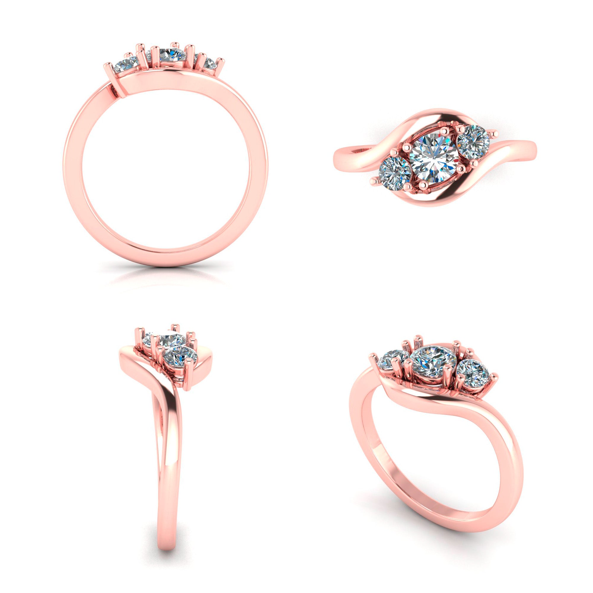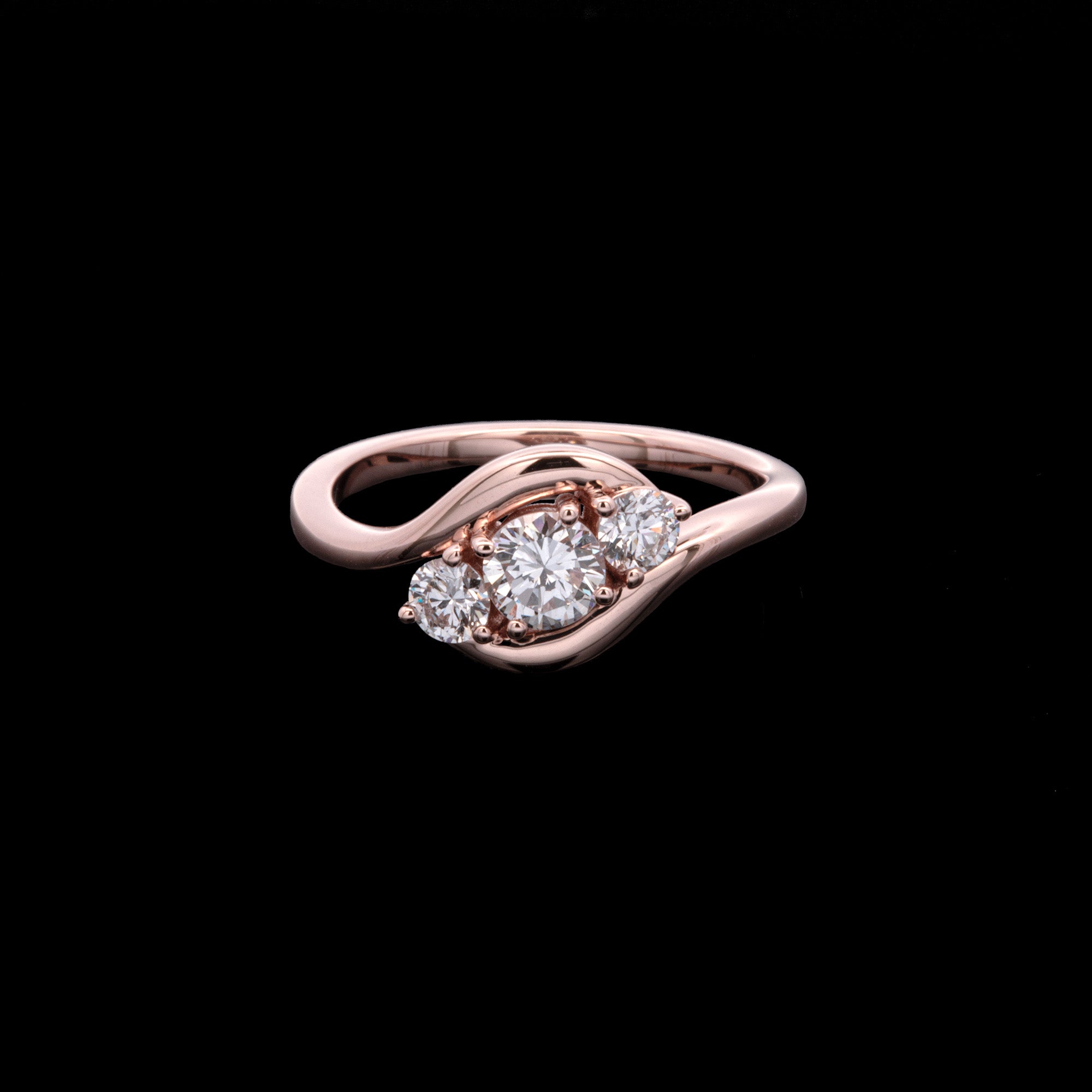 Custom 14K Rose Gold Three Stone Diamond Ring