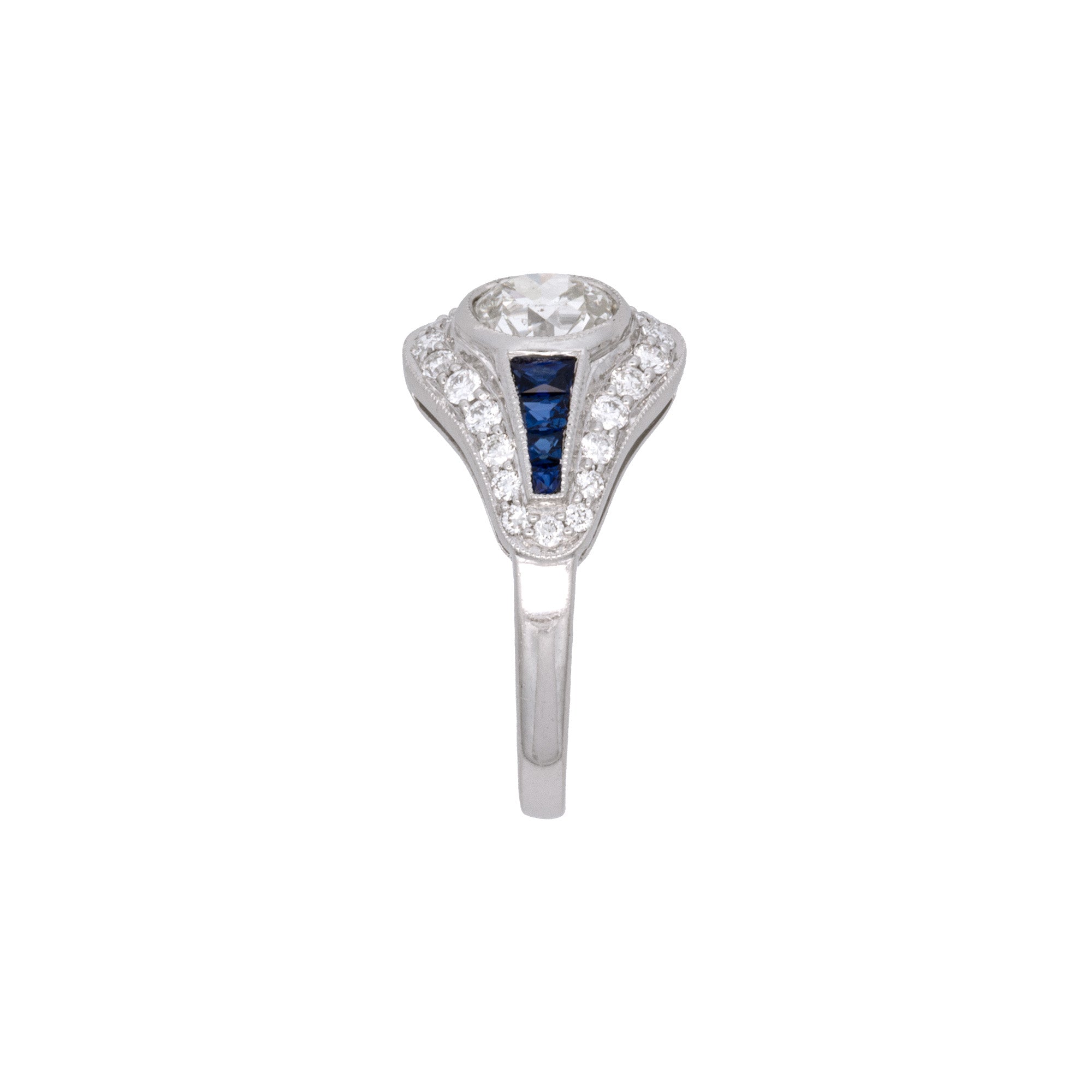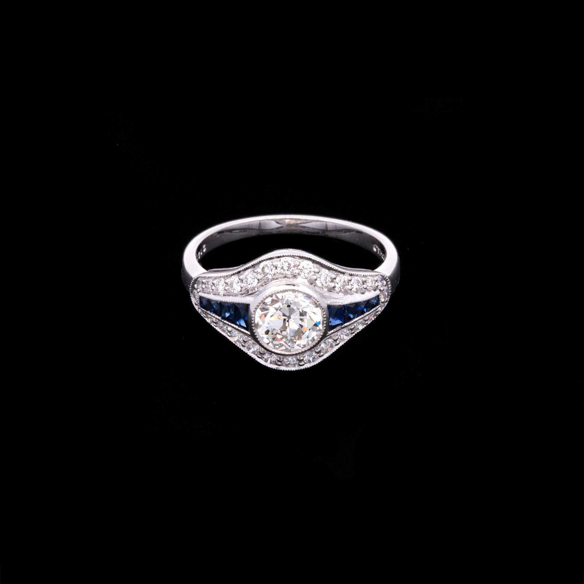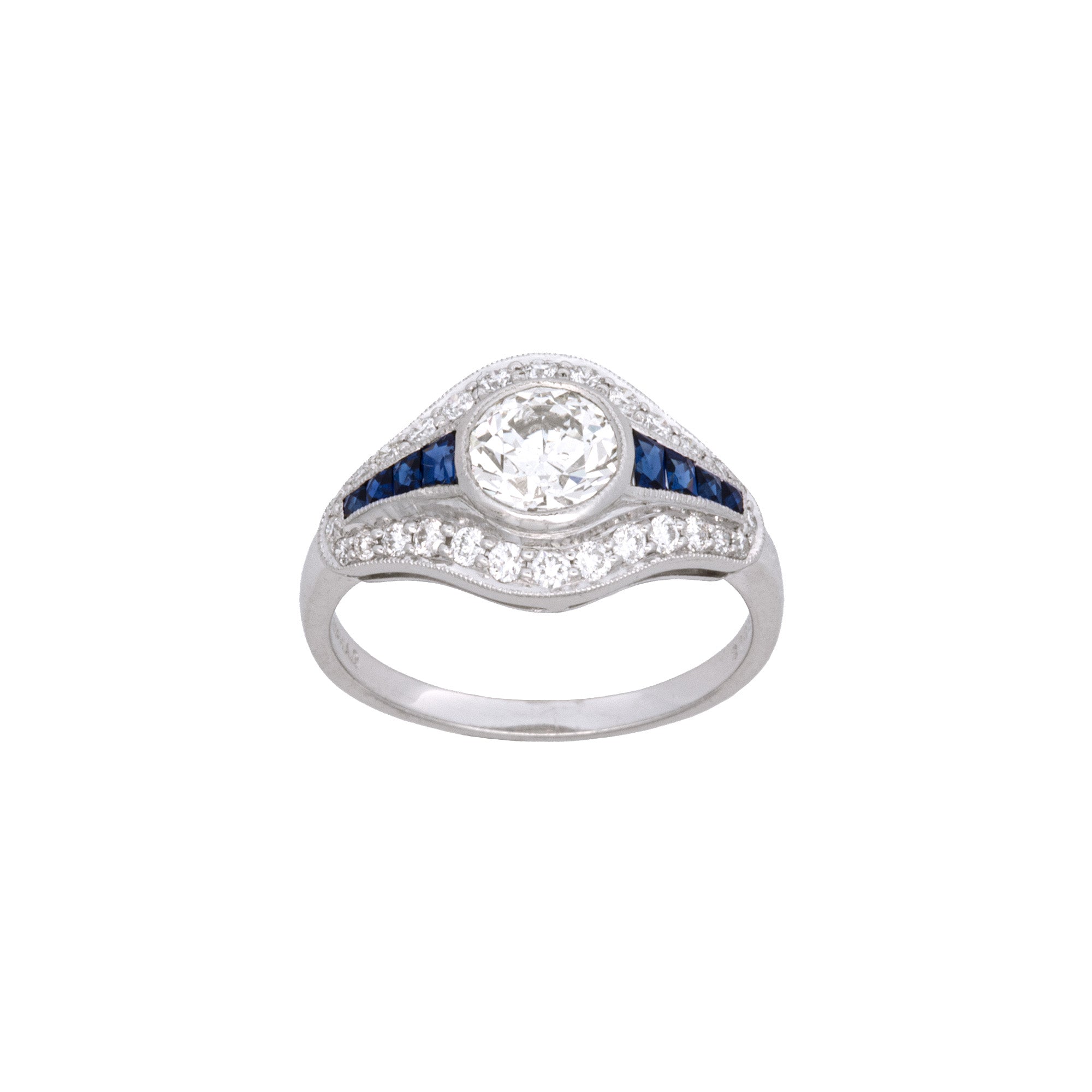 Platinum Old Mine Cut Diamond And Sapphire Ring