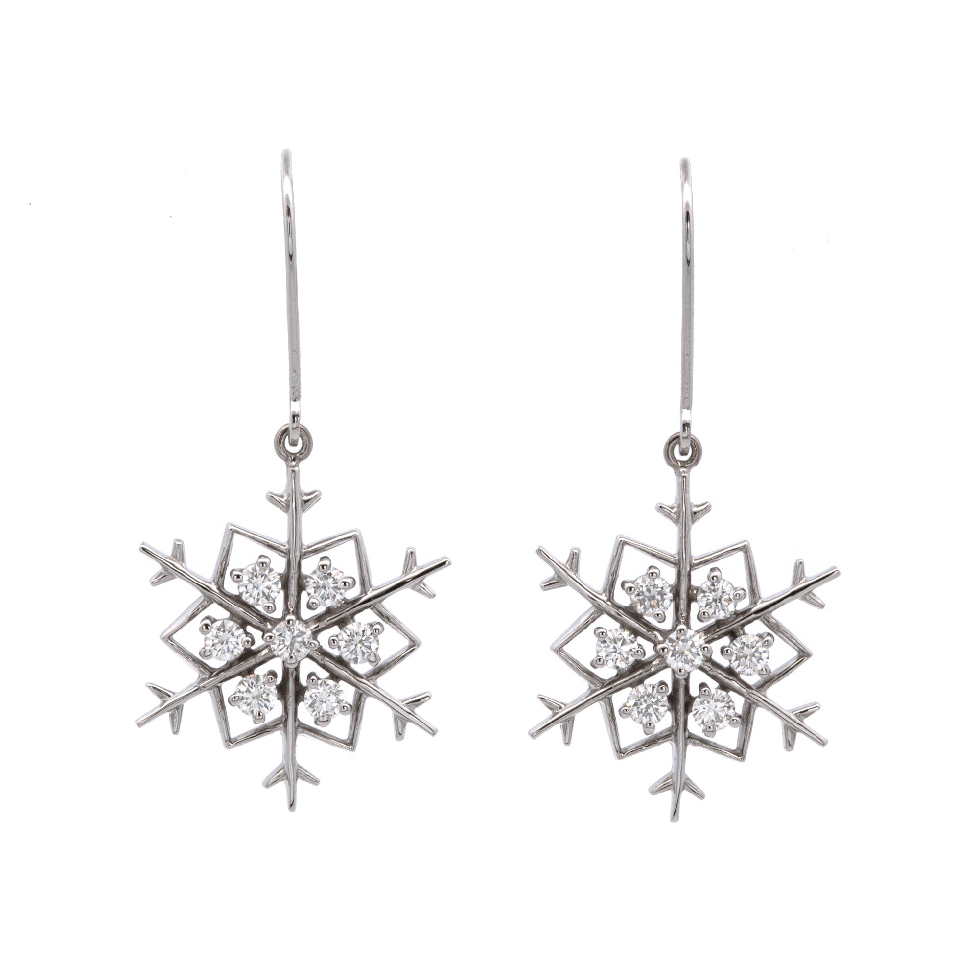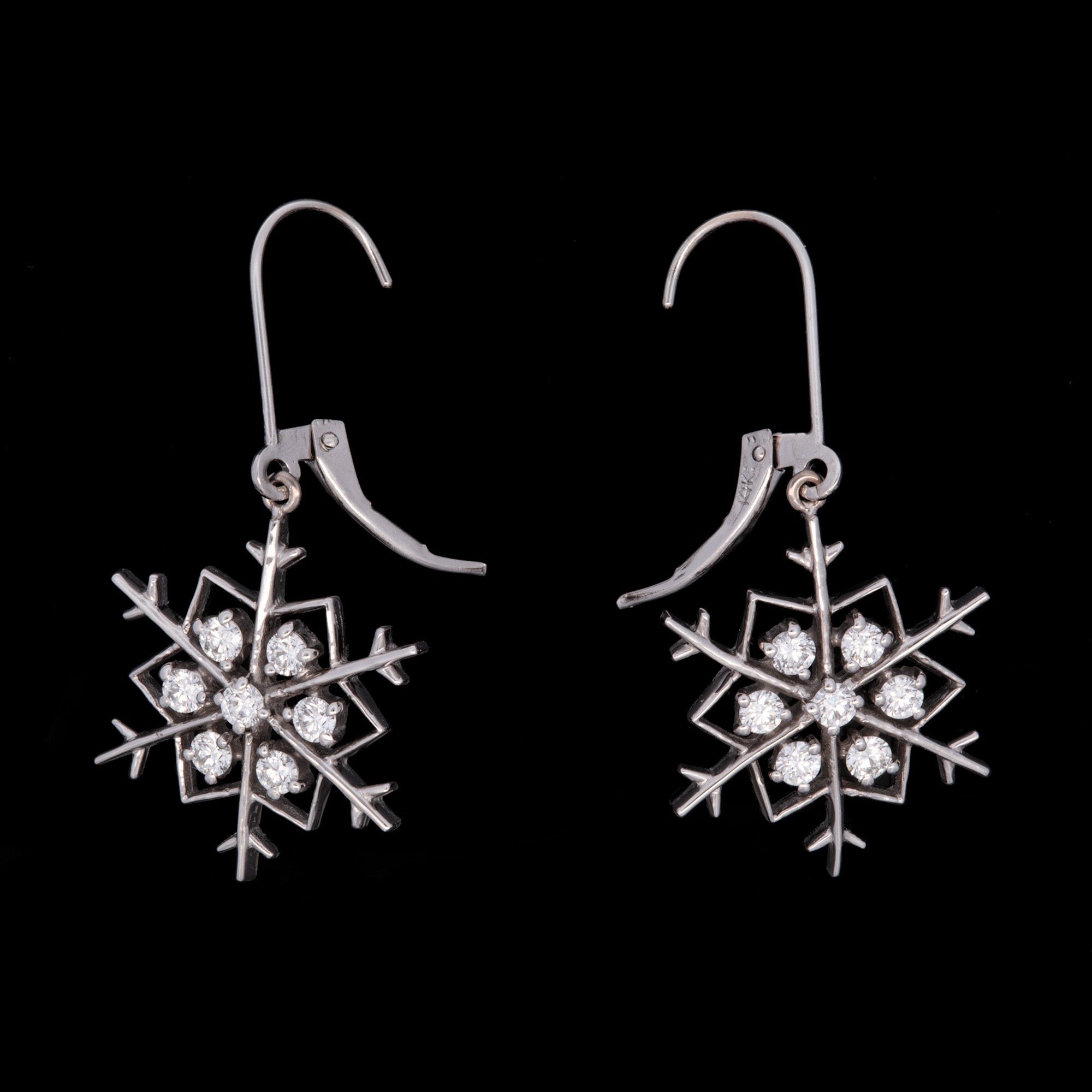 Middlebury Diamond Snowflake Earrings With Leverbacks 14K White Gold