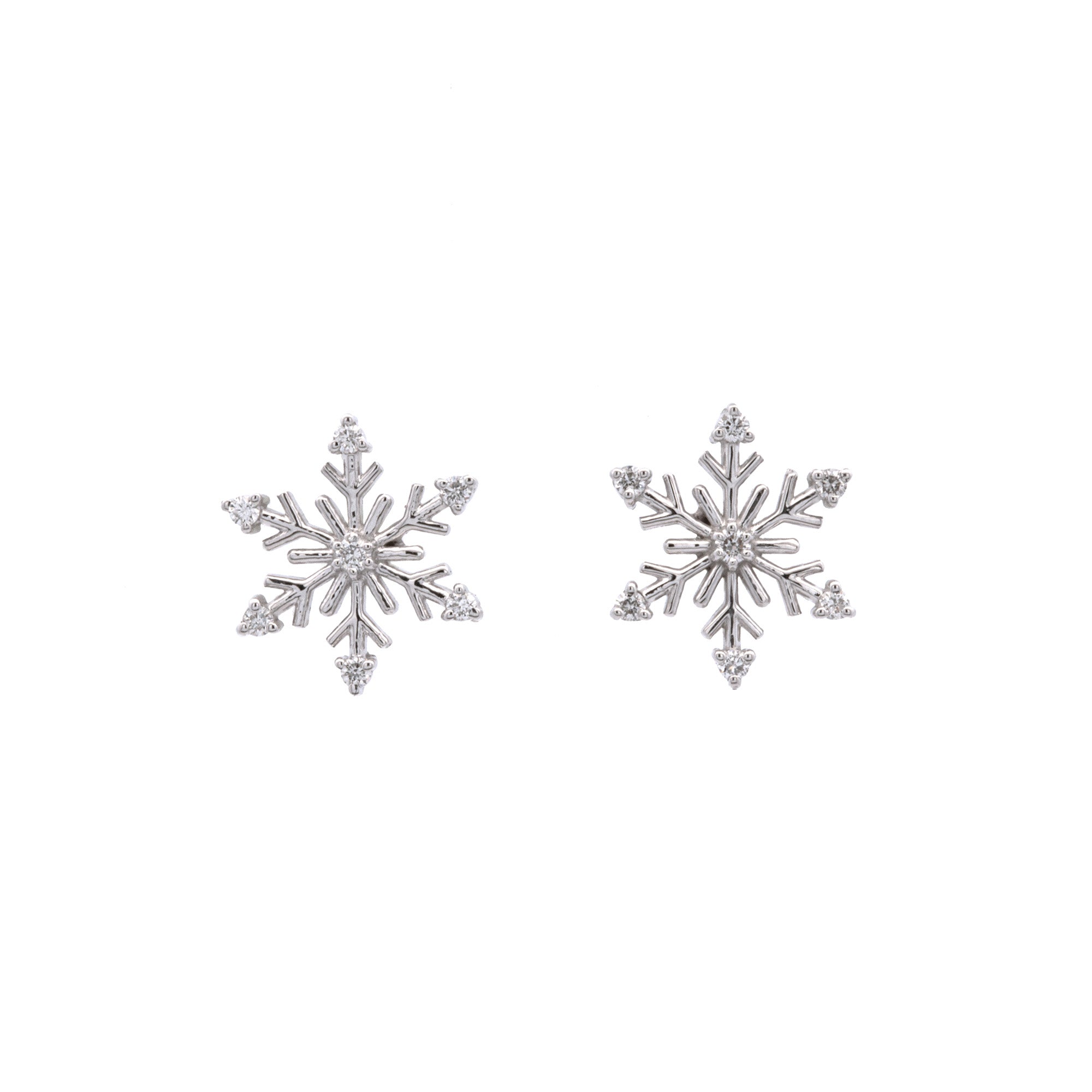 14K White Gold Bristol Diamond Snowflake Stud Earrings. The Diamond Weighs A Total Of 0.14 Carats and Have G-H Color And VS Clarity. Diameter Measures 12mm.