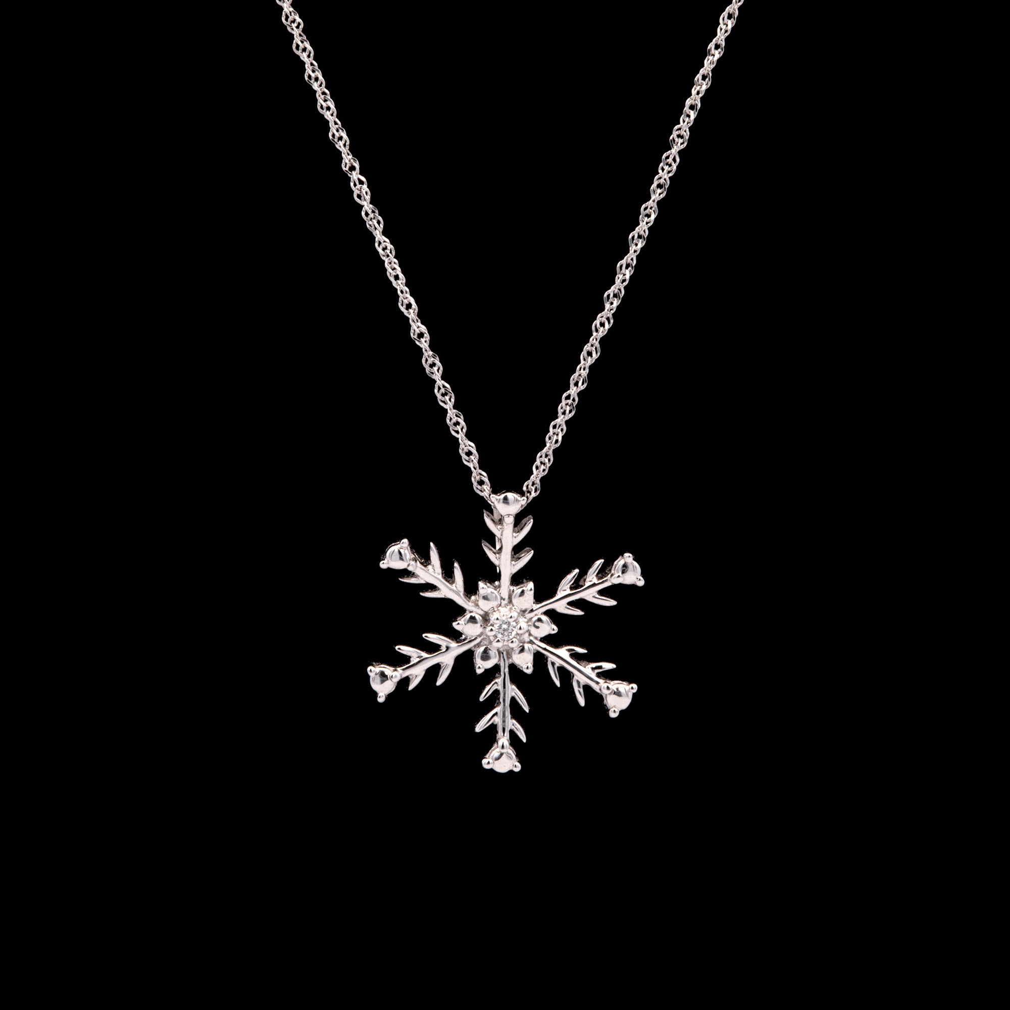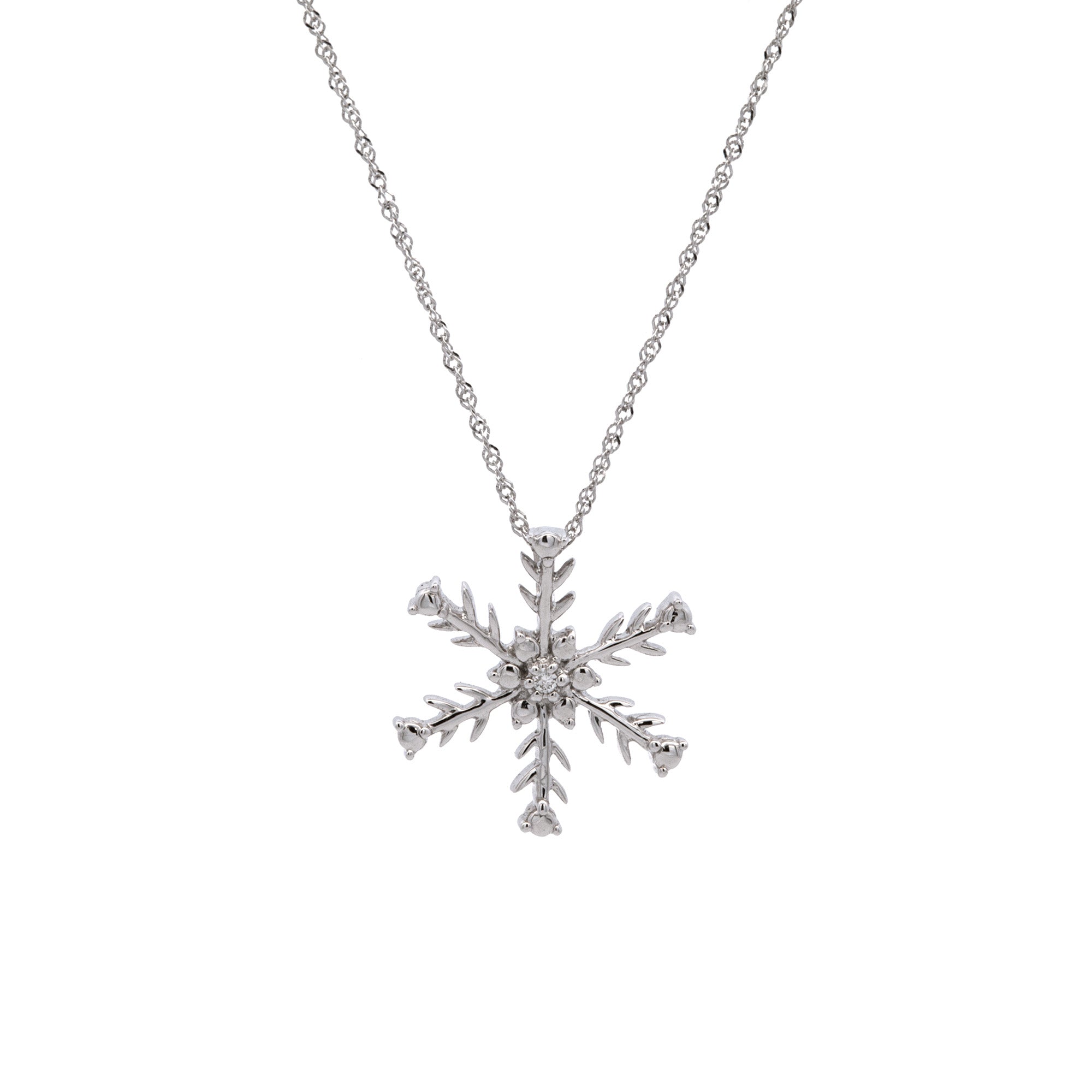 Arlington Diamond Snowflake Pendant With 18" Chain, 14K White Gold