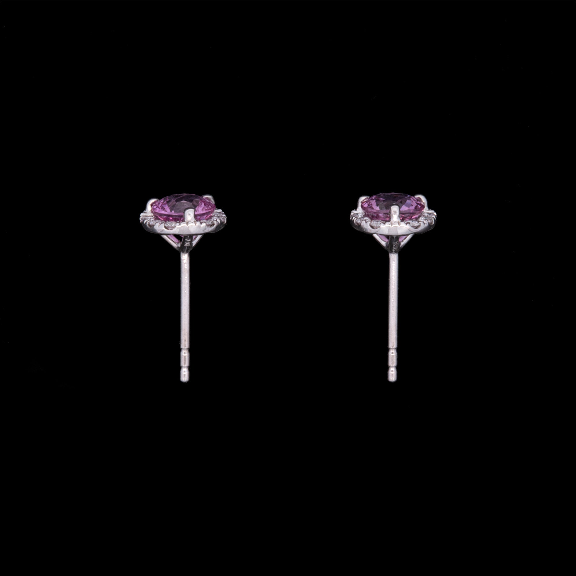 14K White Gold 1.30ctw Pink Sapphire And Diamond Halo Stud Earrings. Sapphires Weigh A Total Of 1.30 Carats. Diamonds Weigh A Total Of 0.73 Carats.