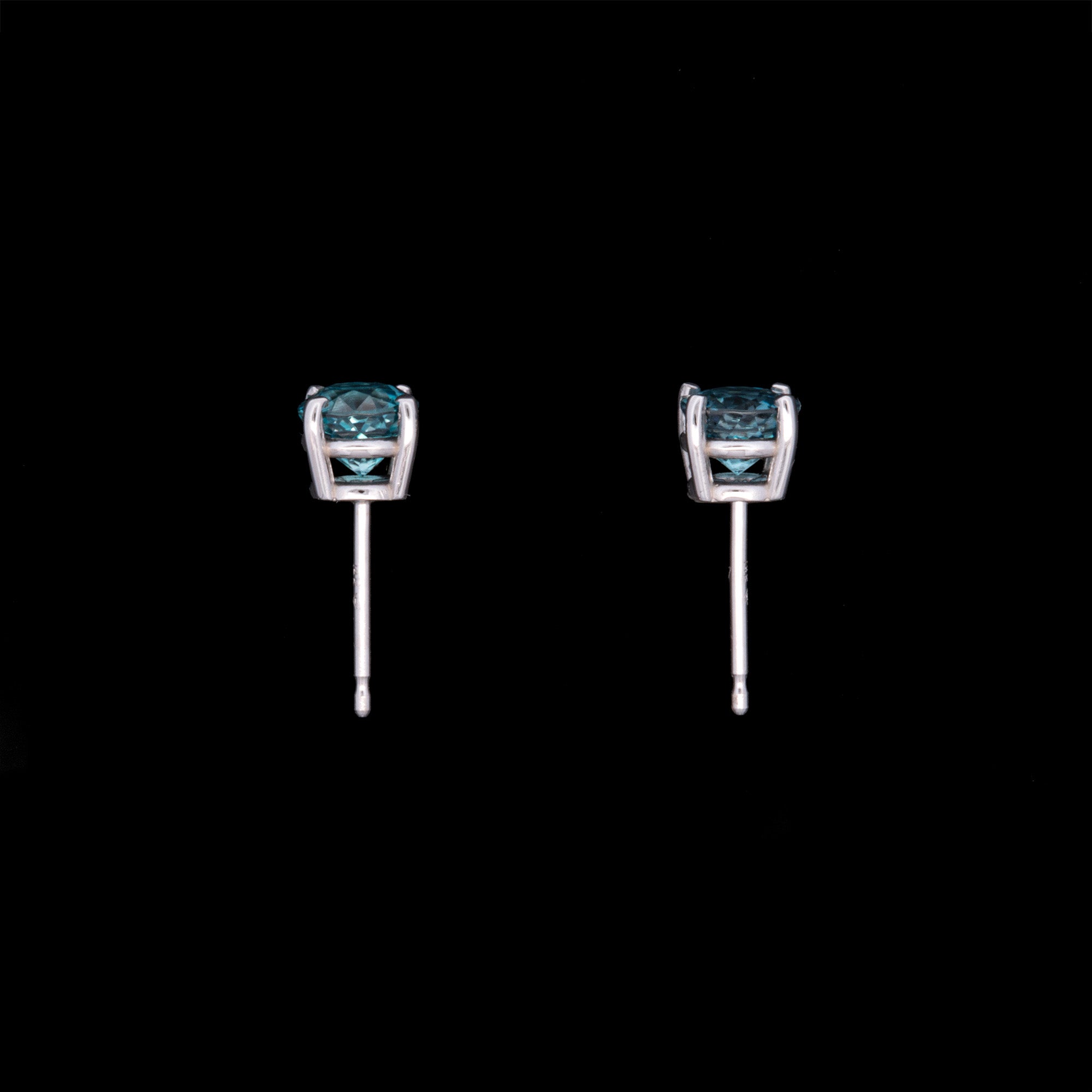 14K White Gold 1.79ctw Blue Zircon Stud Earrings. Zircon Weigh A Total Of 1.79 Carats.