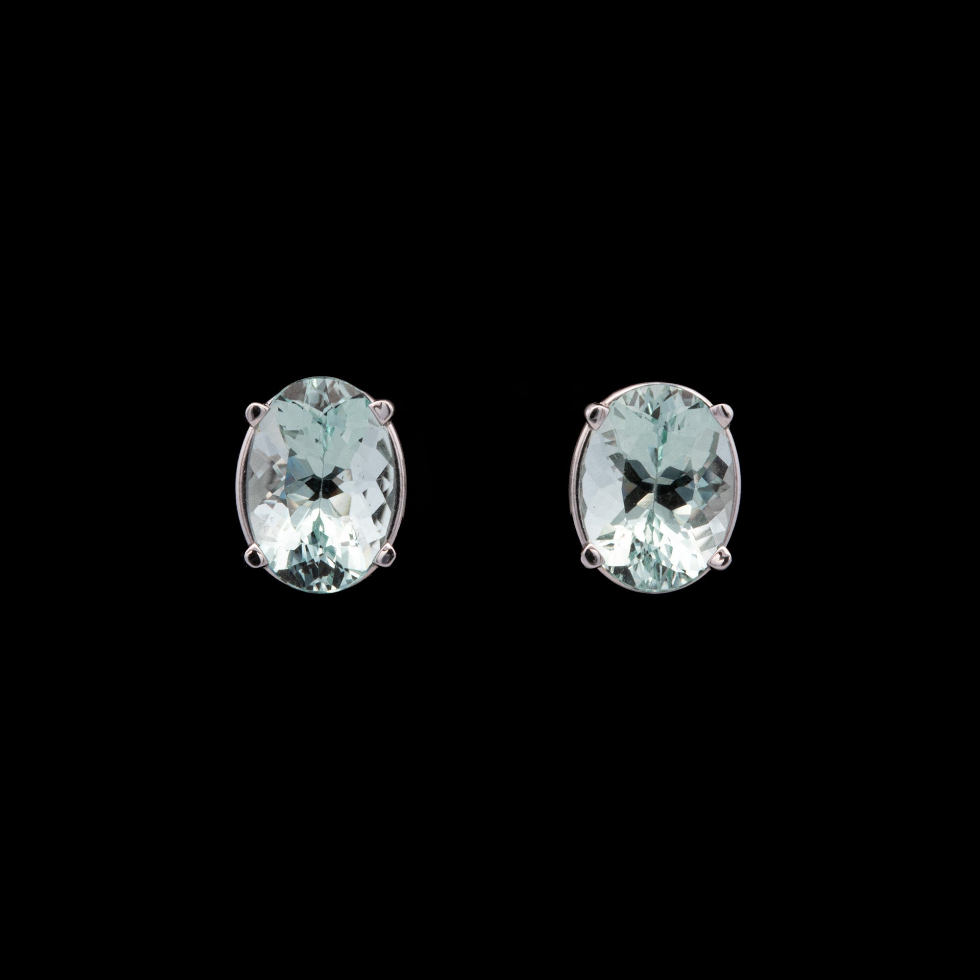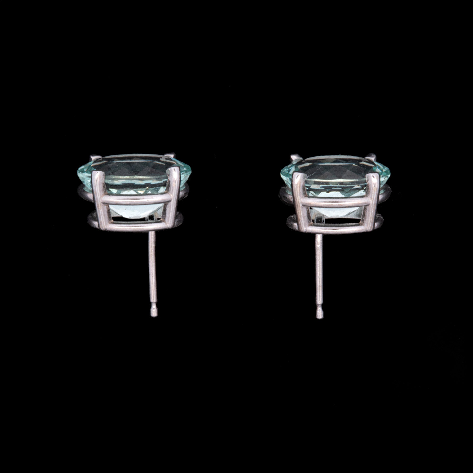 14K White Gold 4.87ctw Oval Greenish Blue Beryl Stud Earrings. Beryl Stones Measure 10.5mm x 7.5mm And Weigh A Total Of 4.87 Carats.
