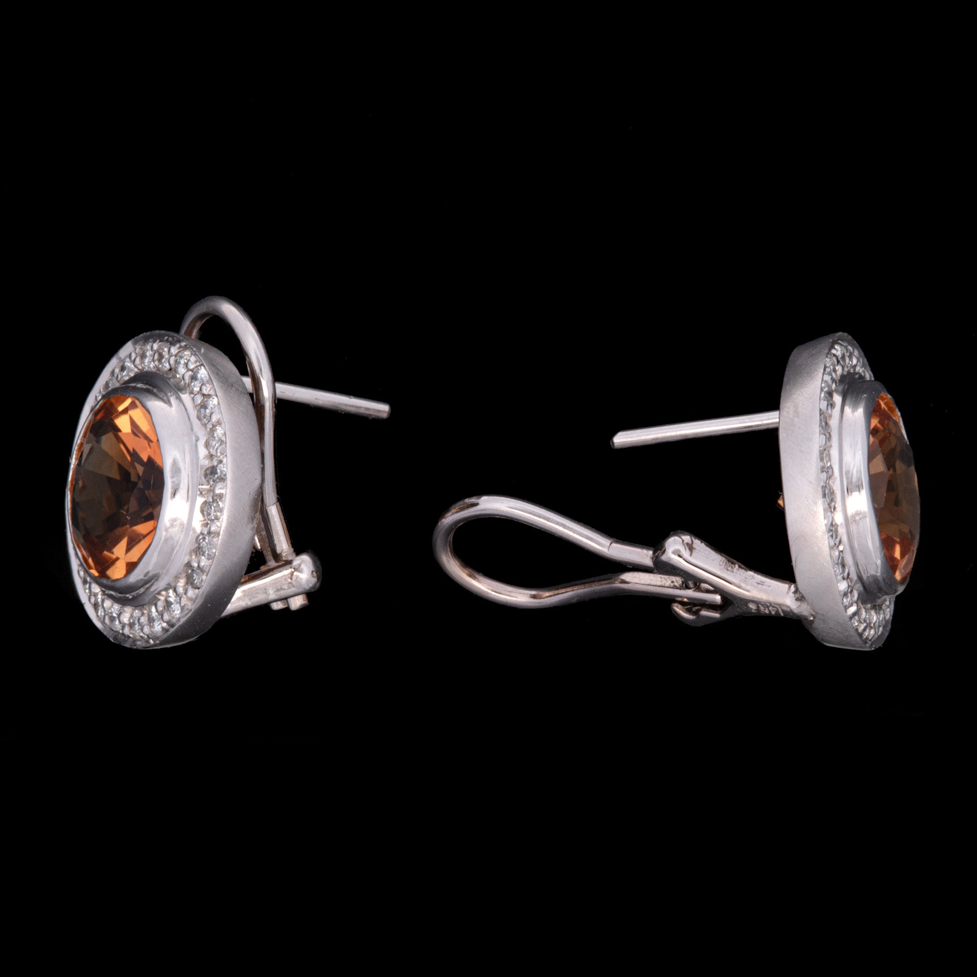 14K White Gold Bezel Set Citrine And Diamond Halo Earrings Weigh Post And Omega Backs