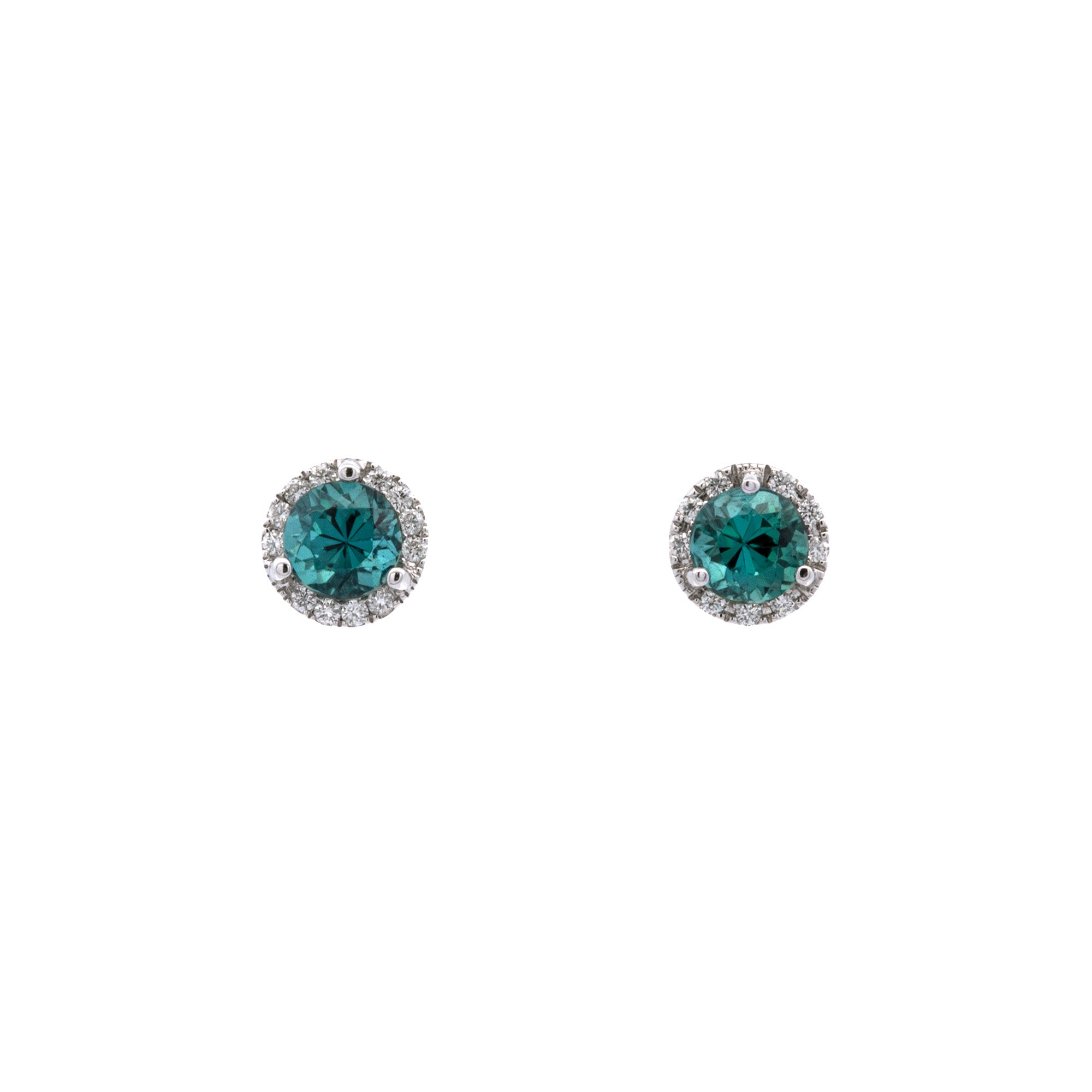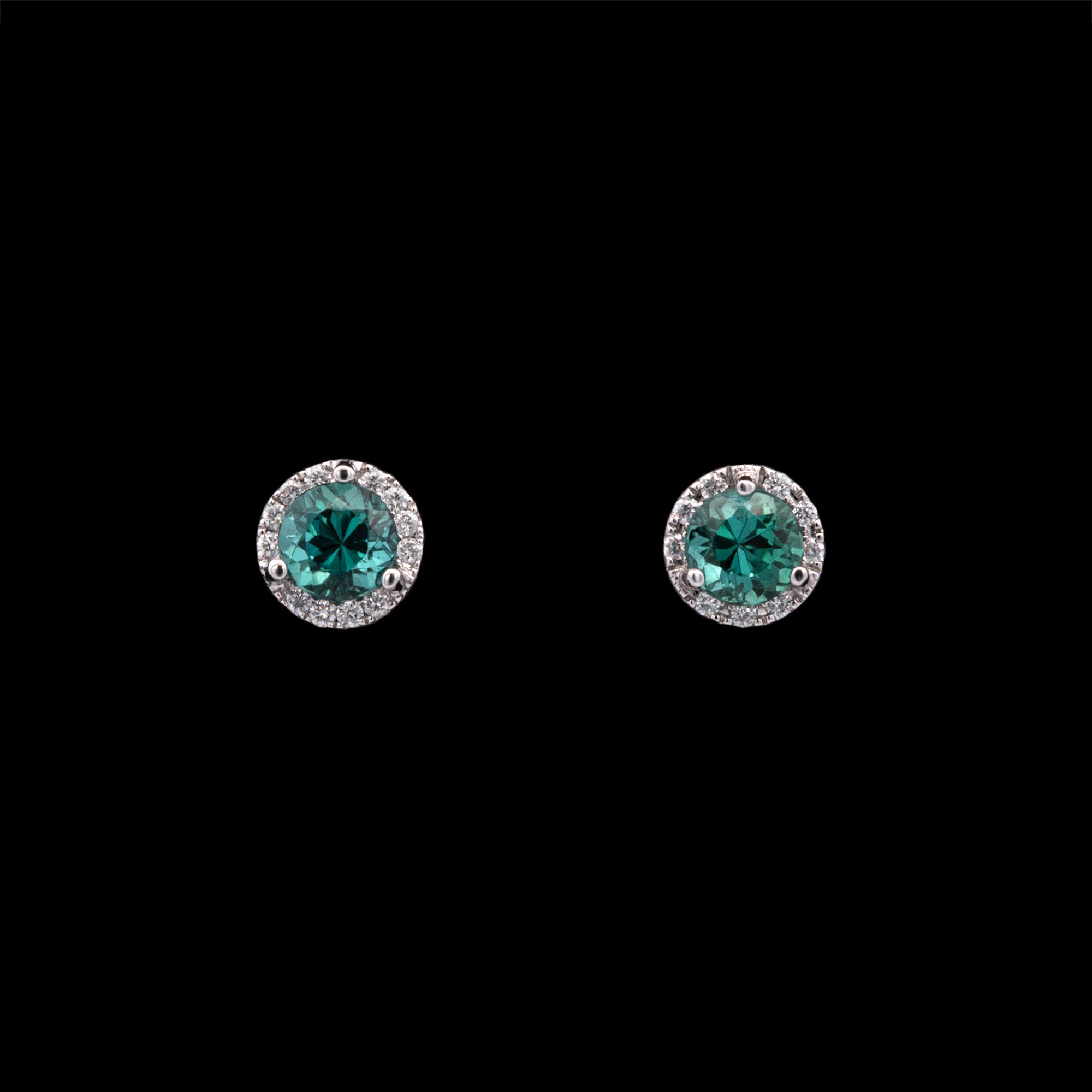 14K White Gold Green Tourmaline Stud Earrings With Diamond Halo