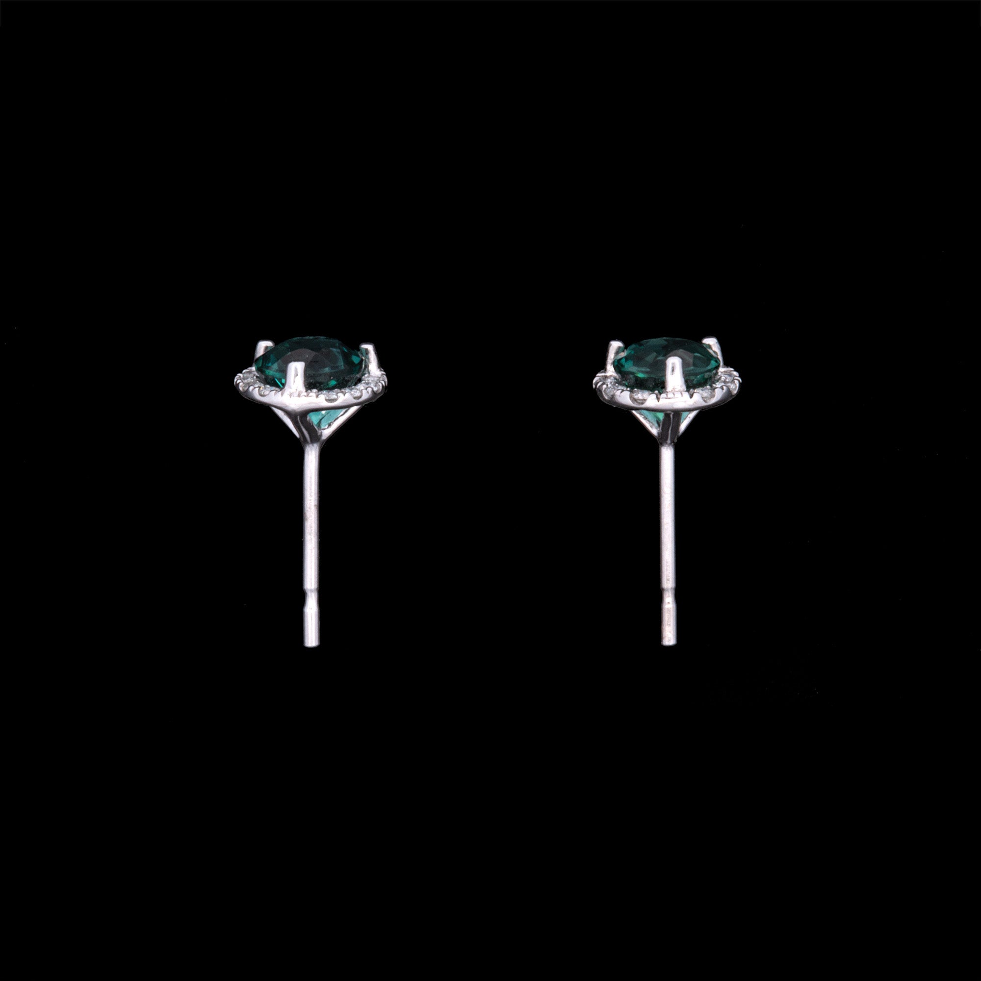 14K White Gold Green Tourmaline Stud Earrings With Diamond Halo. Tourmalines Weigh A Total Of 1.21 Carats. Diamonds Weigh A Total Of 0.11 Carats.