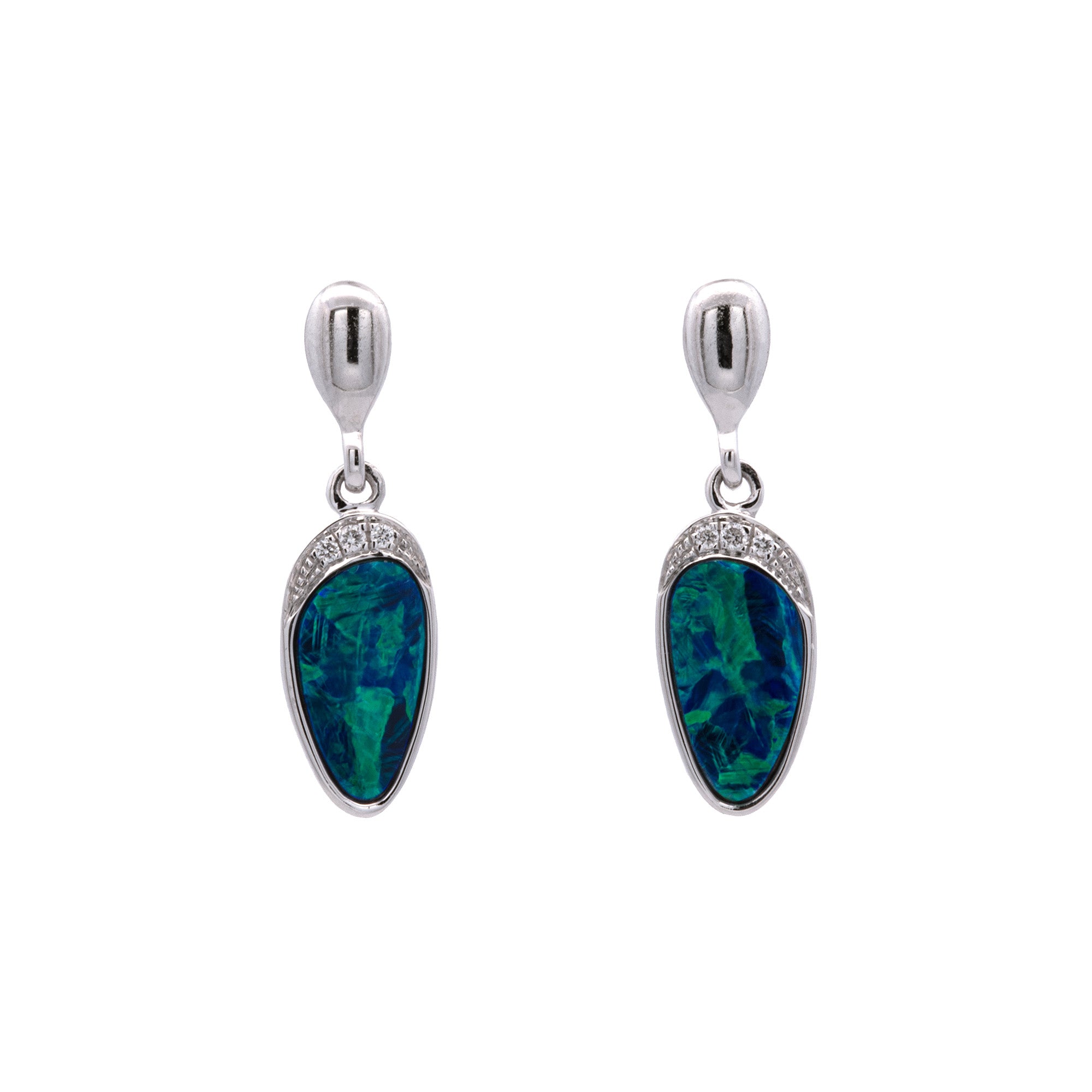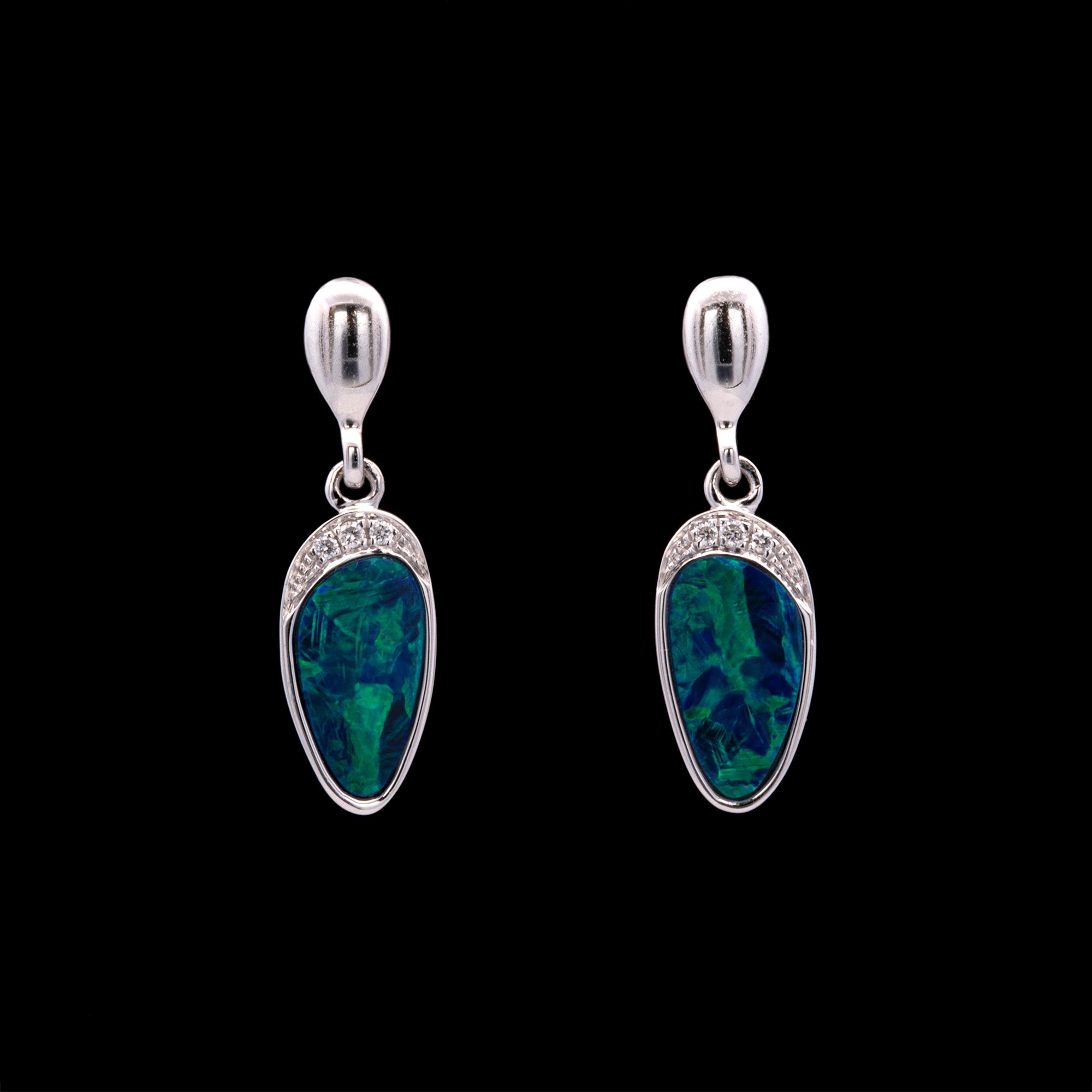 14K White Gold Opal And Pave Diamond Drop Earrings