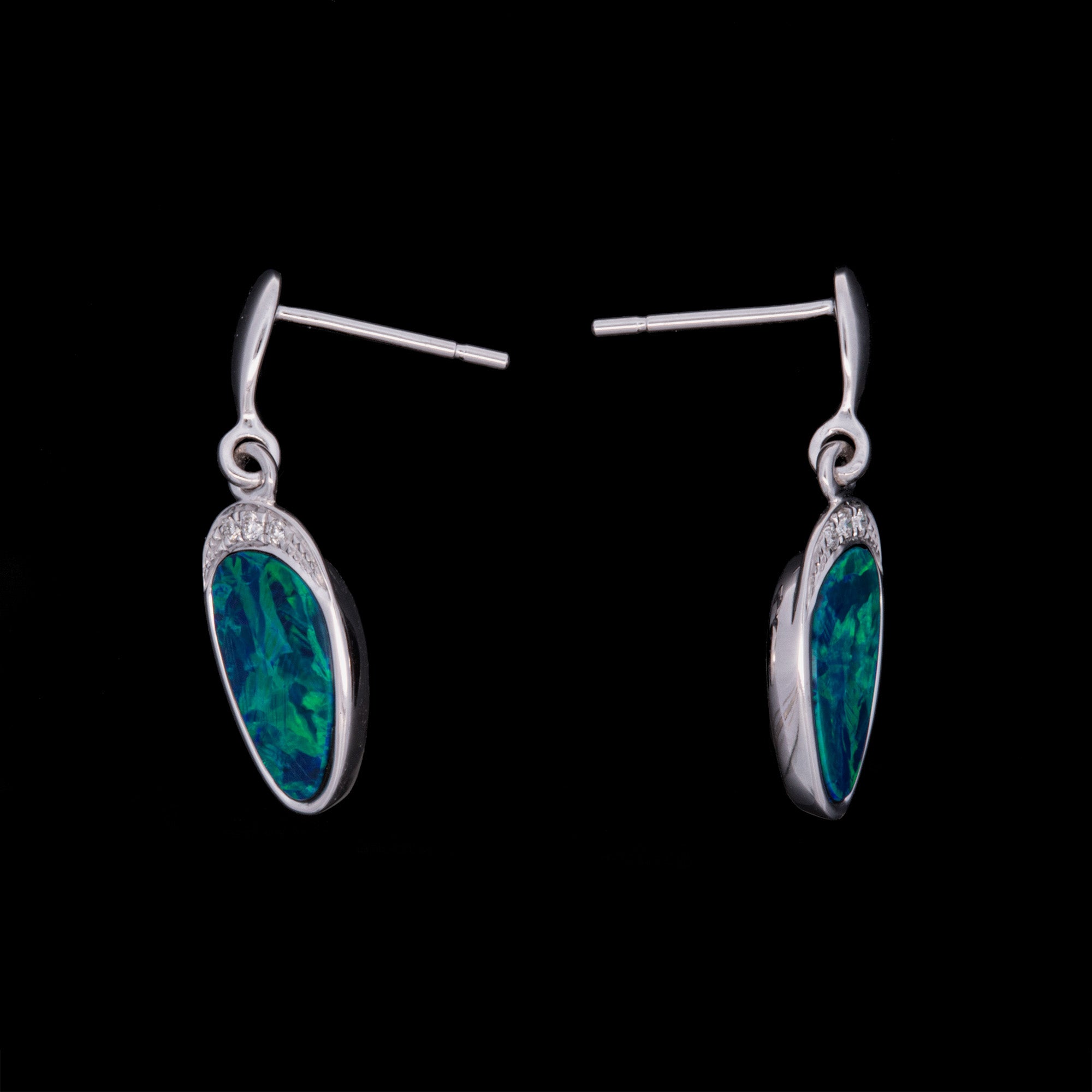 14K White Gold Opal And Pave Diamond Drop Earrings.