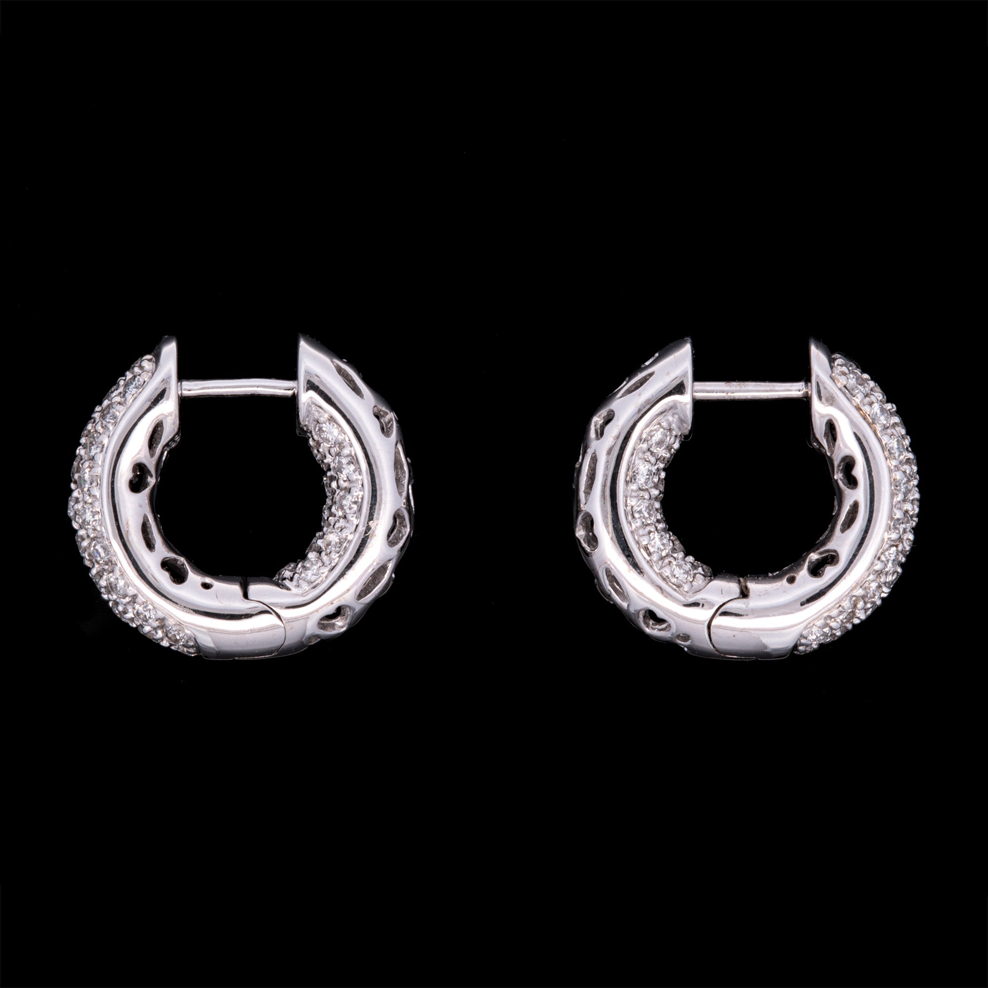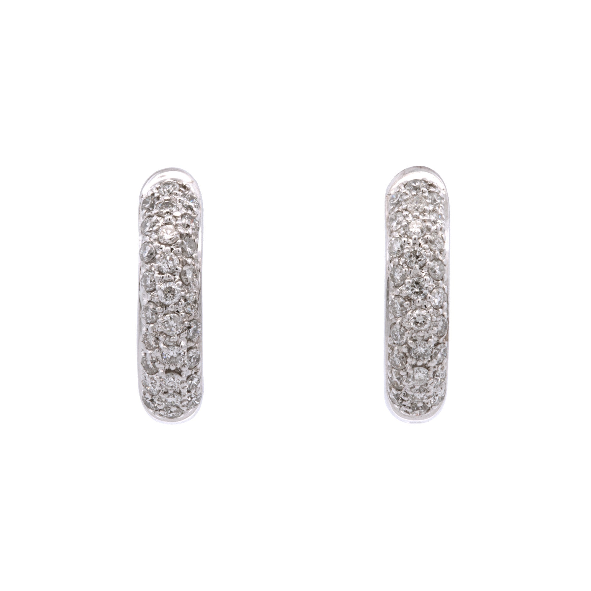 14K White Gold Pave Diamond Huggie Earrings. Eighty-Six Round Diamonds Weigh A Total Of 1.35 Carats And Have G-H Color, SI3.