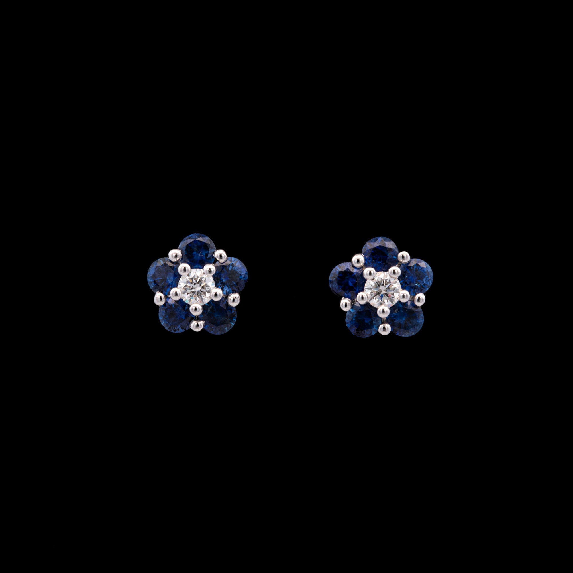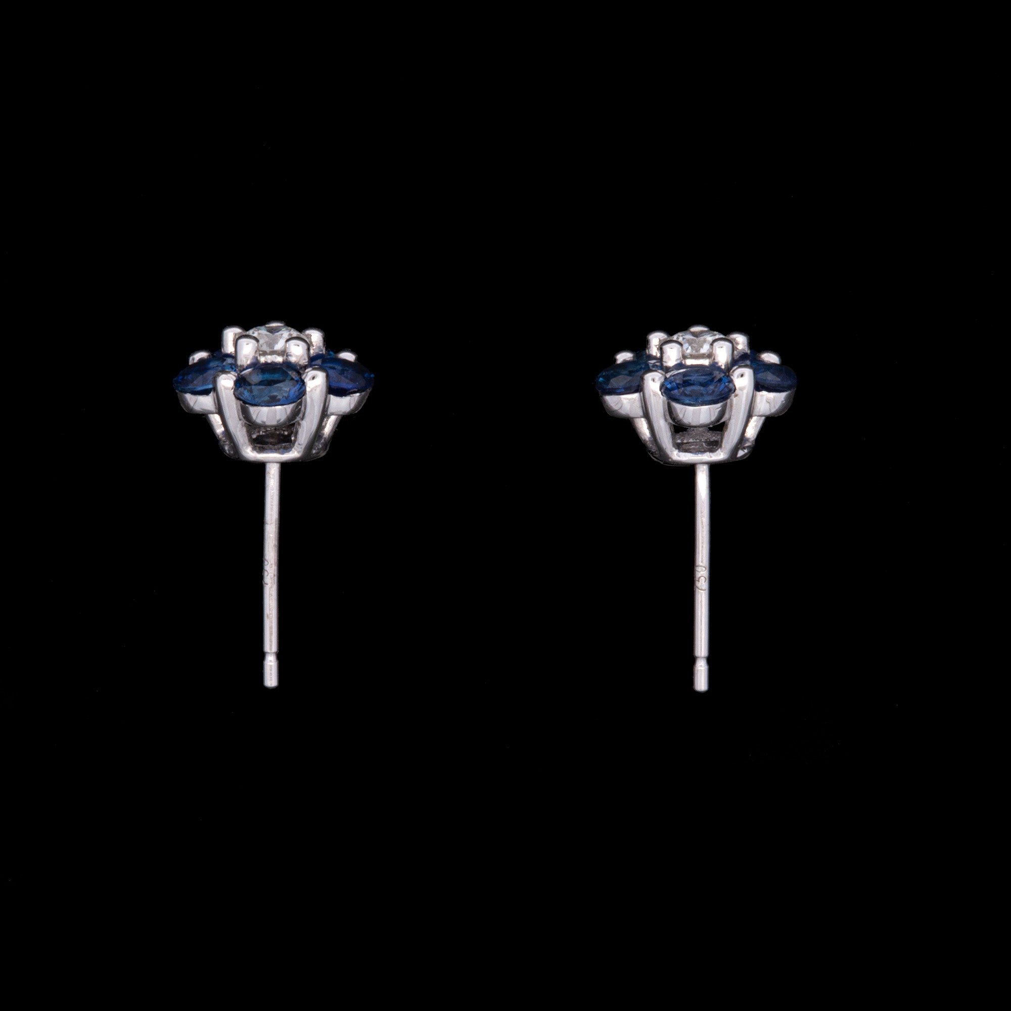 14K White Gold Sapphire And Diamond Flower Stud Earrings