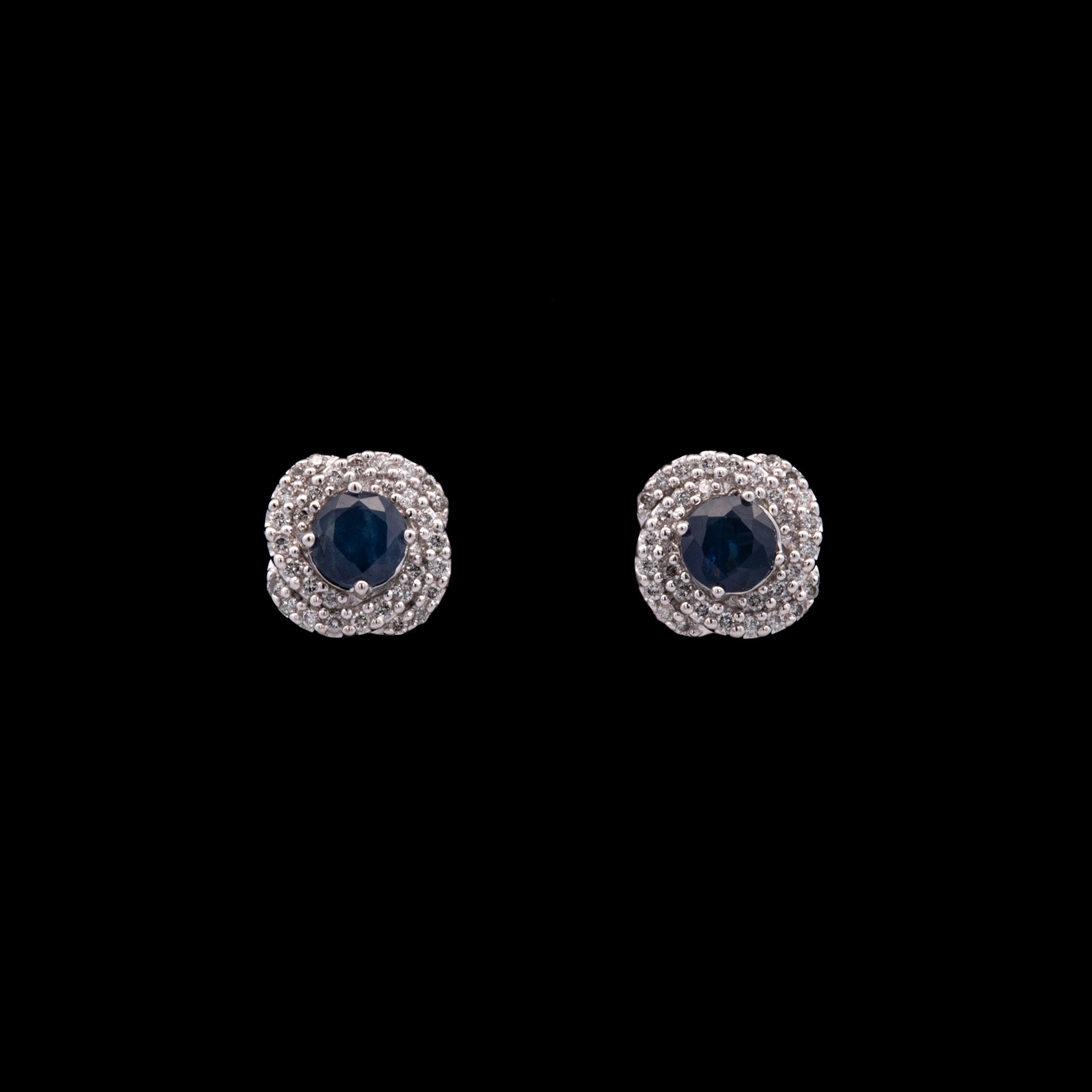 14K White Gold Sapphire And Diamond Halo Stud Earrings