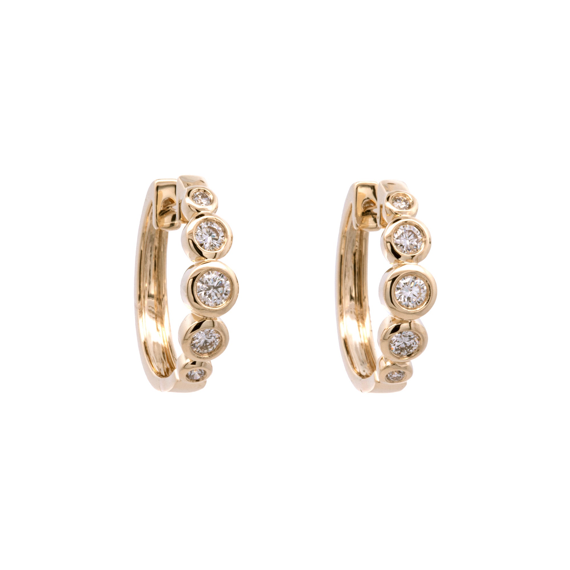 14K Yellow Gold Diamond Bezel Set Hoop Earrings