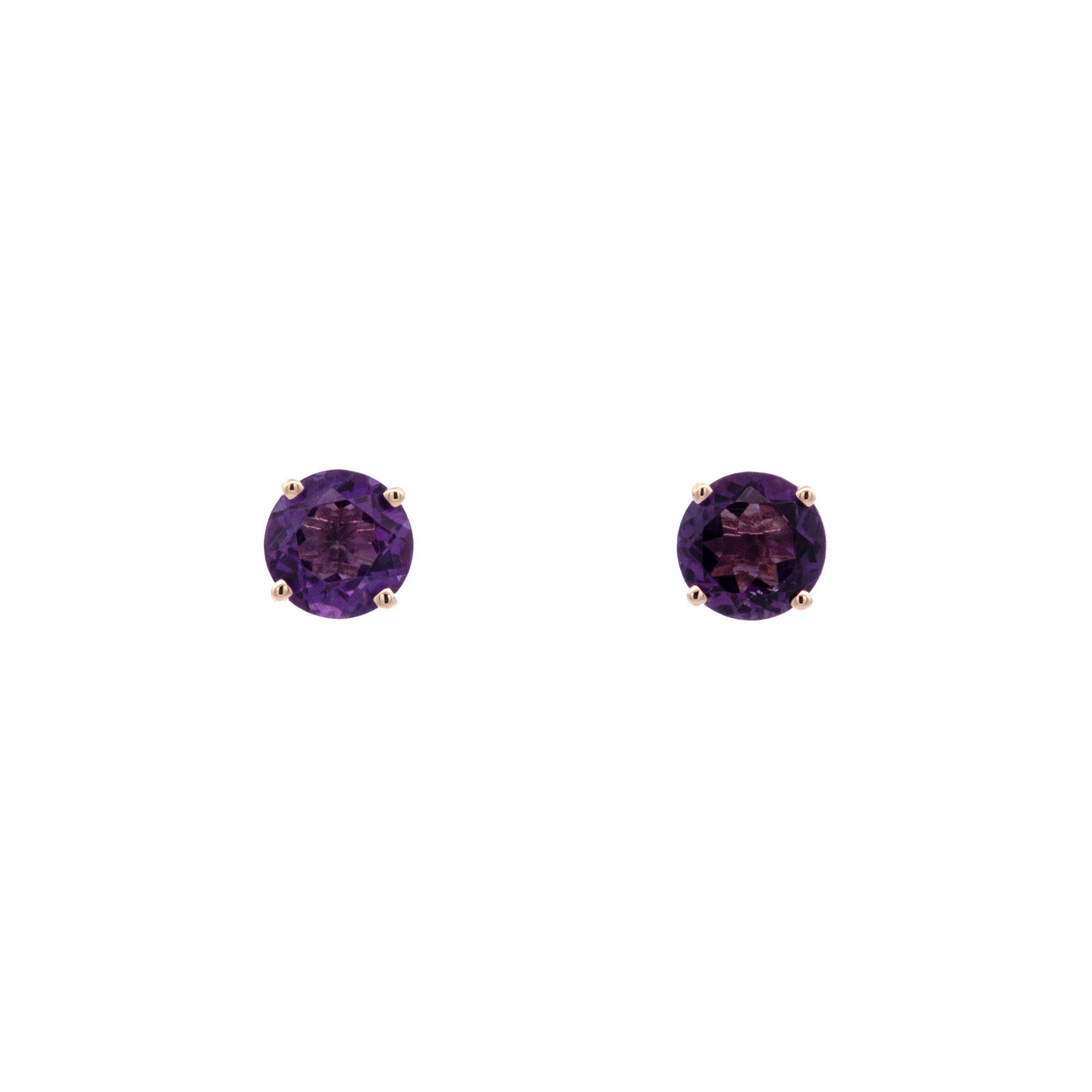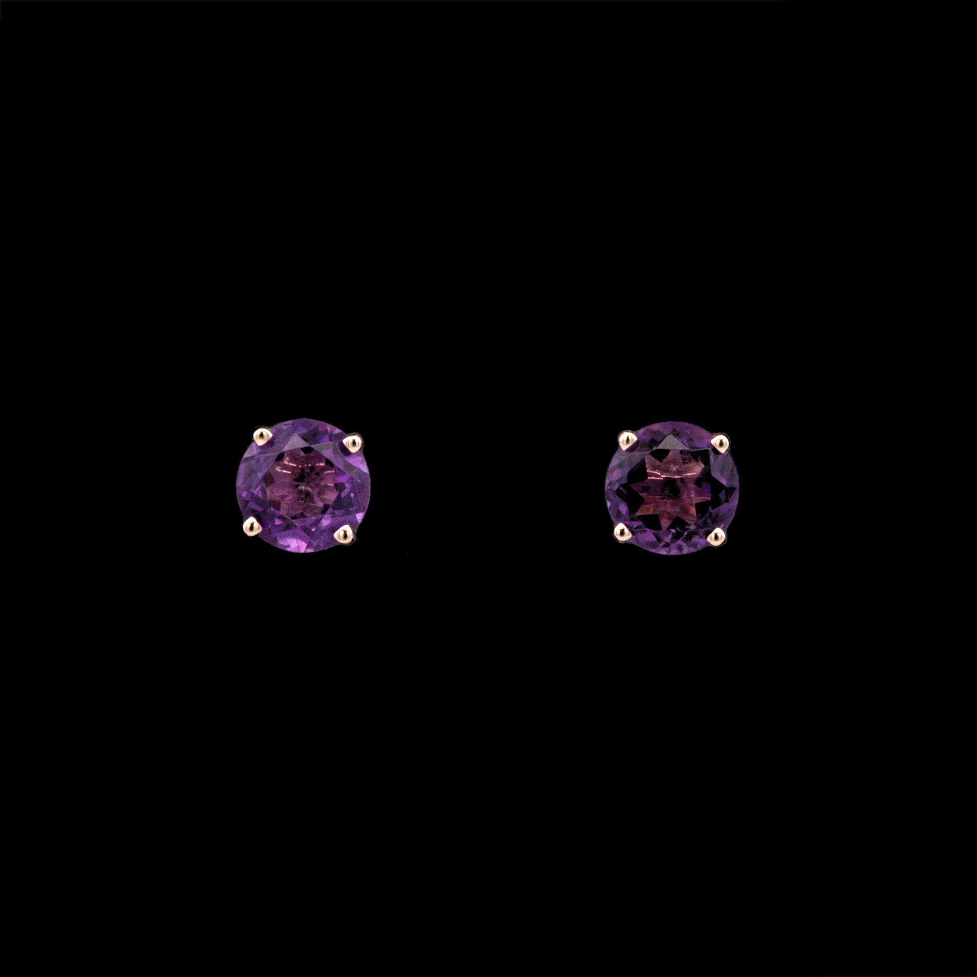 14K Yellow Gold Round Amethyst Stud Earrings. Amethyst Measure 6mm Each.