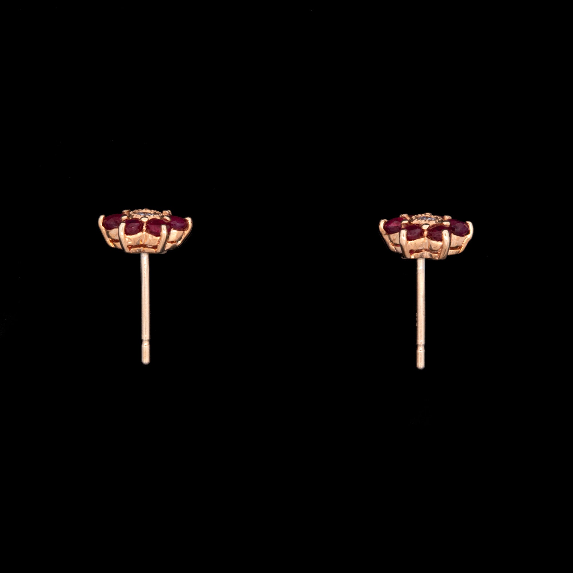 14K Yellow Gold Ruby And Diamond Flower Stud Earrings