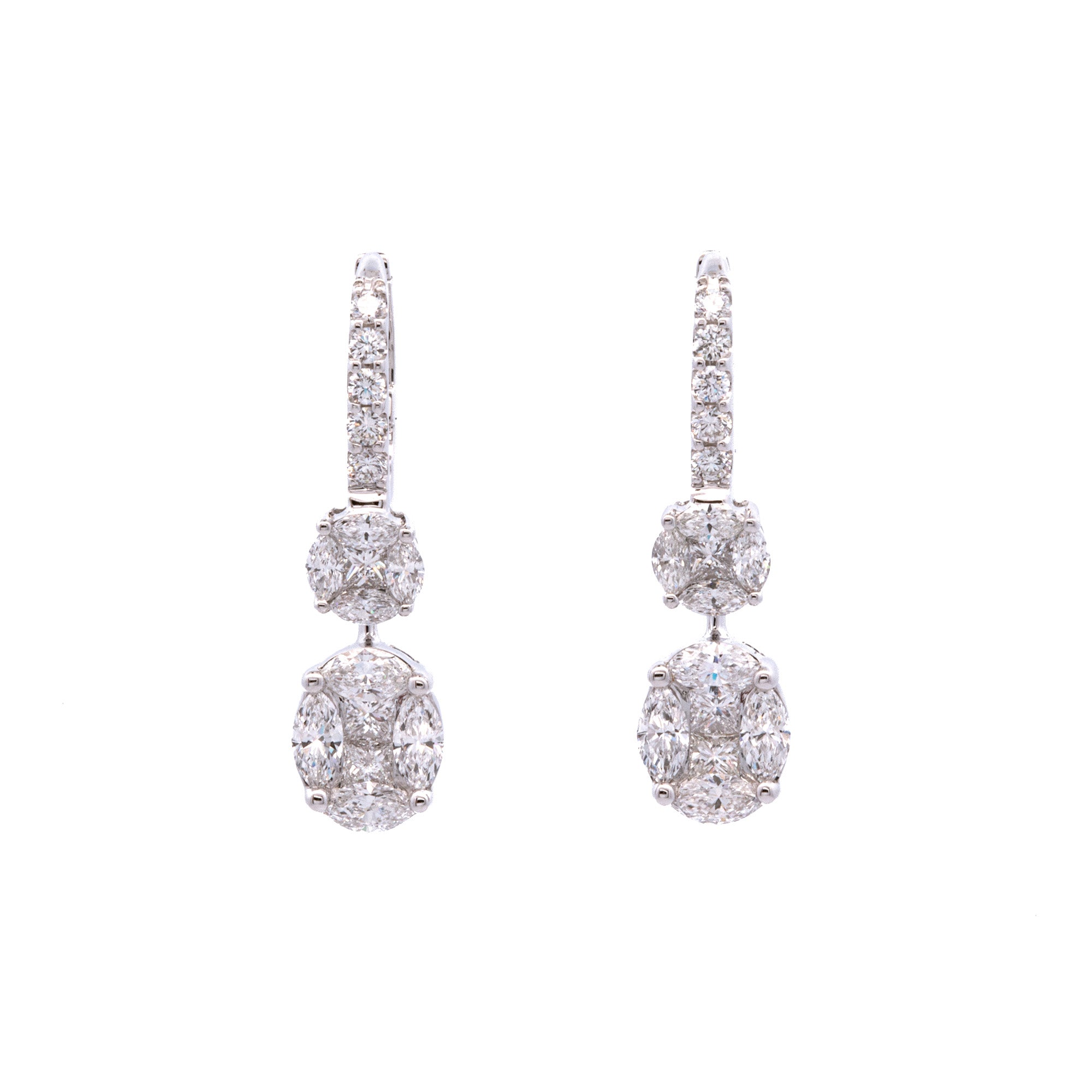 18K White Gold Hanging Illusion Set Diamond Earrings