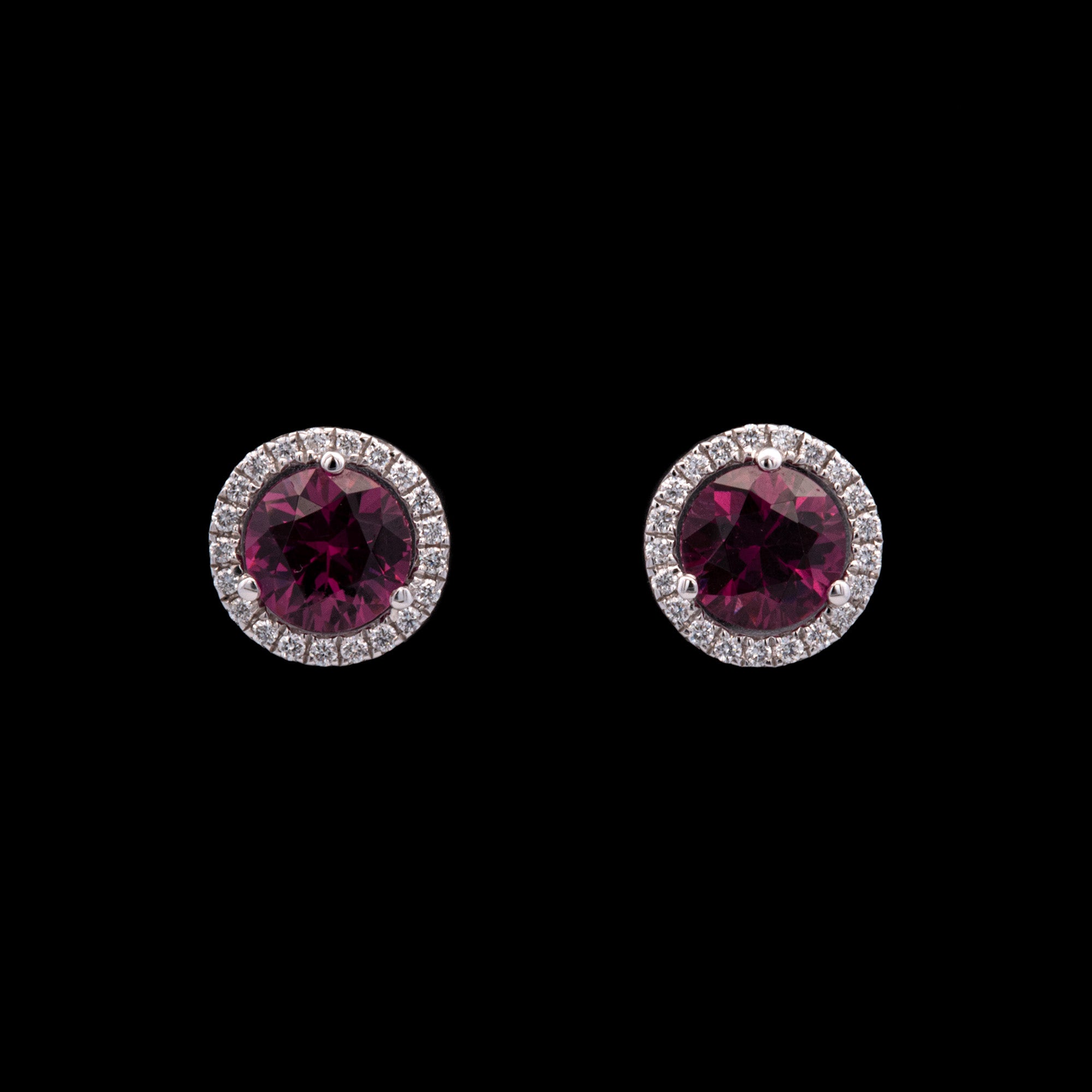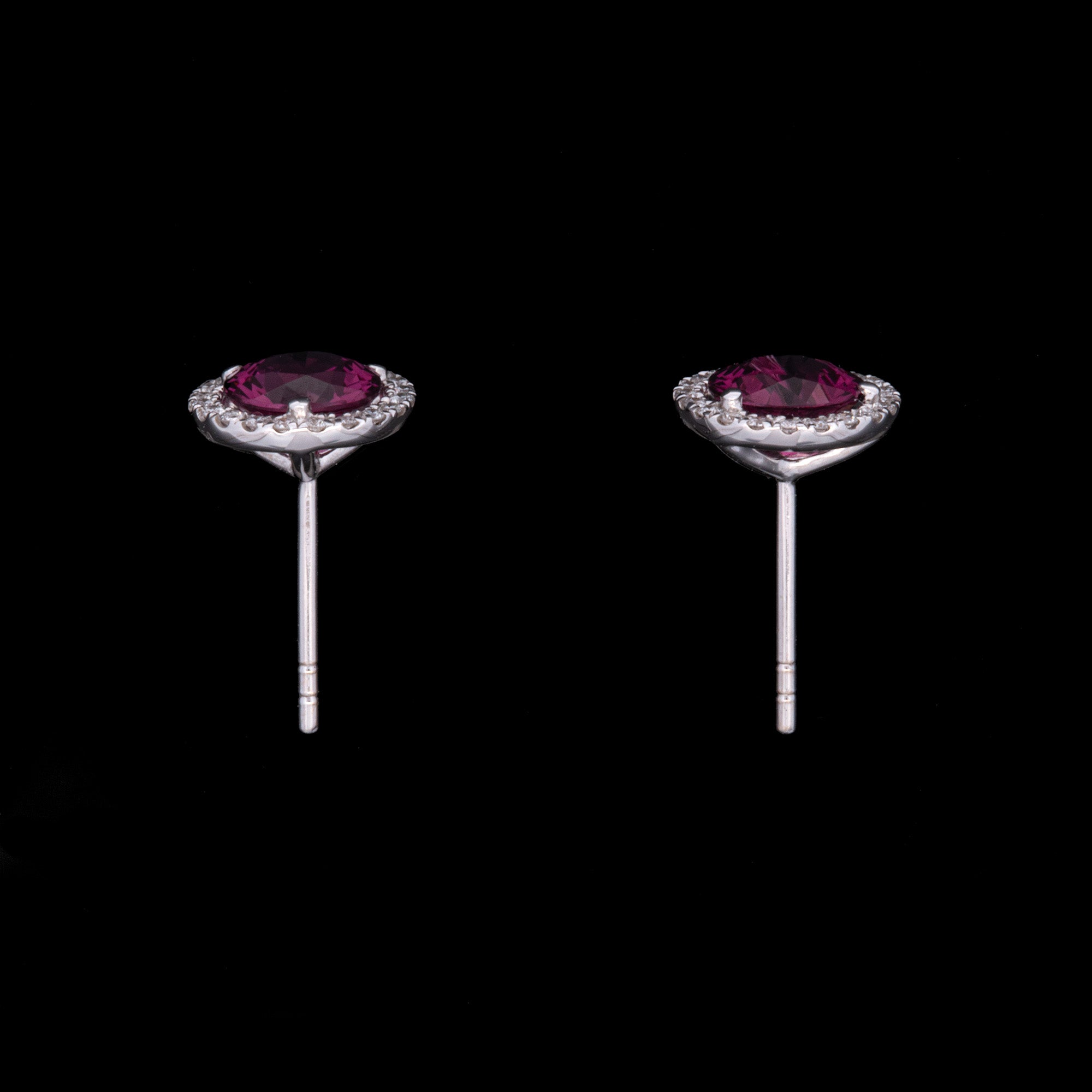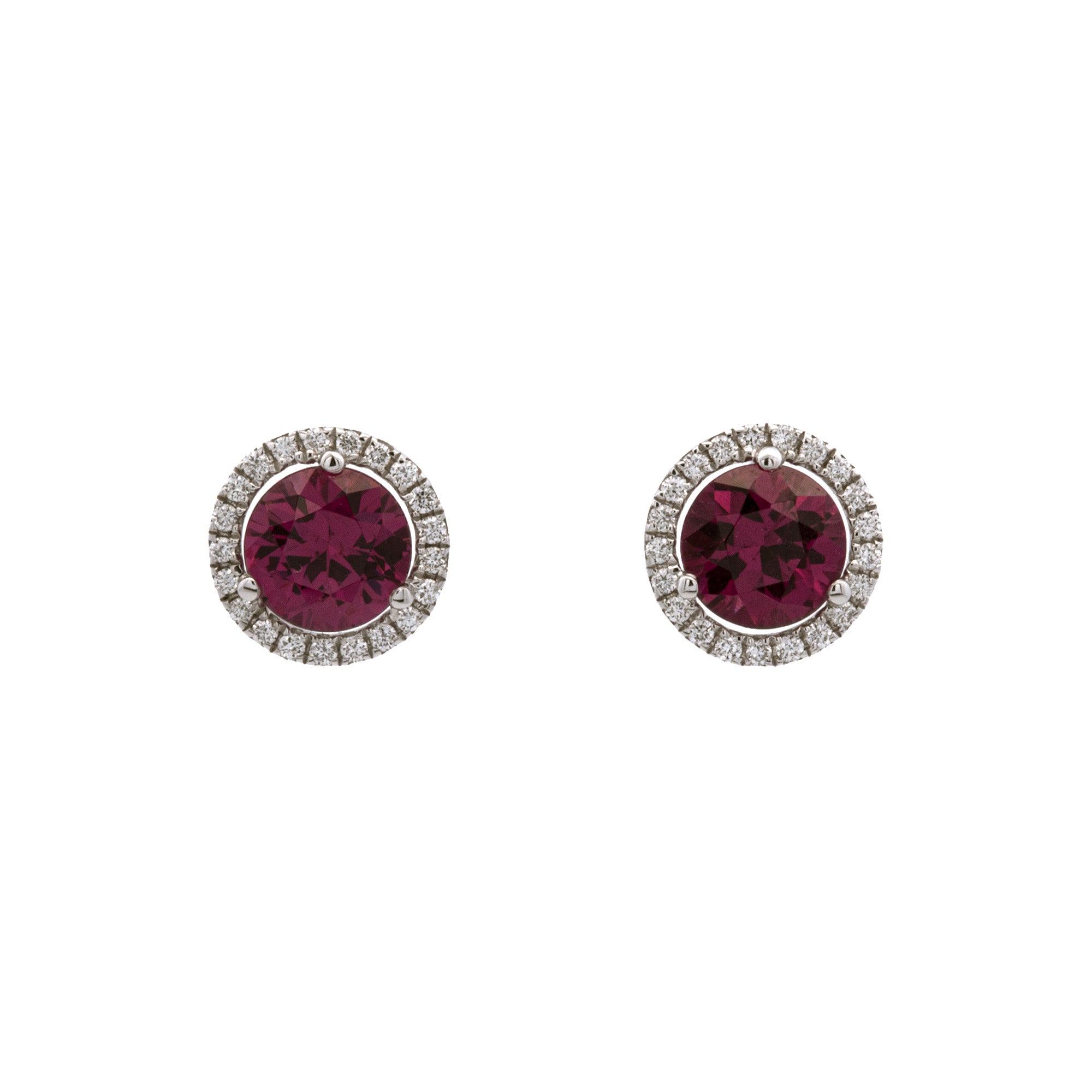 18K White Gold Rholdolite Garnet And Diamond Halo Stud Earrings