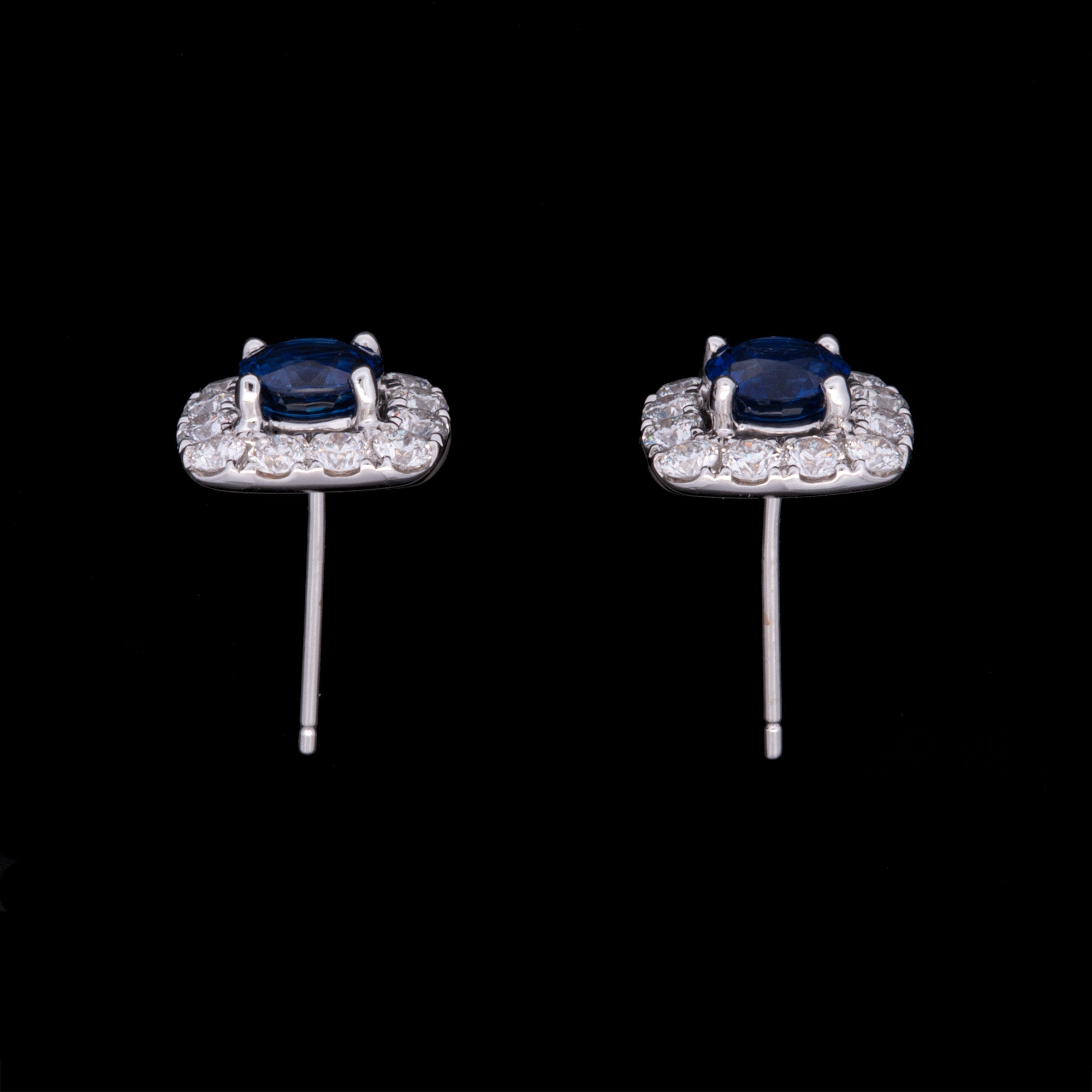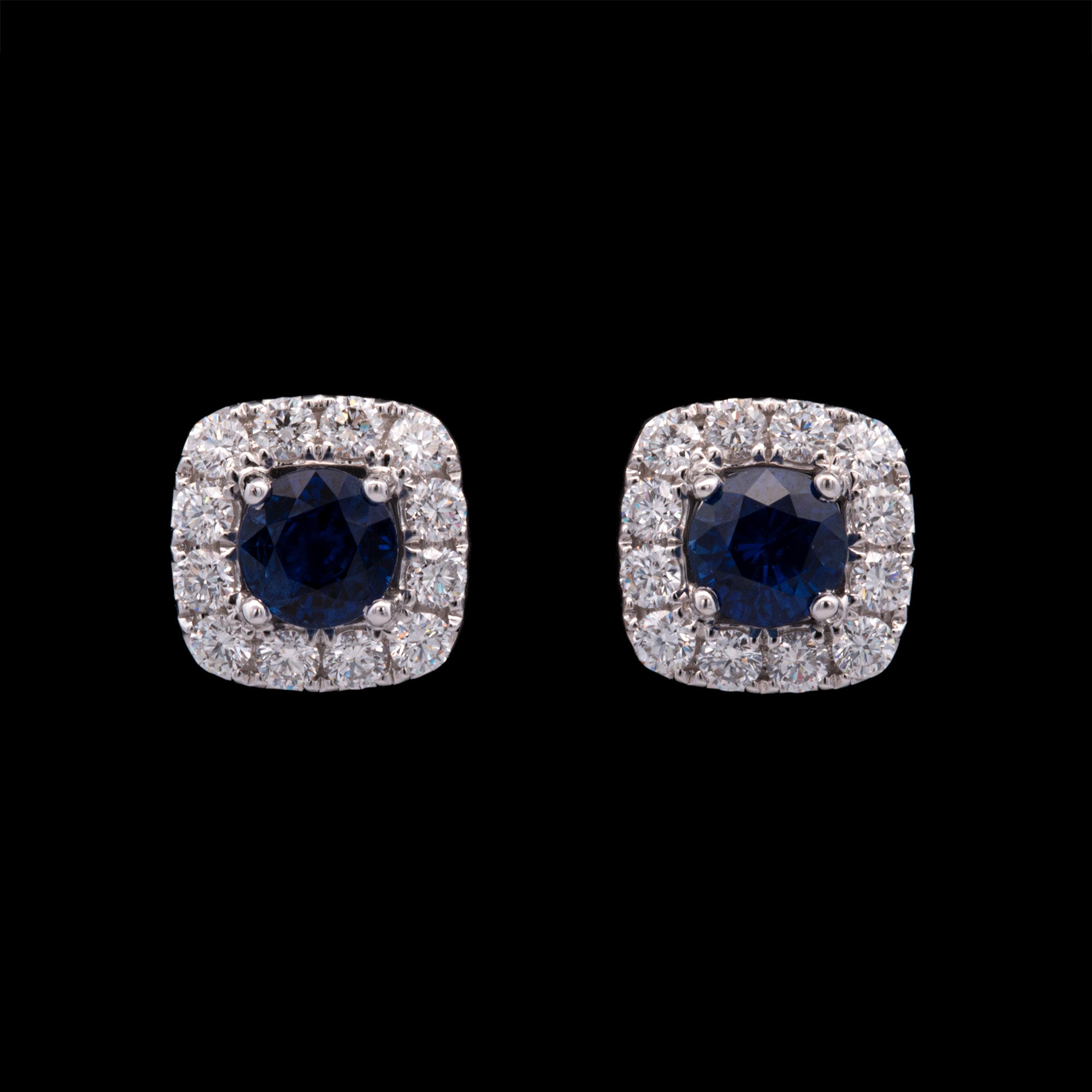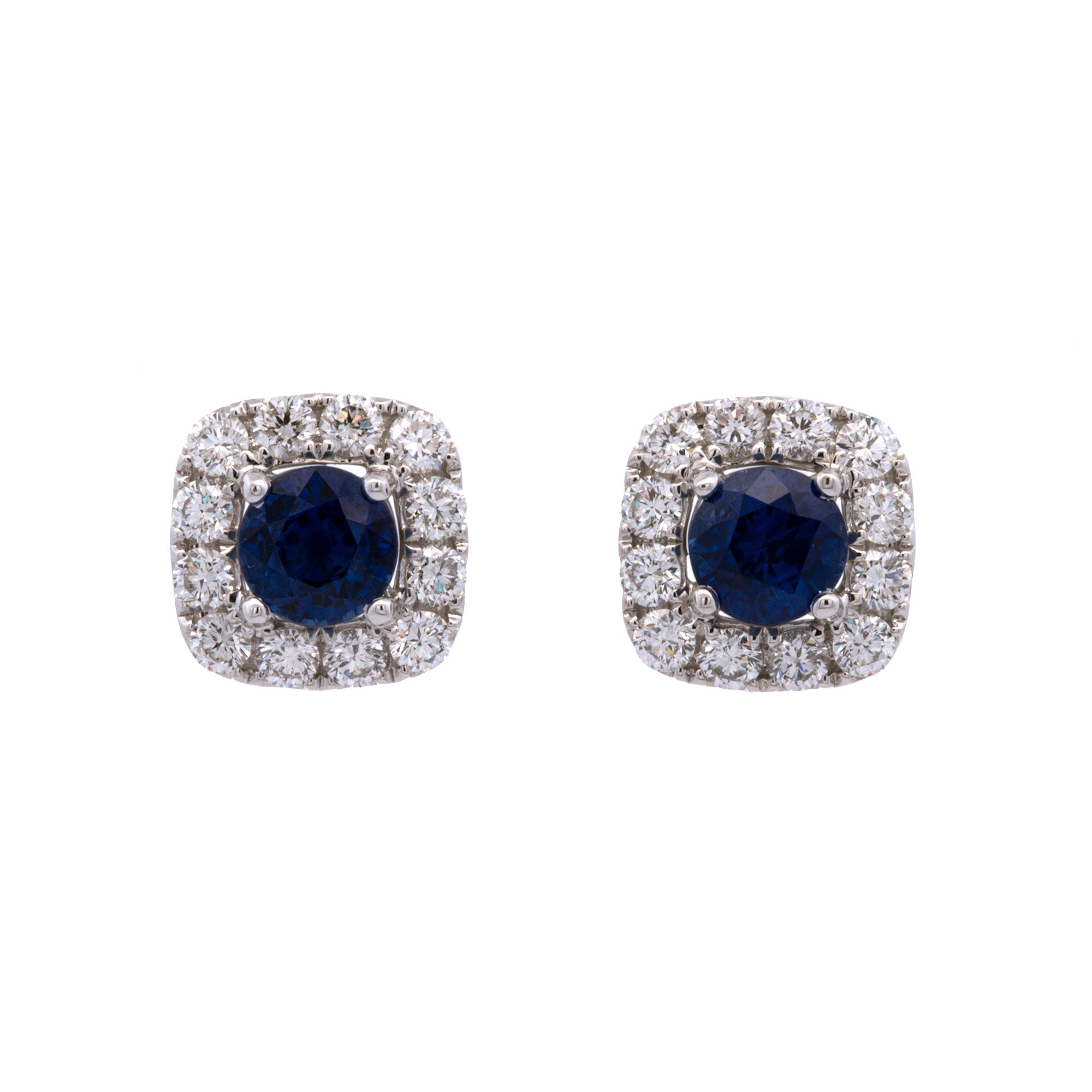 18K White Gold Sapphire And Diamond Halo Stud Earrings