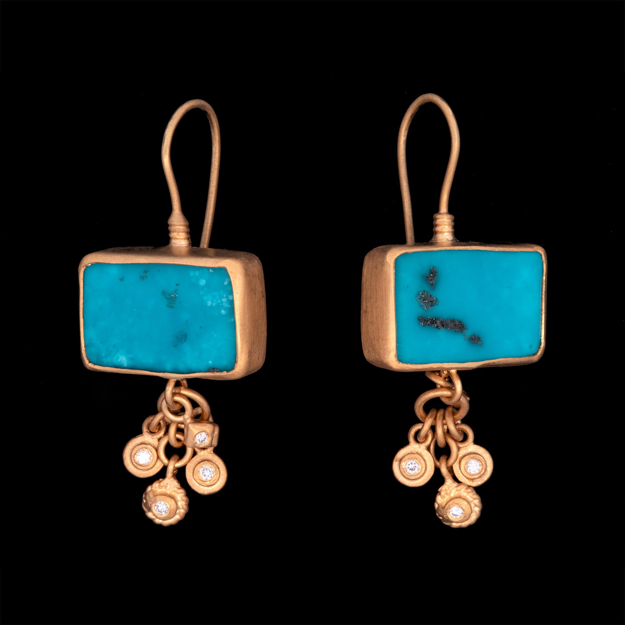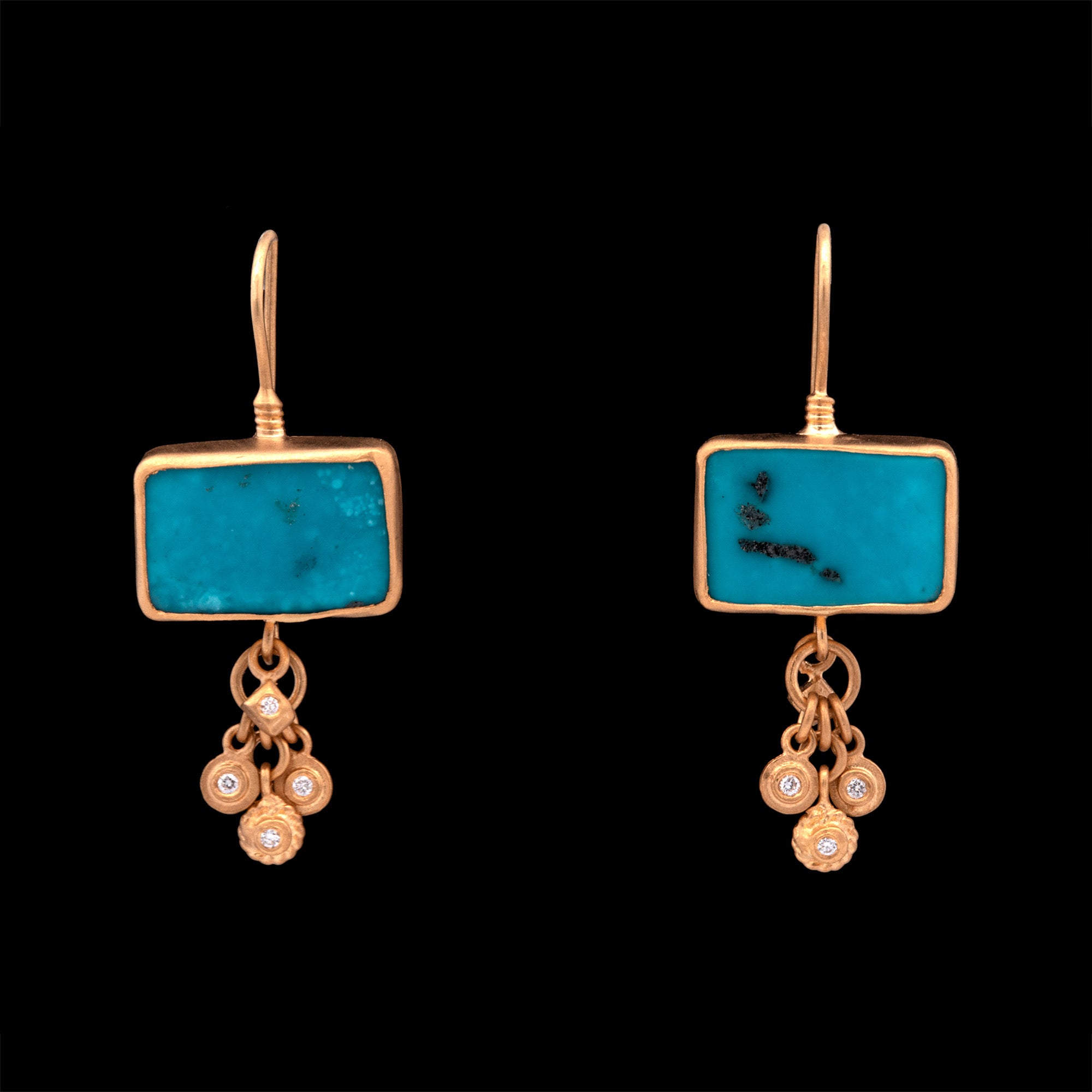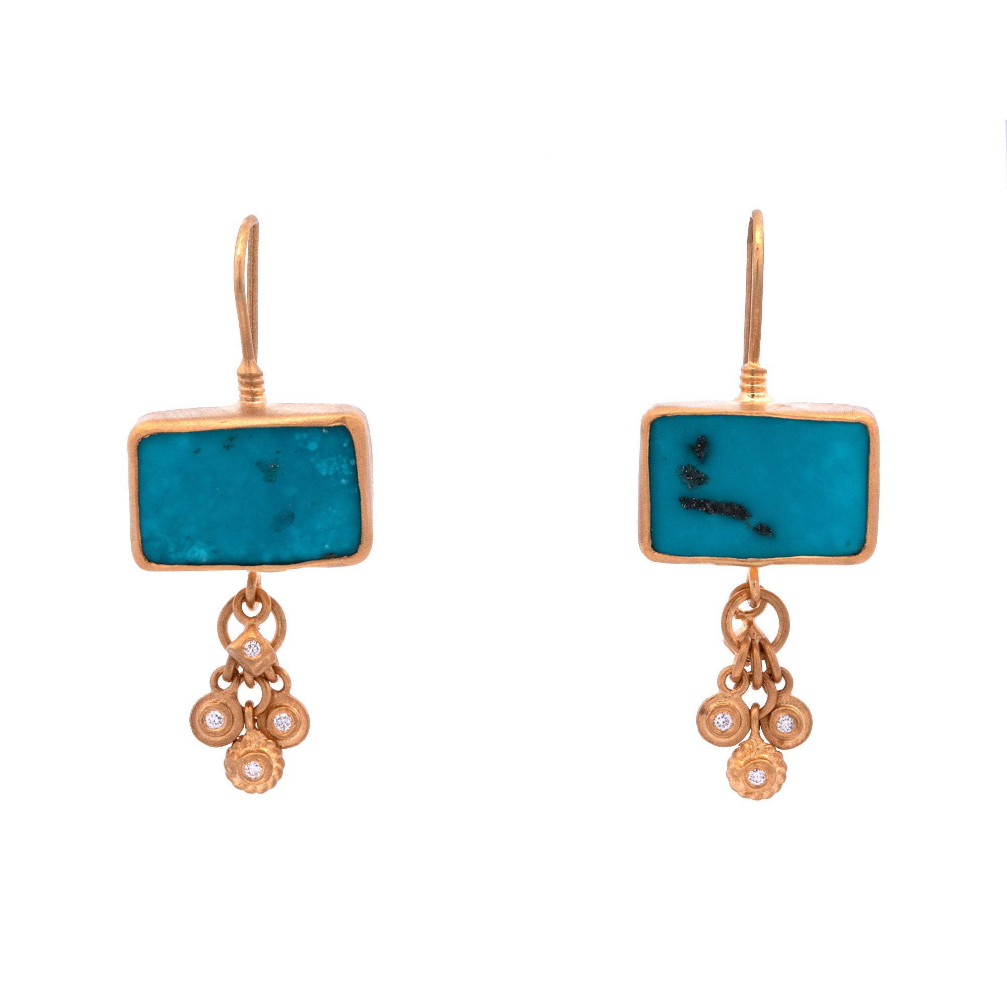 24K And 18K Yellow Gold Turquoise And Diamond Drop Earrings