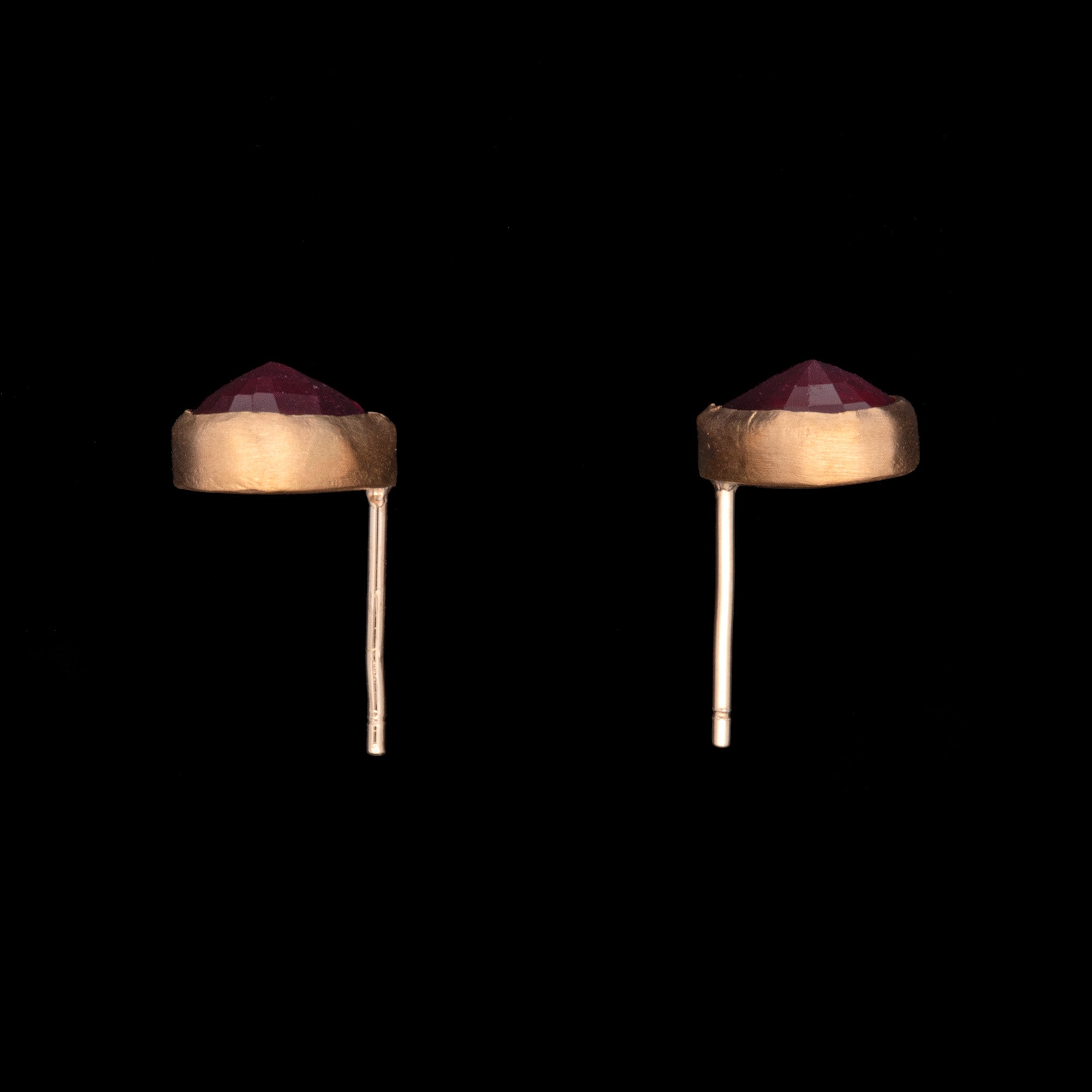 24K Yellow Gold And Sterling Silver Pear Shaped Ruby Stud Earrings
