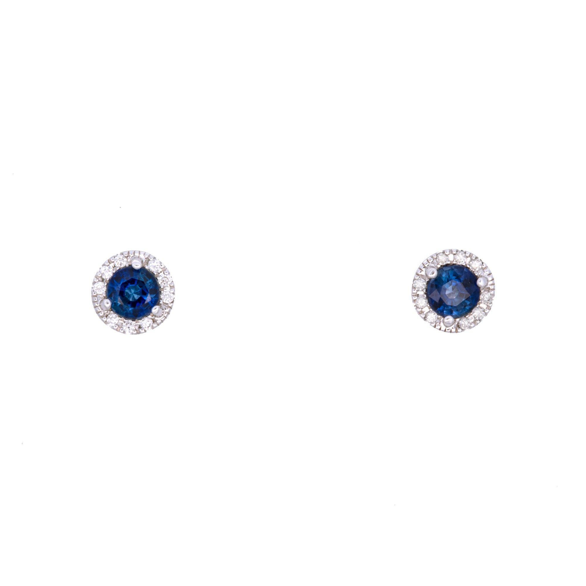 14K White Gold 0.67ctw Ceylon Sapphire Stud Earrings With 0.07ctw Diamond Halo