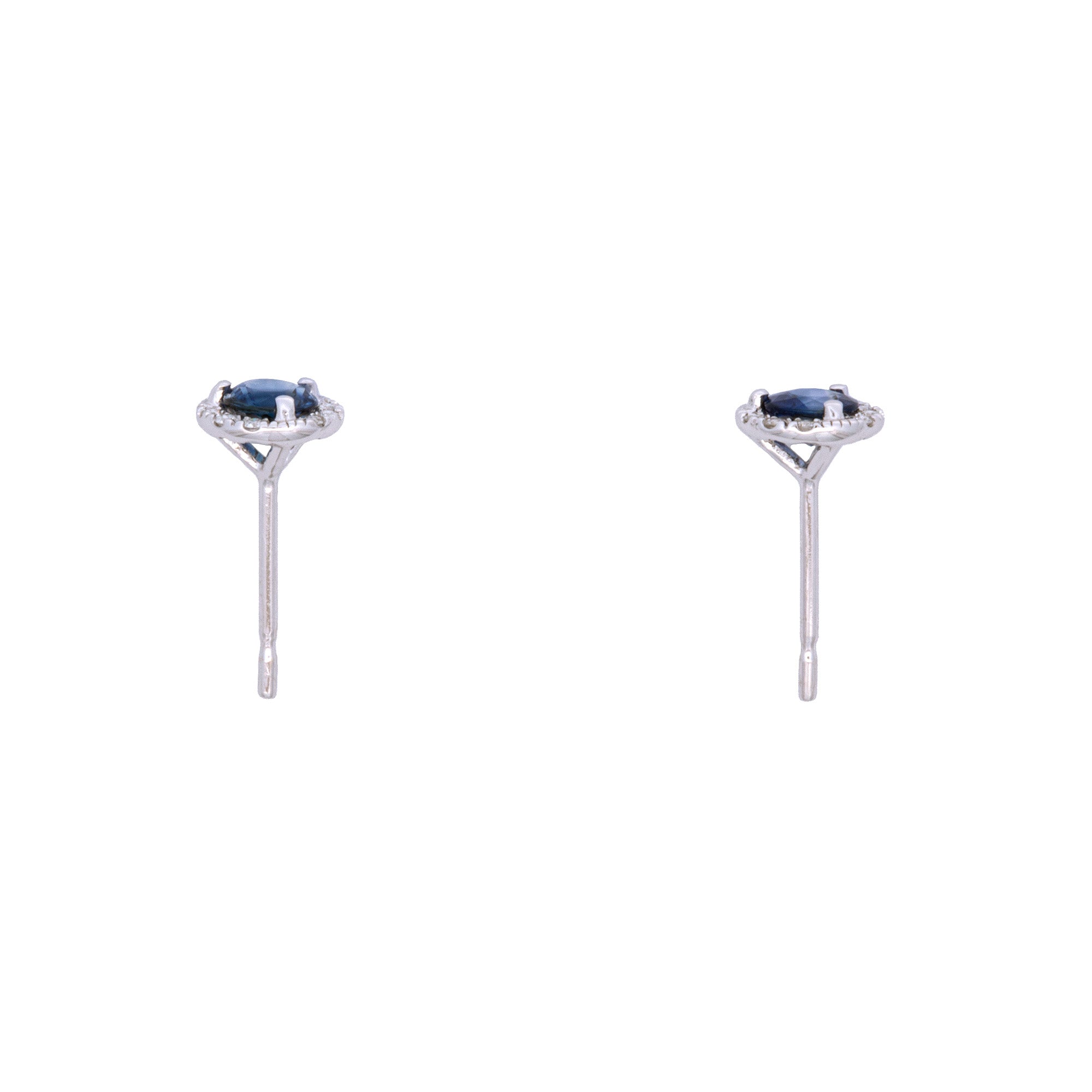 14K White Gold Ceylon Sapphire Stud Earrings With Diamond Halo. Sapphires Weigh A Total Of 0.67 Carats. Diamonds weigh A Total Of 0.07 Carats.